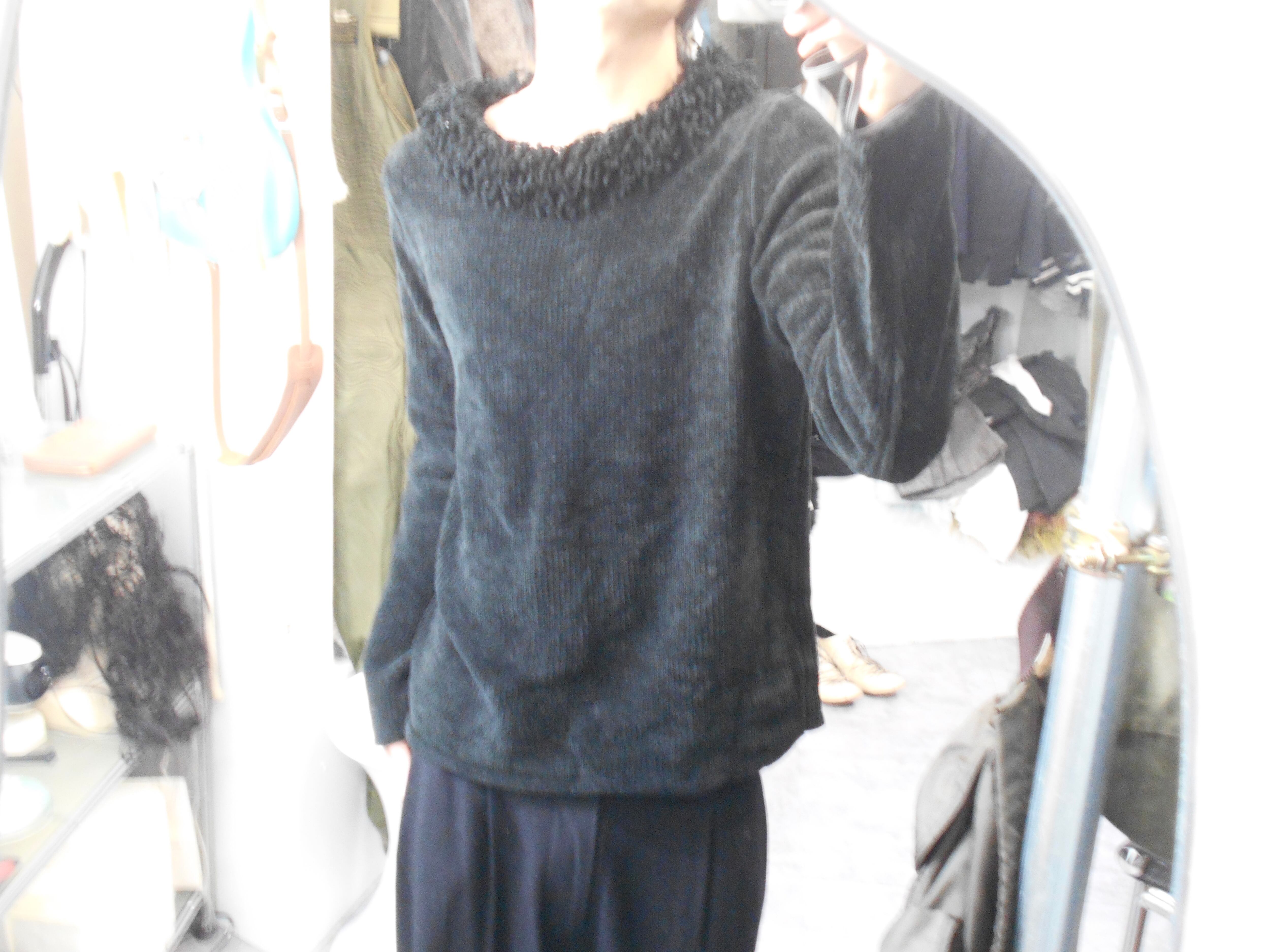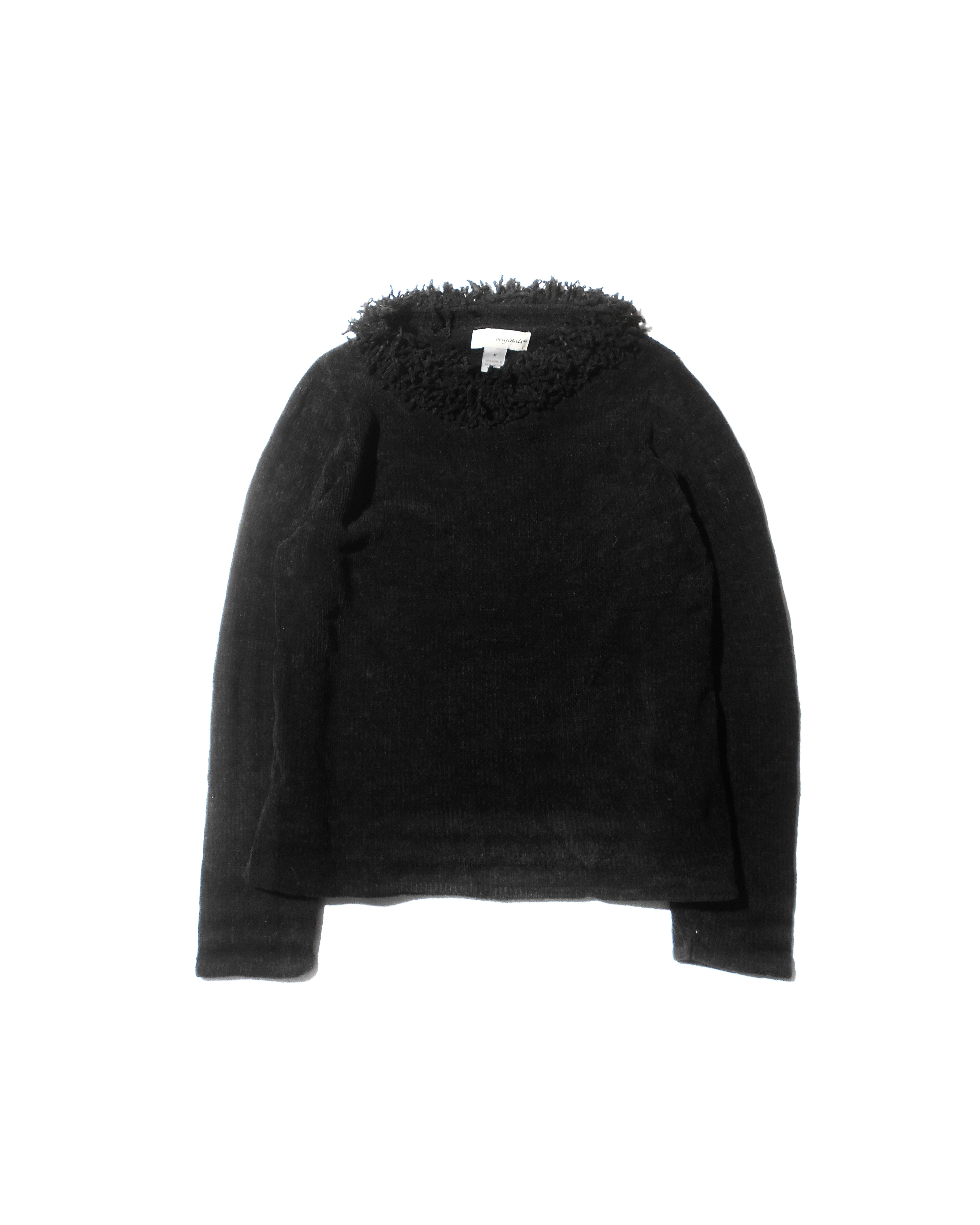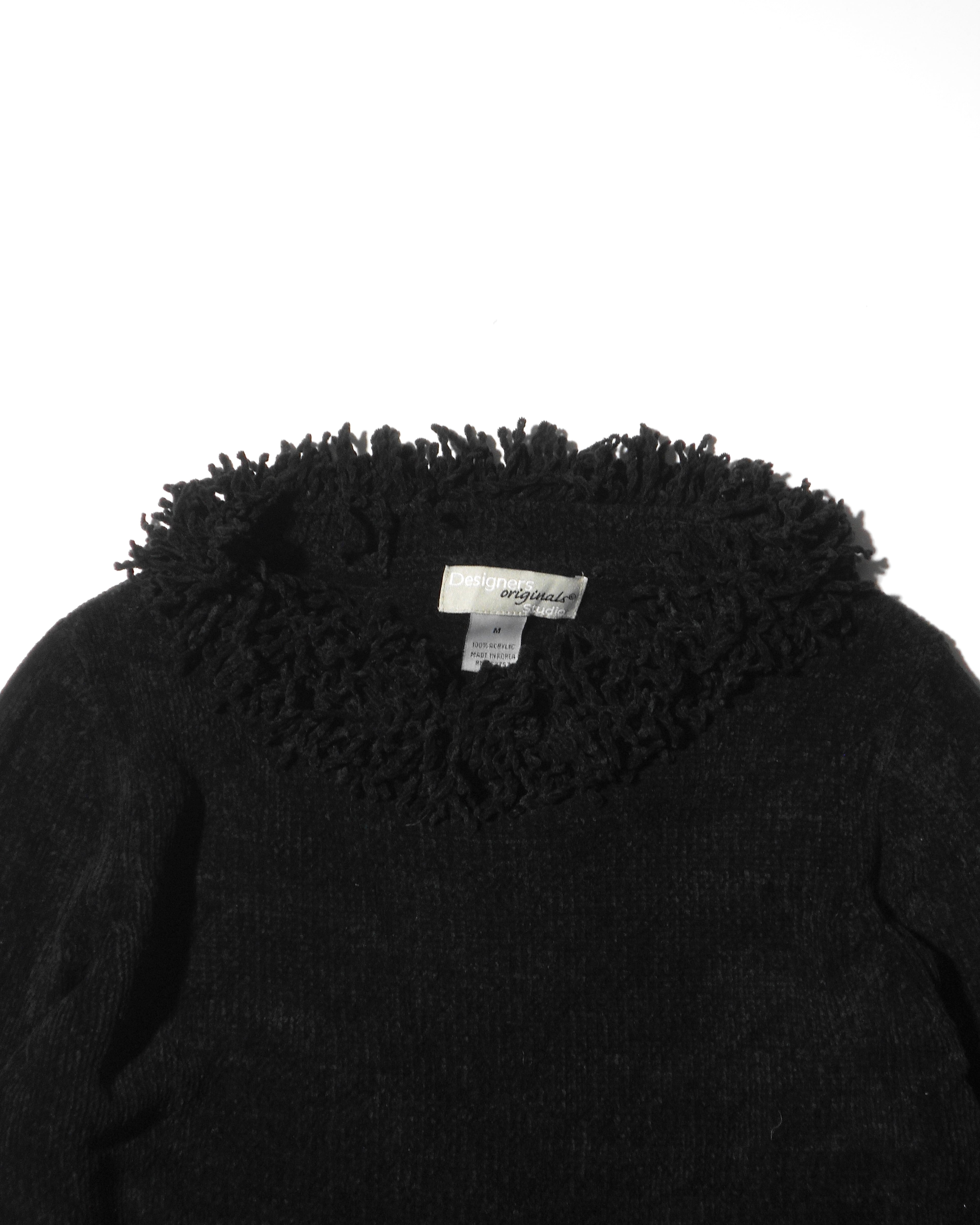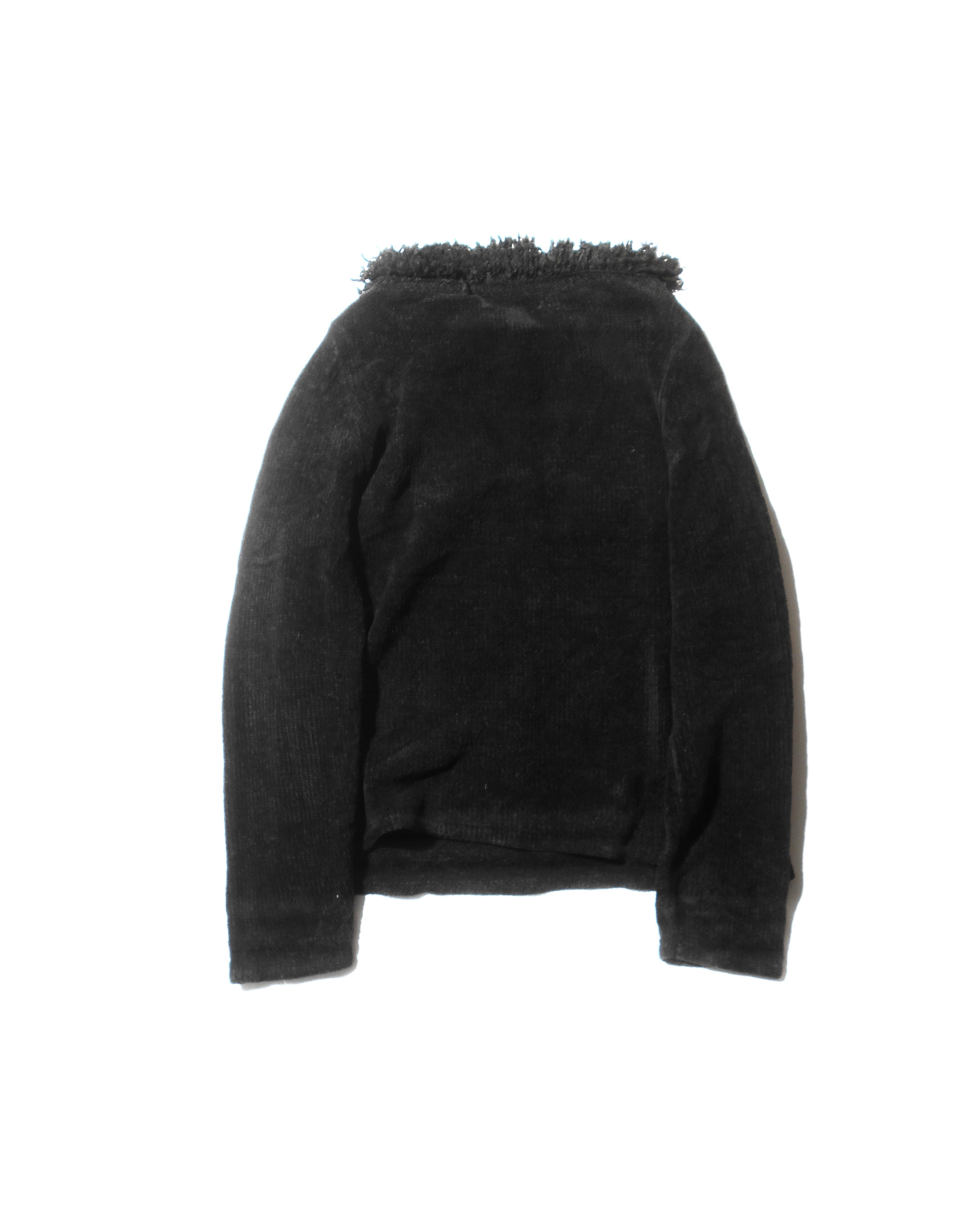 1990s Euro Vintage Black Velvet-Touch Fringe Collared Knitted Sweater
