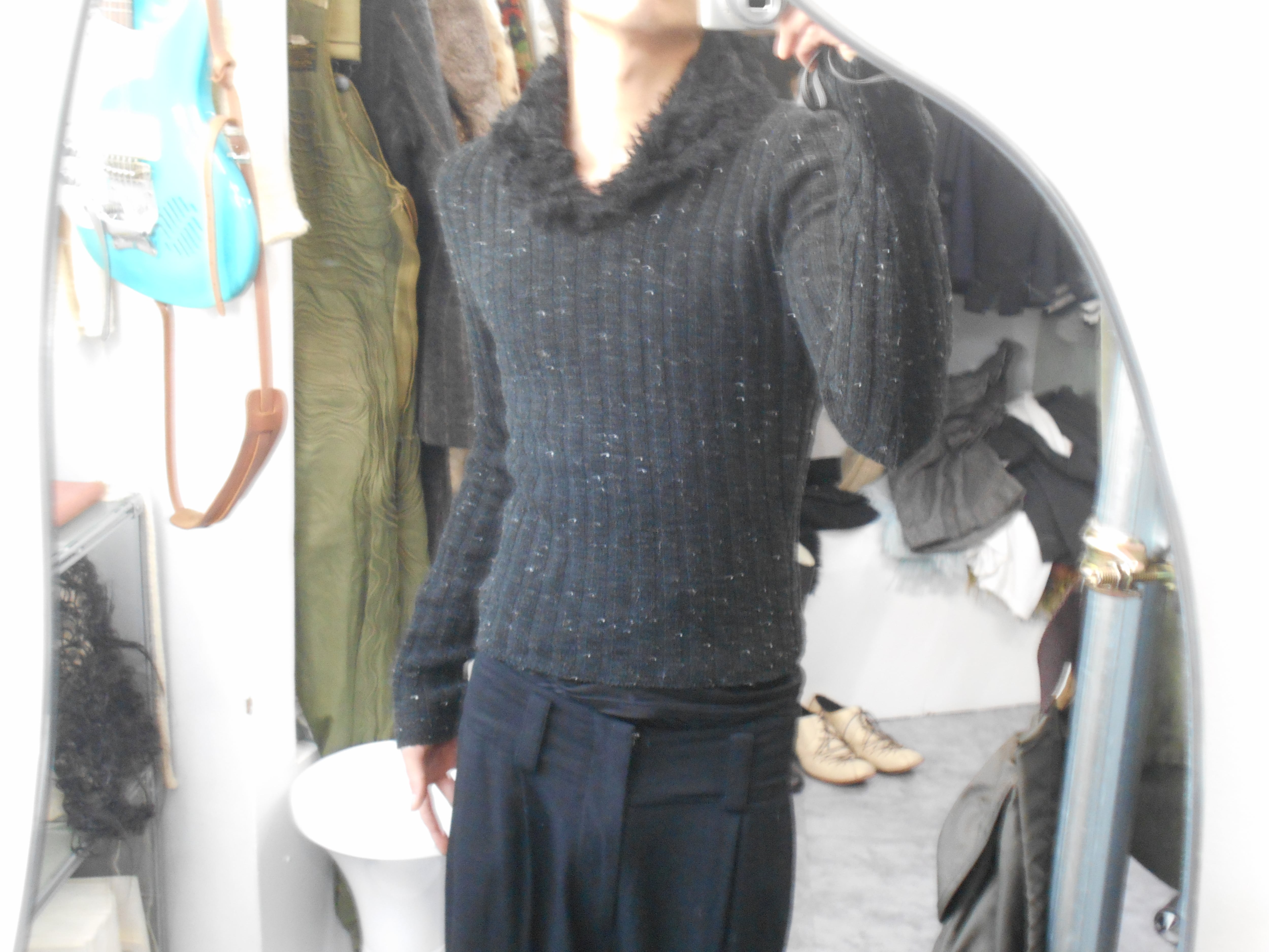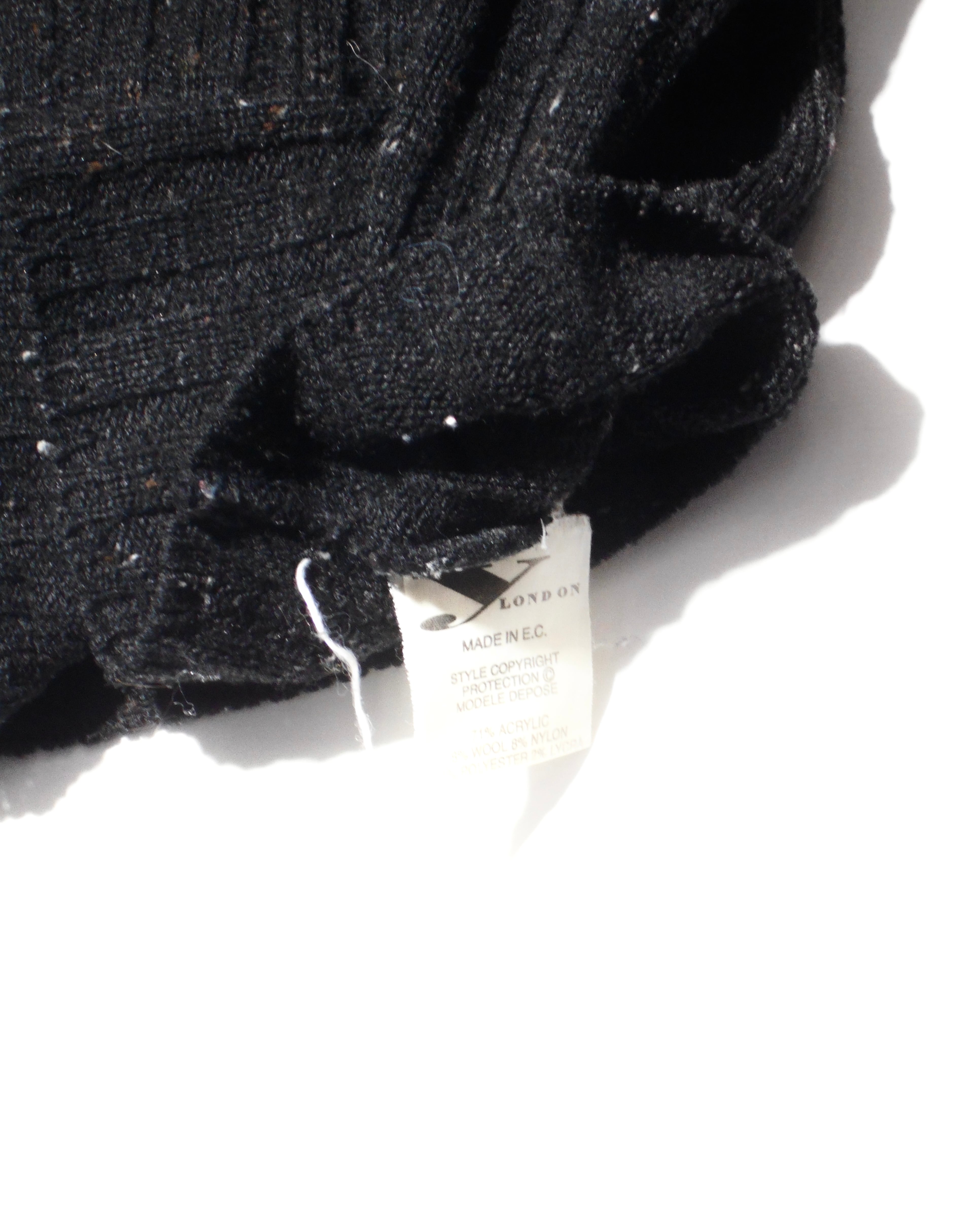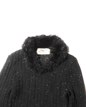 1990s British Vintage Faux Fur Collared Nep Black Knitted Sweater