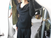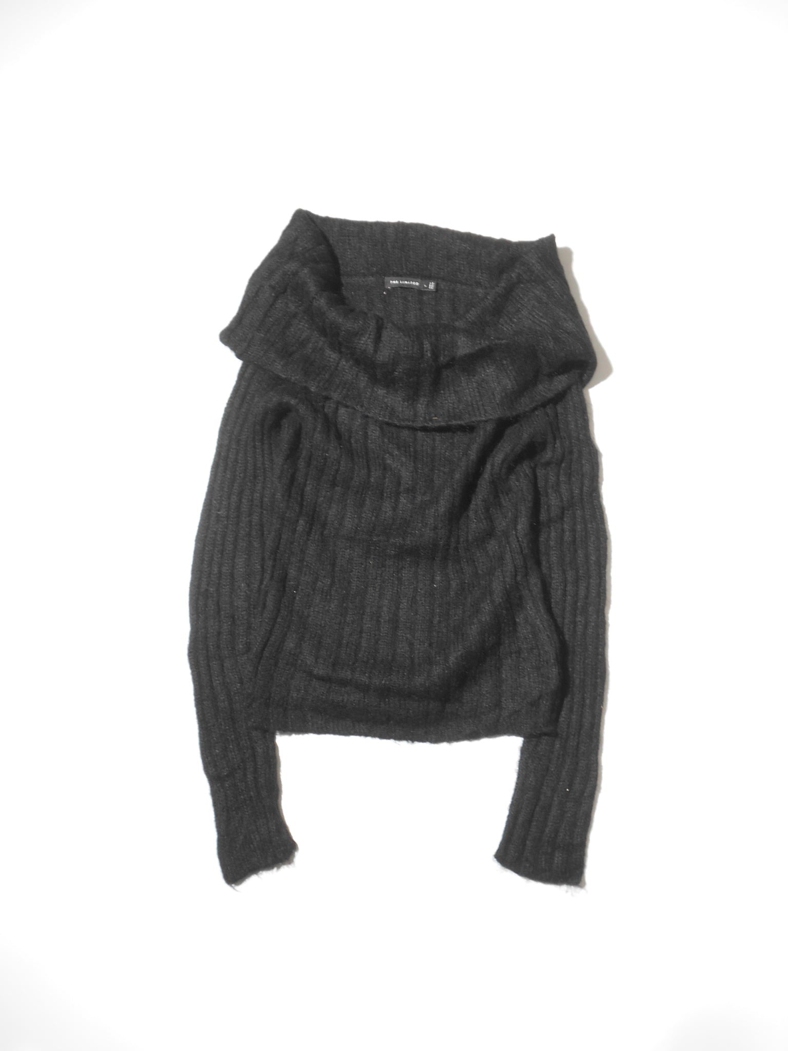 1990s Euro Vintage Super Long&Wide Turtle Neck Black Mohair Knitted Sweater