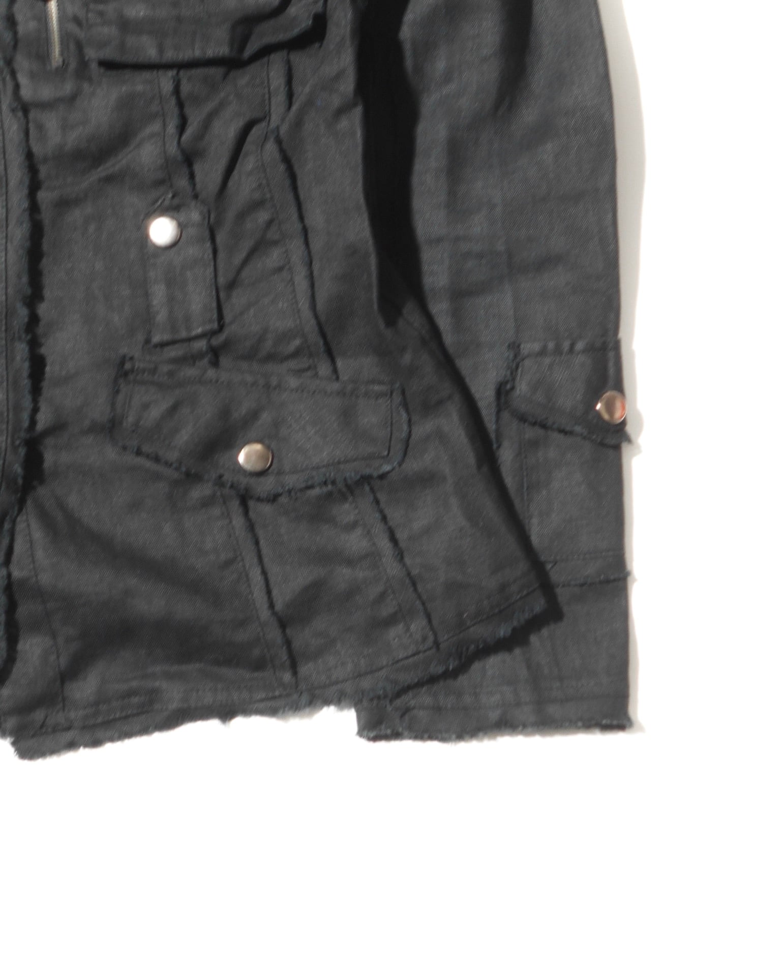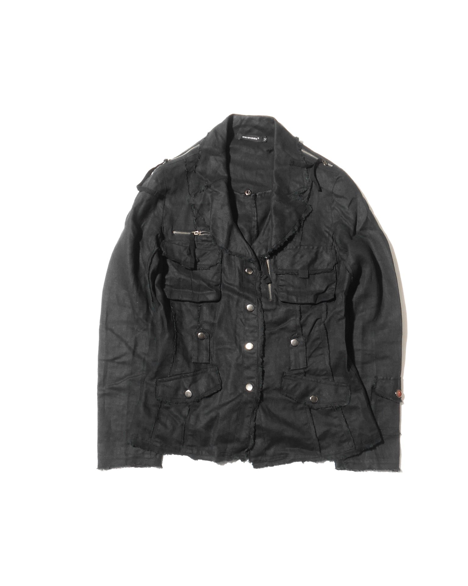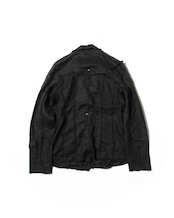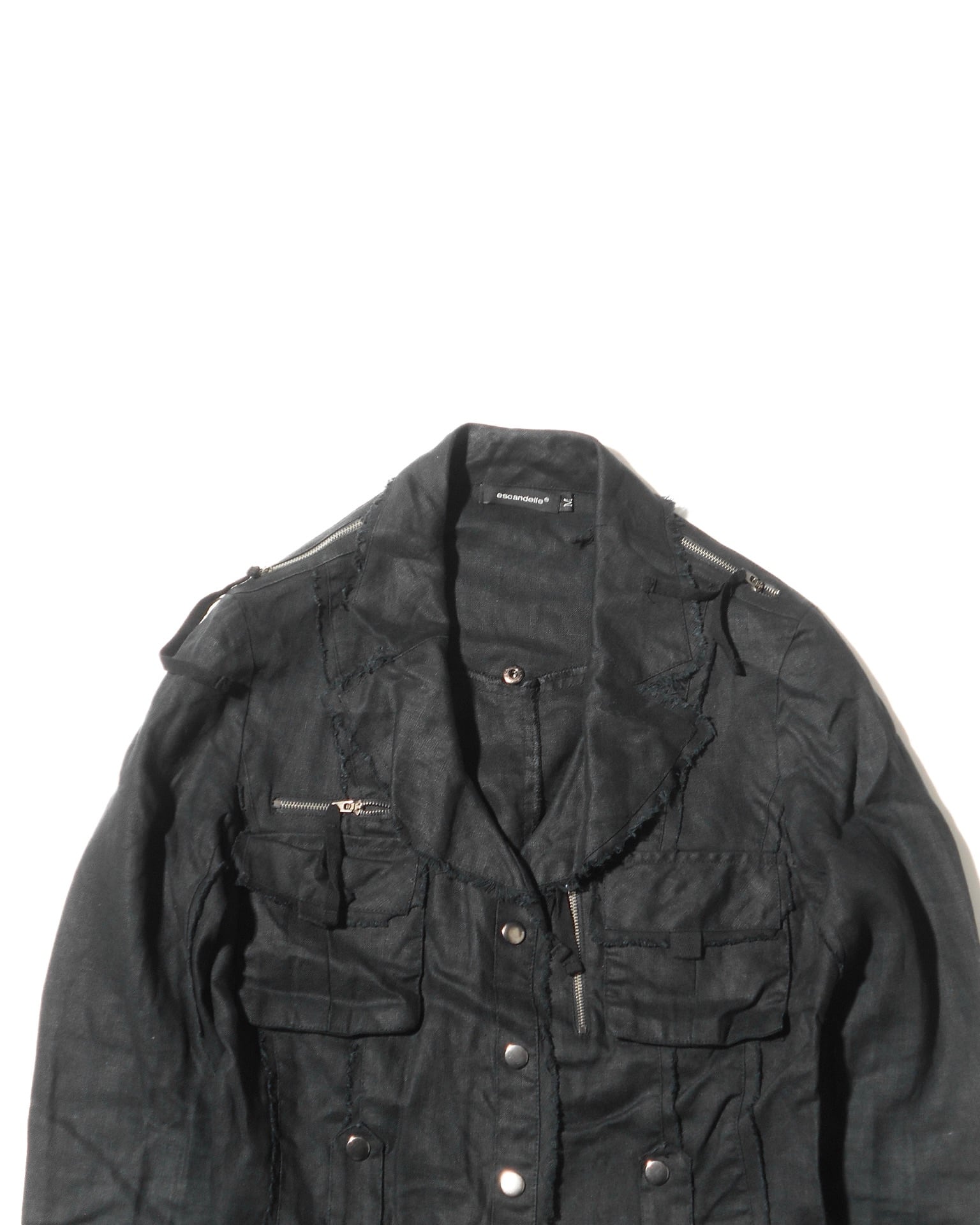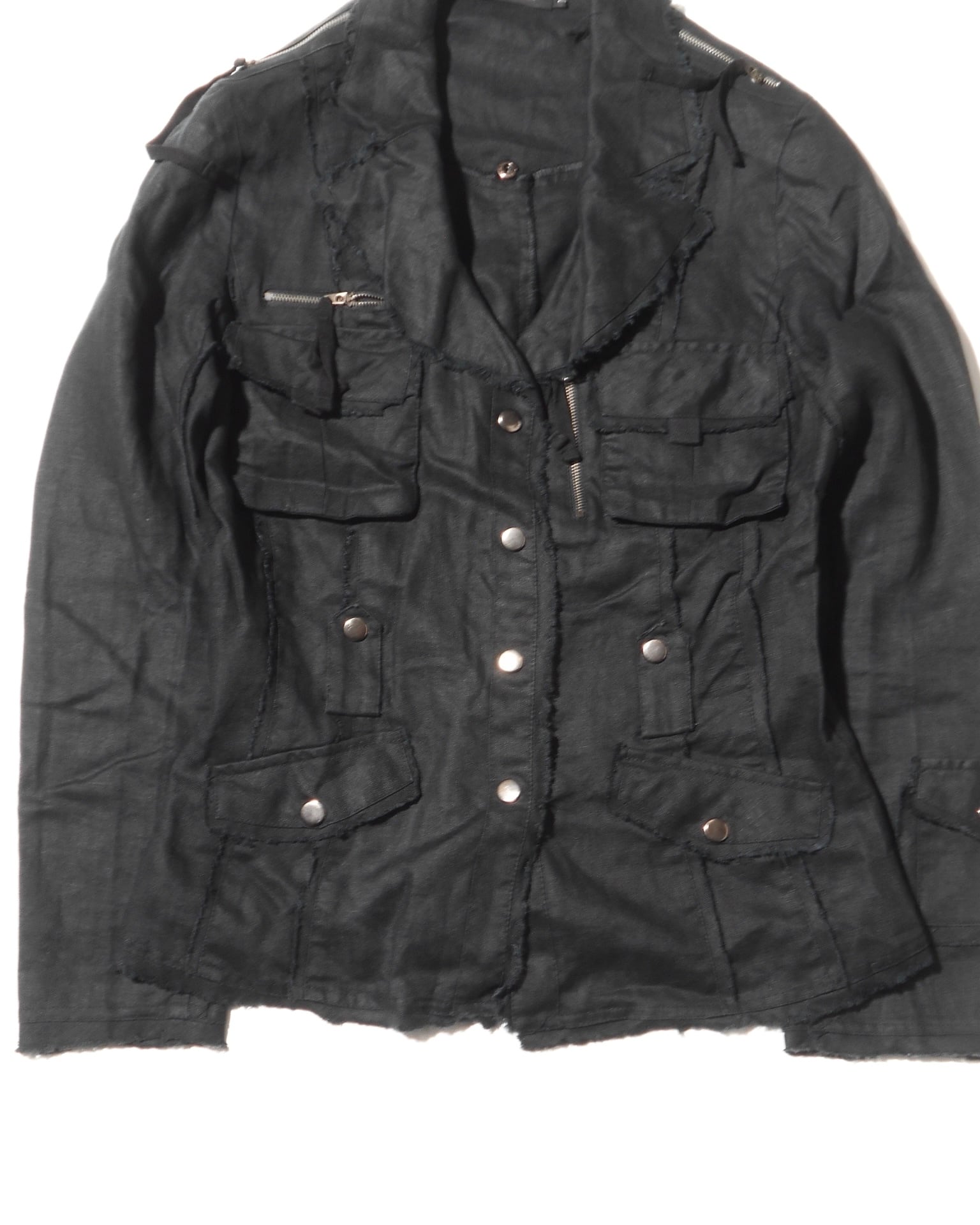 1990s Euro Vintage Multiple Pockets Black Linen Like Jacket