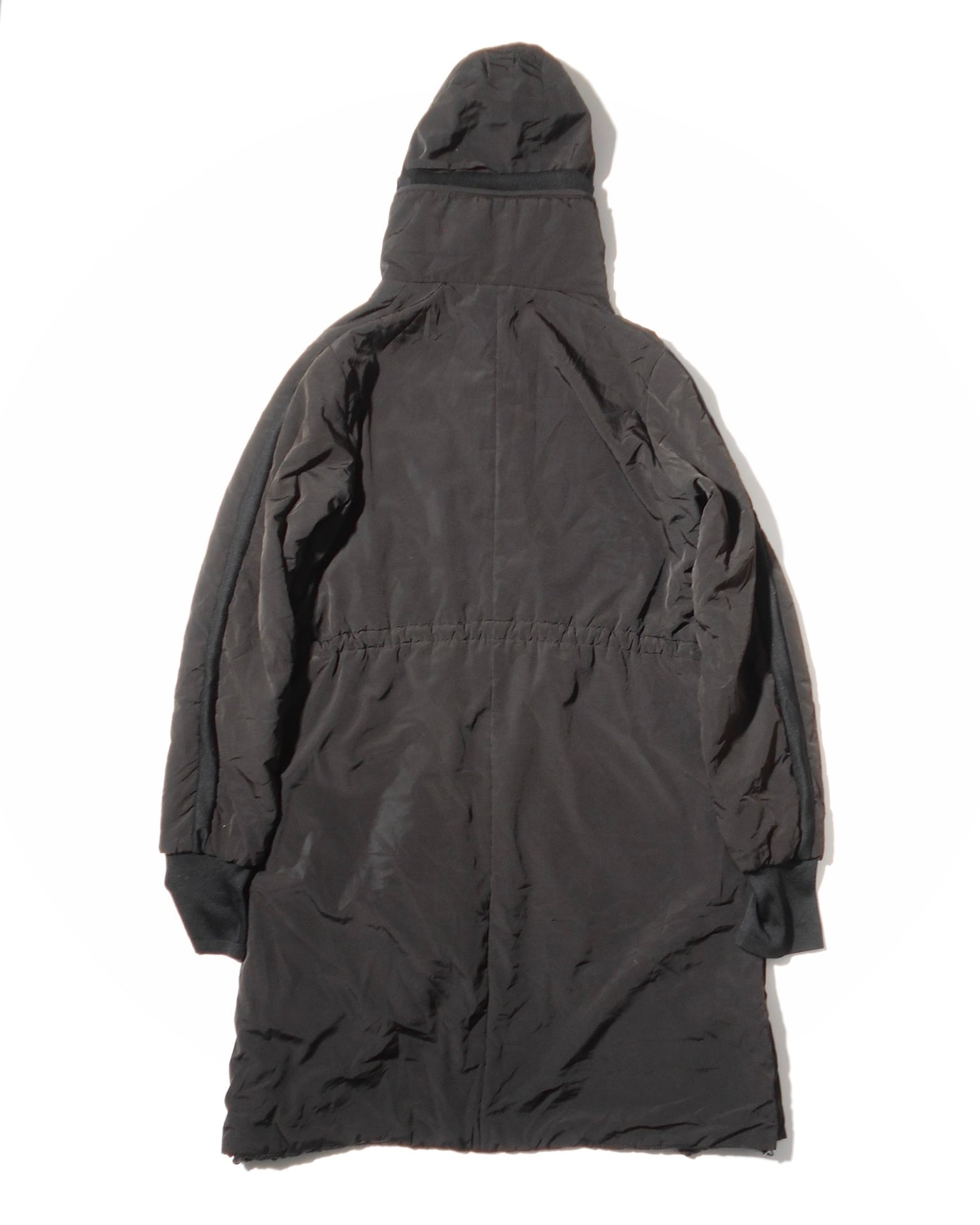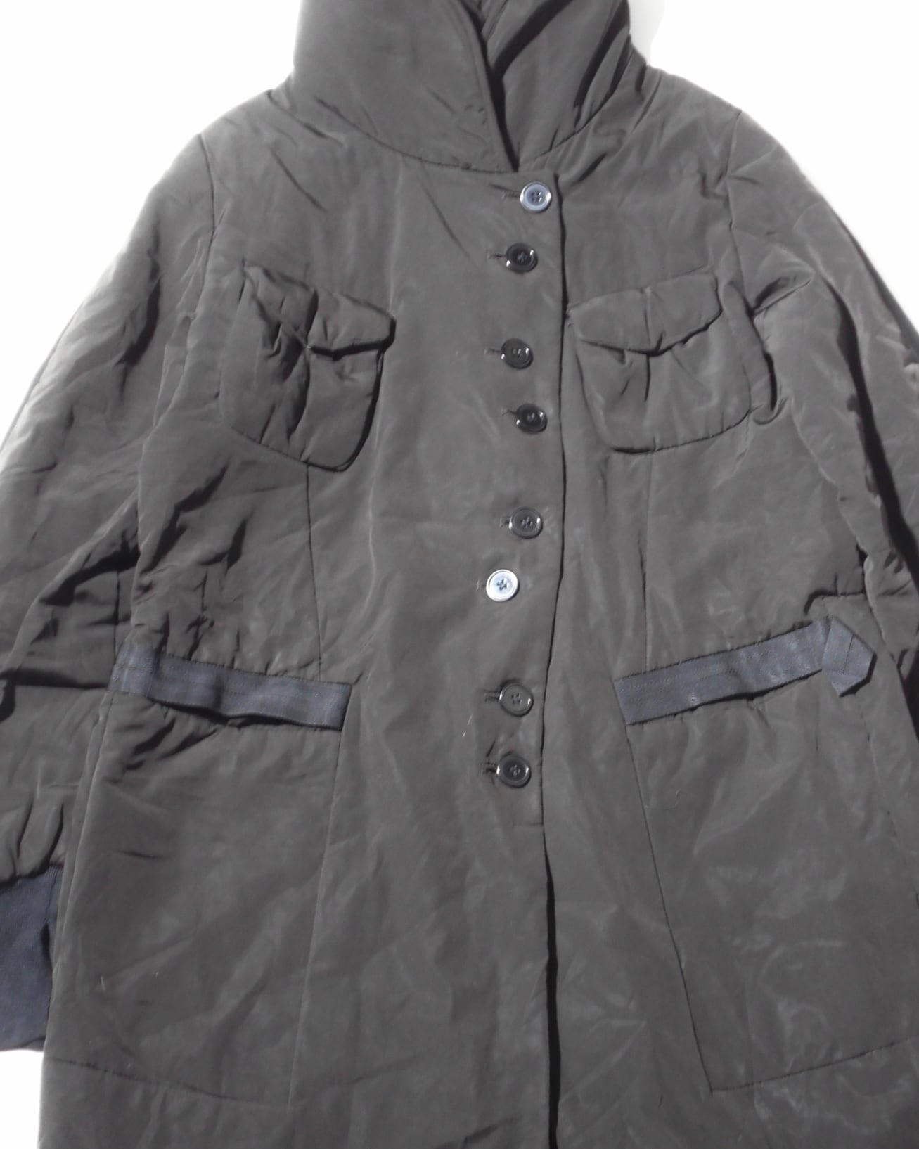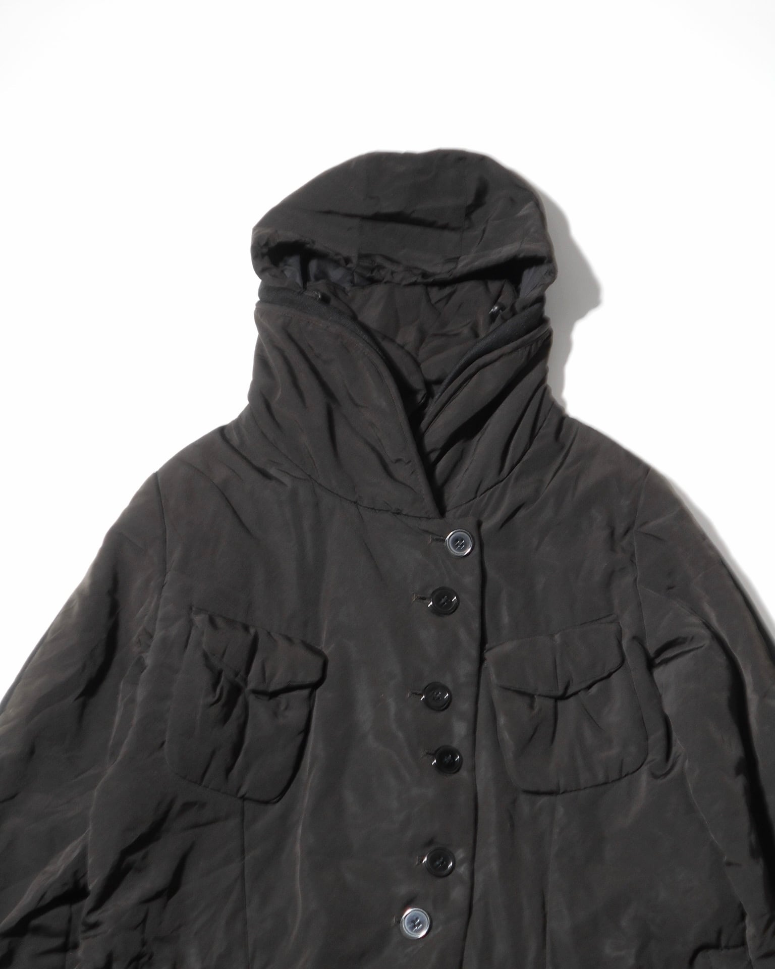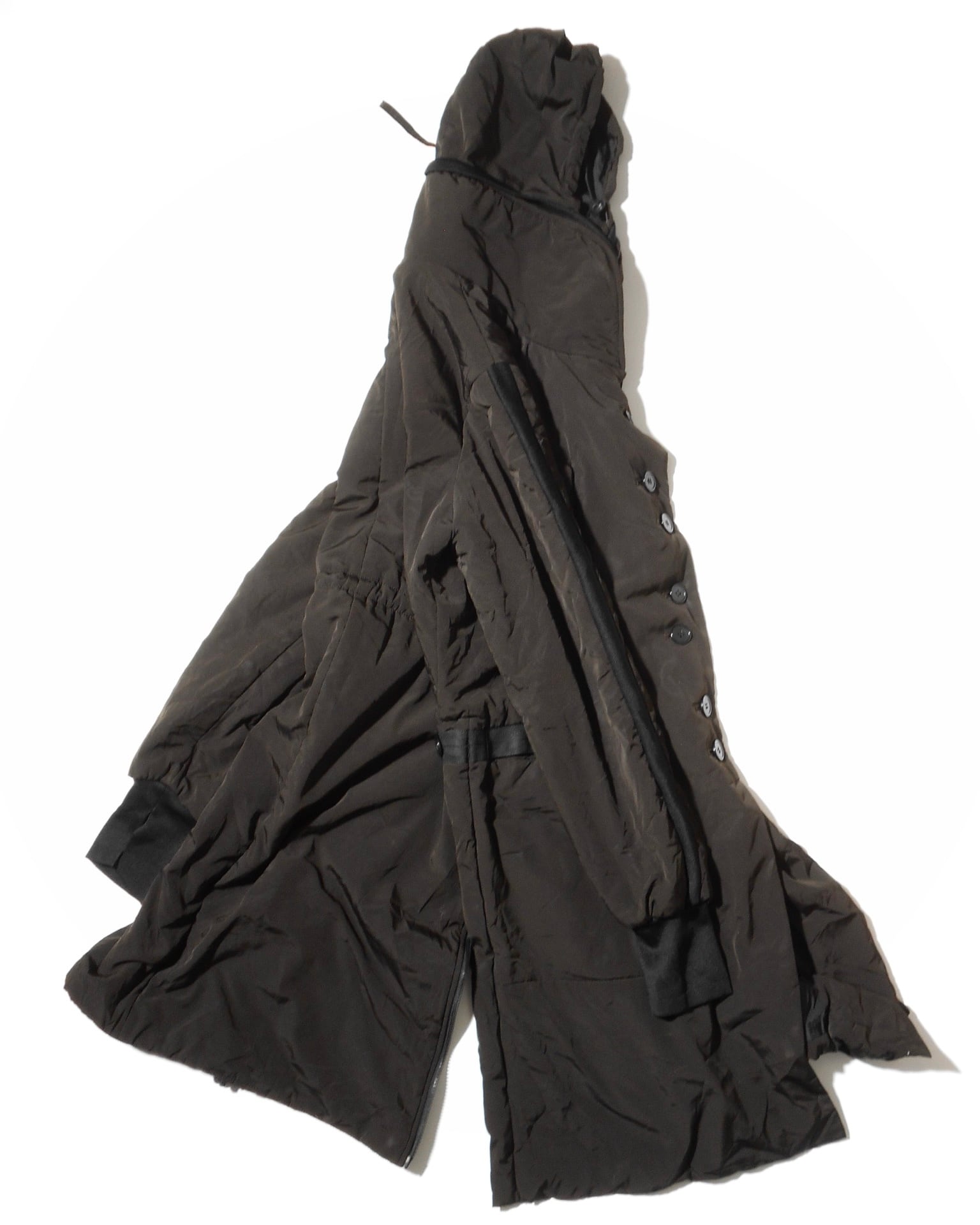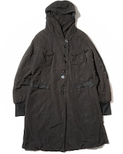 1990s German Vintage Multiple Buttoned Brown Nylon Padded Coat w/Hood by a German Based label, Marc Aurel