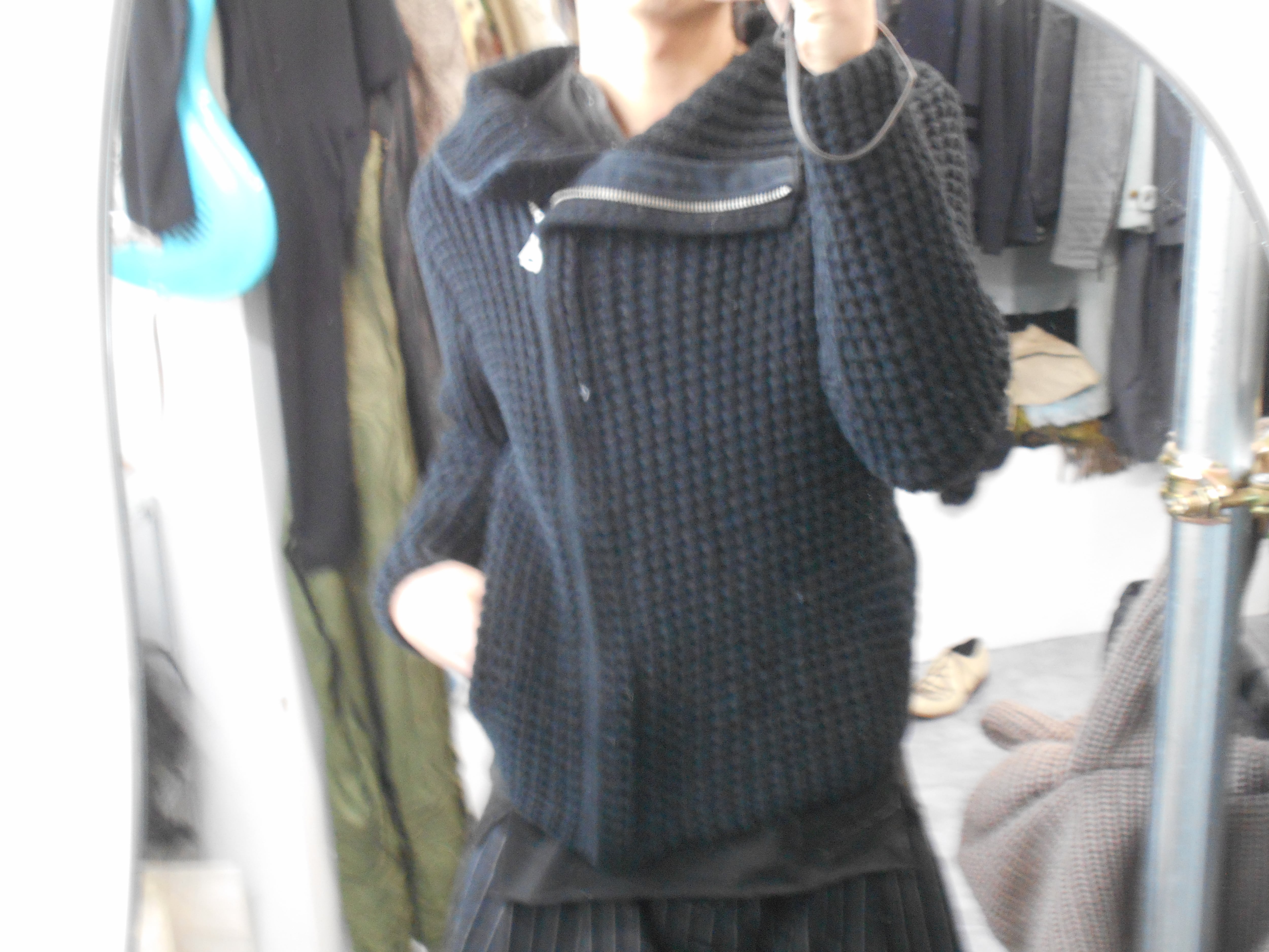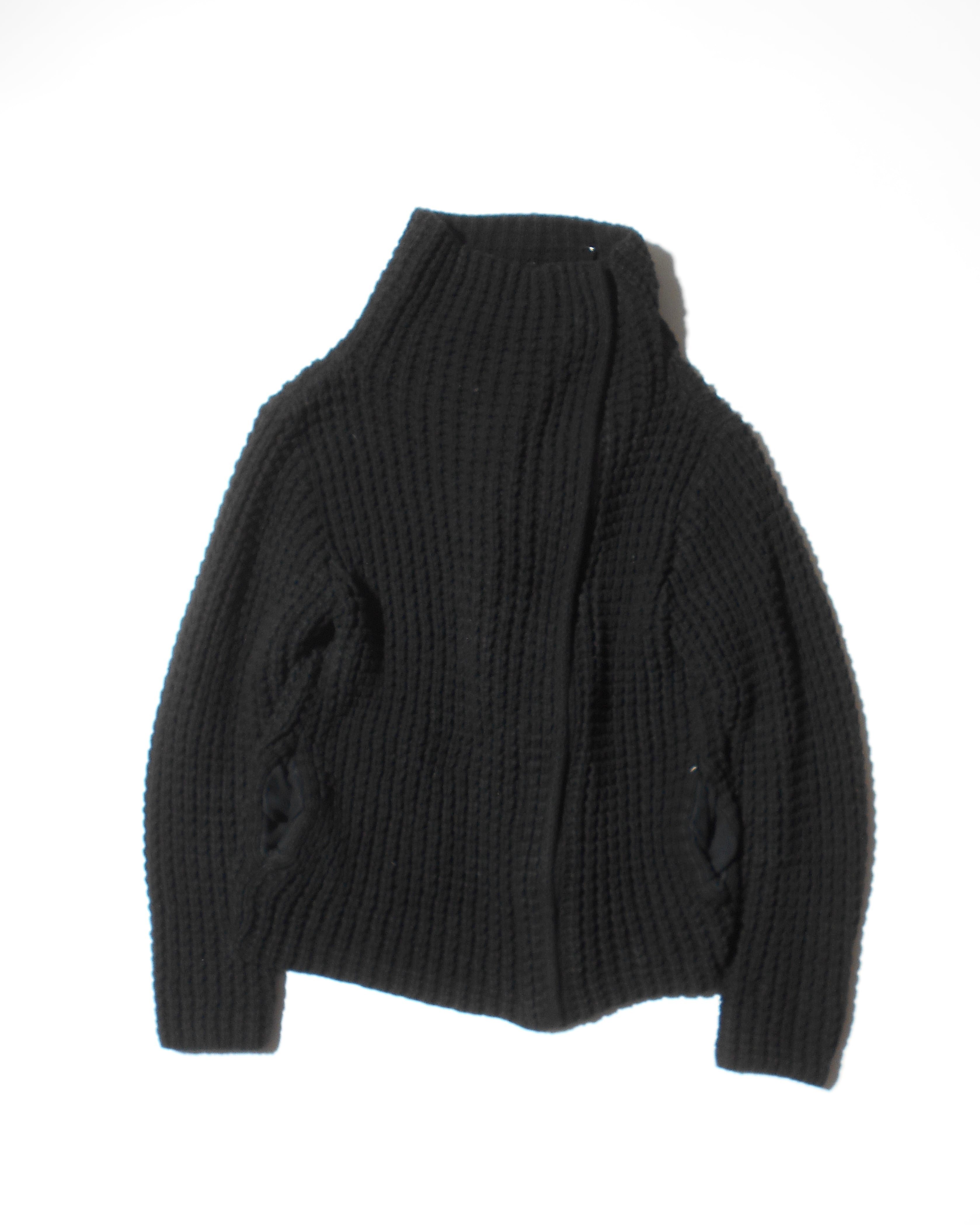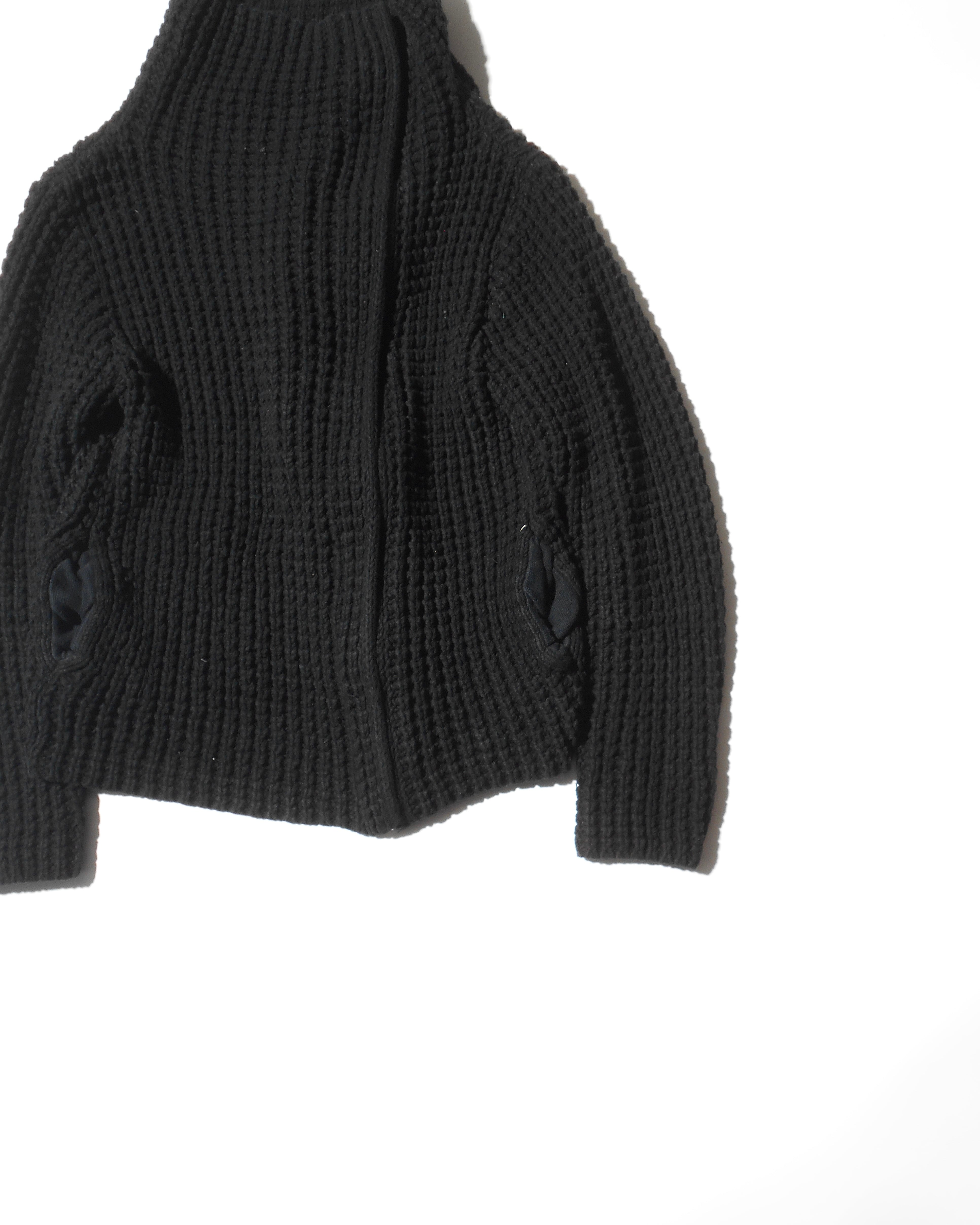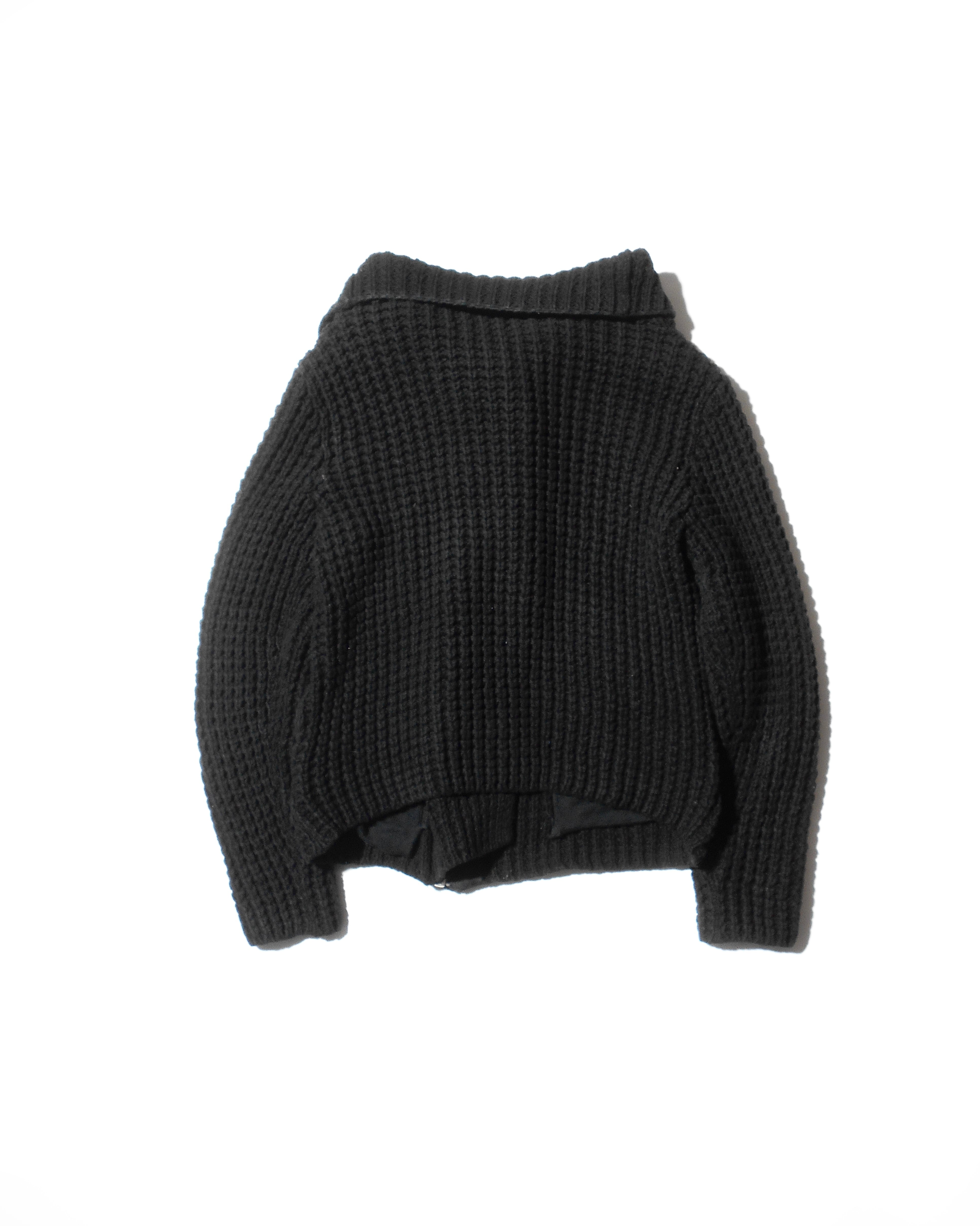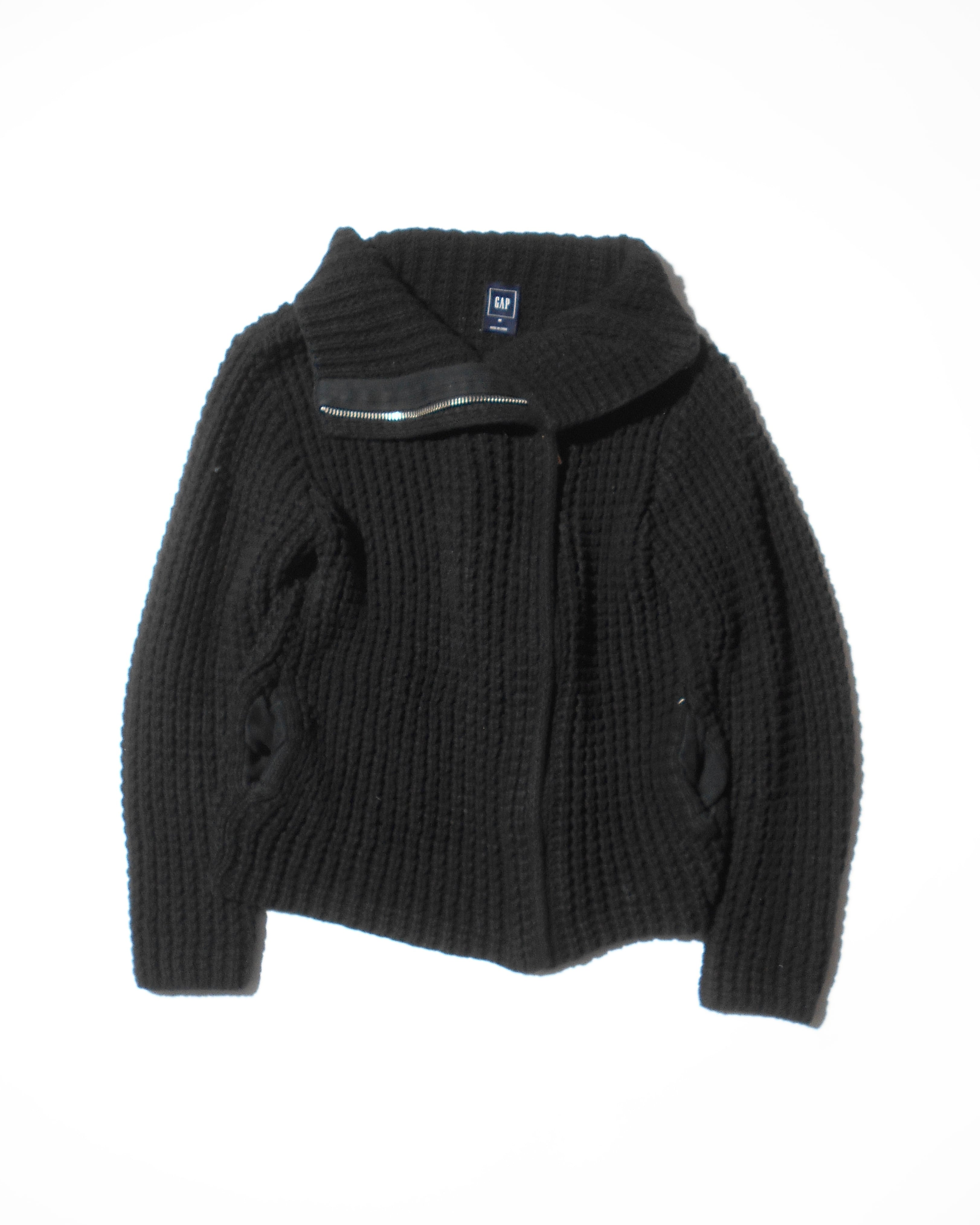 1990-2000s Old Gap Asymmetrical Heavy Zip Black Cotton Knitted Jacket