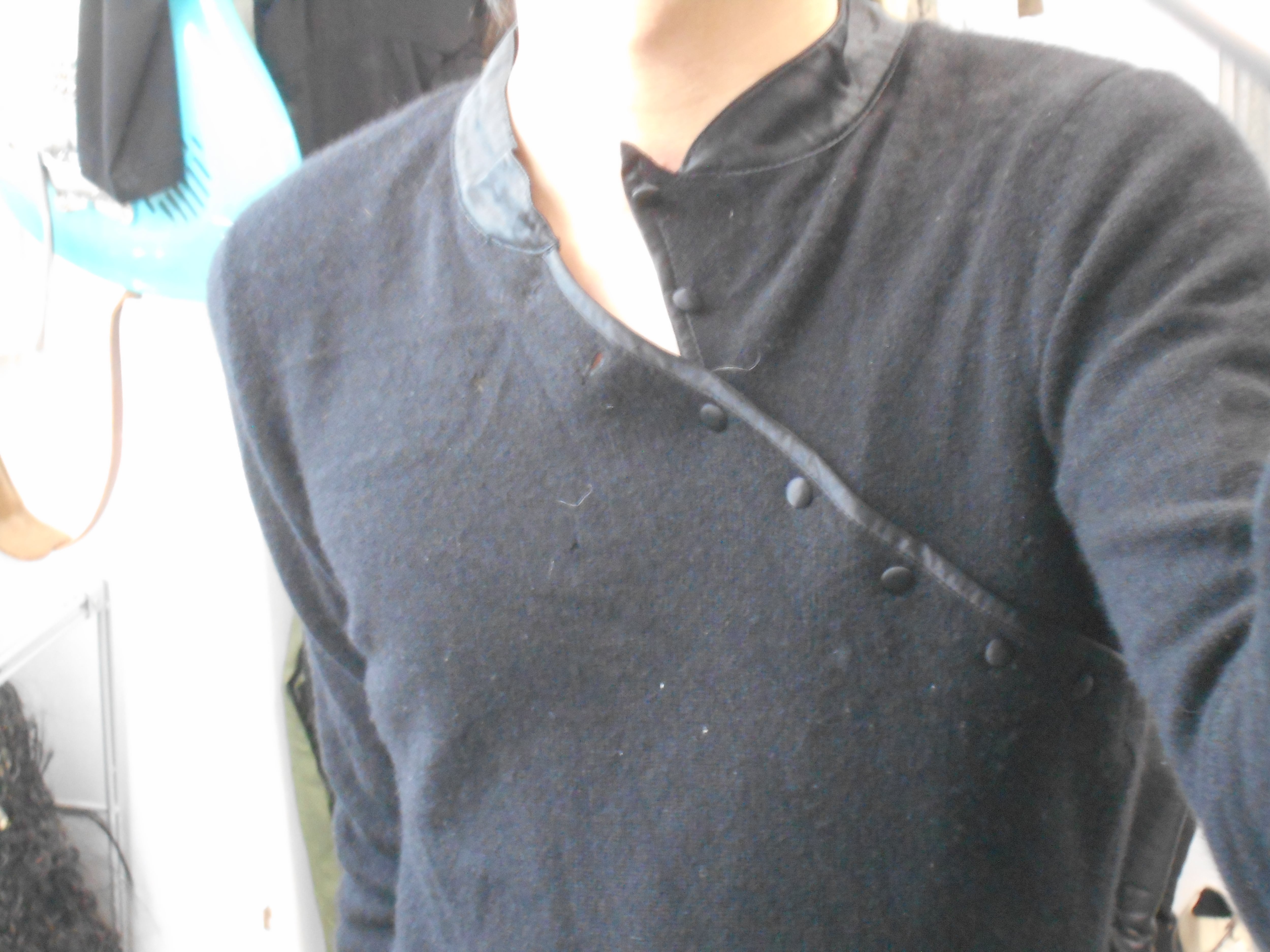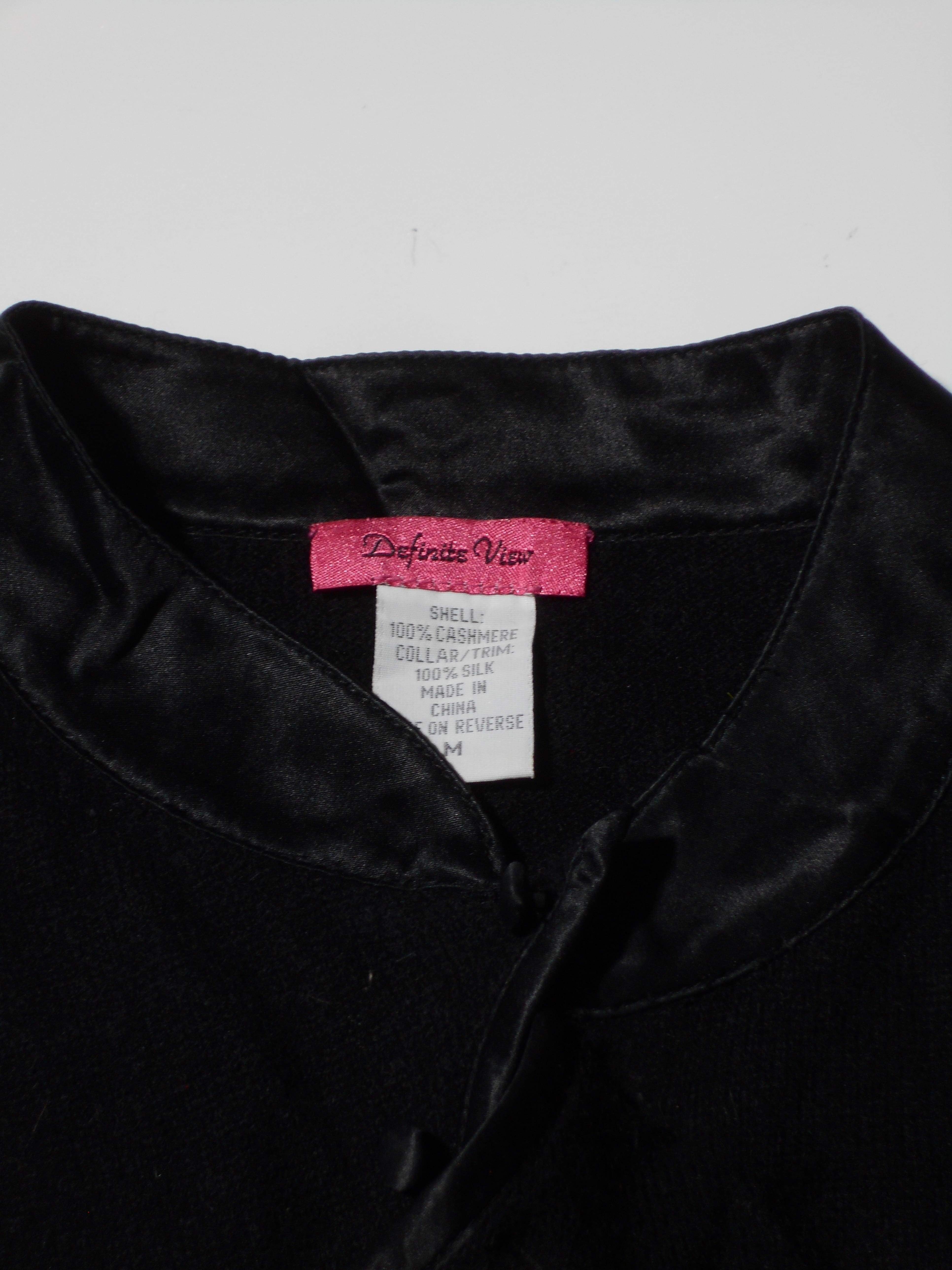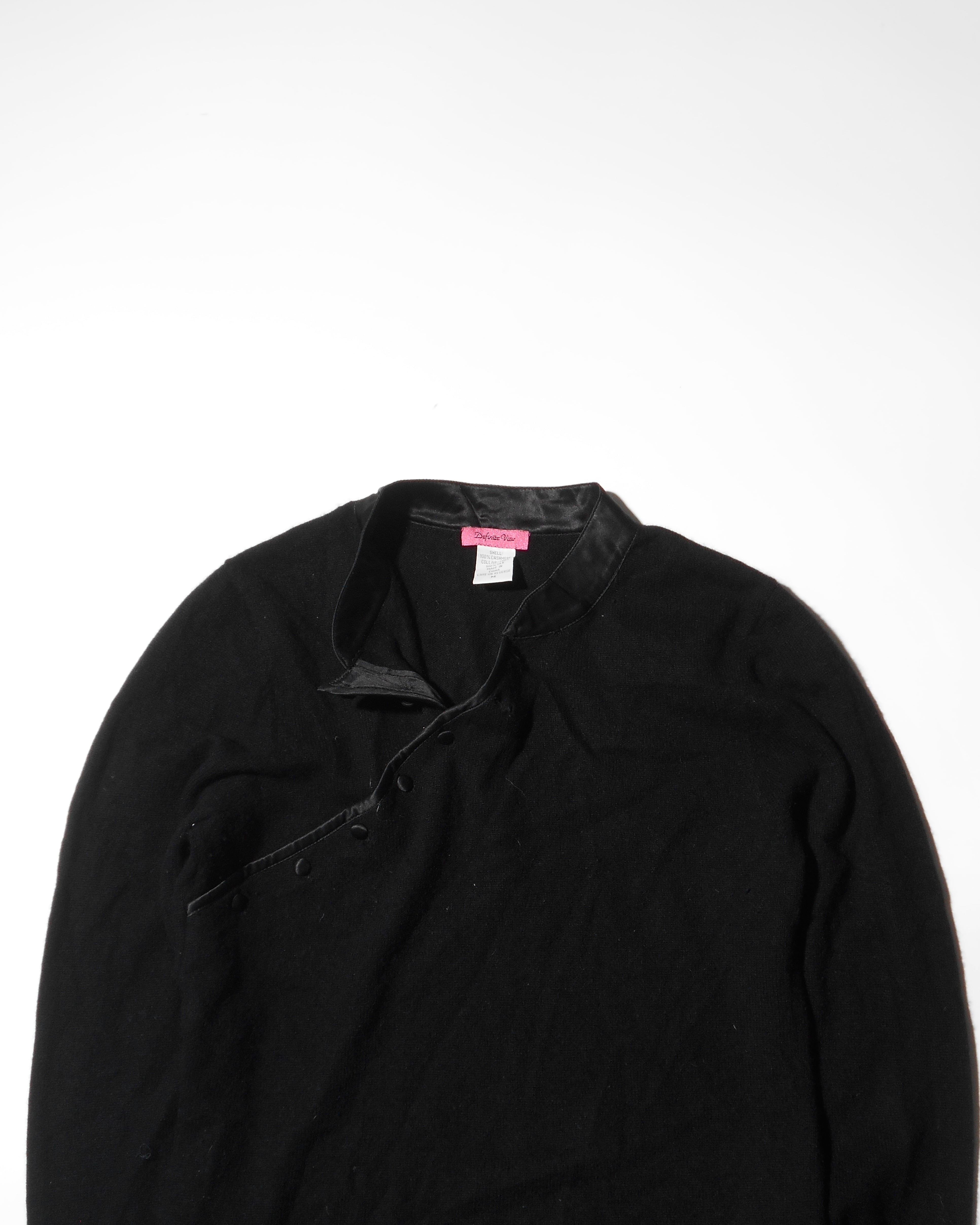 1990s Euro Vintage Black 100% Cashmere China Collar Knitted Sweater