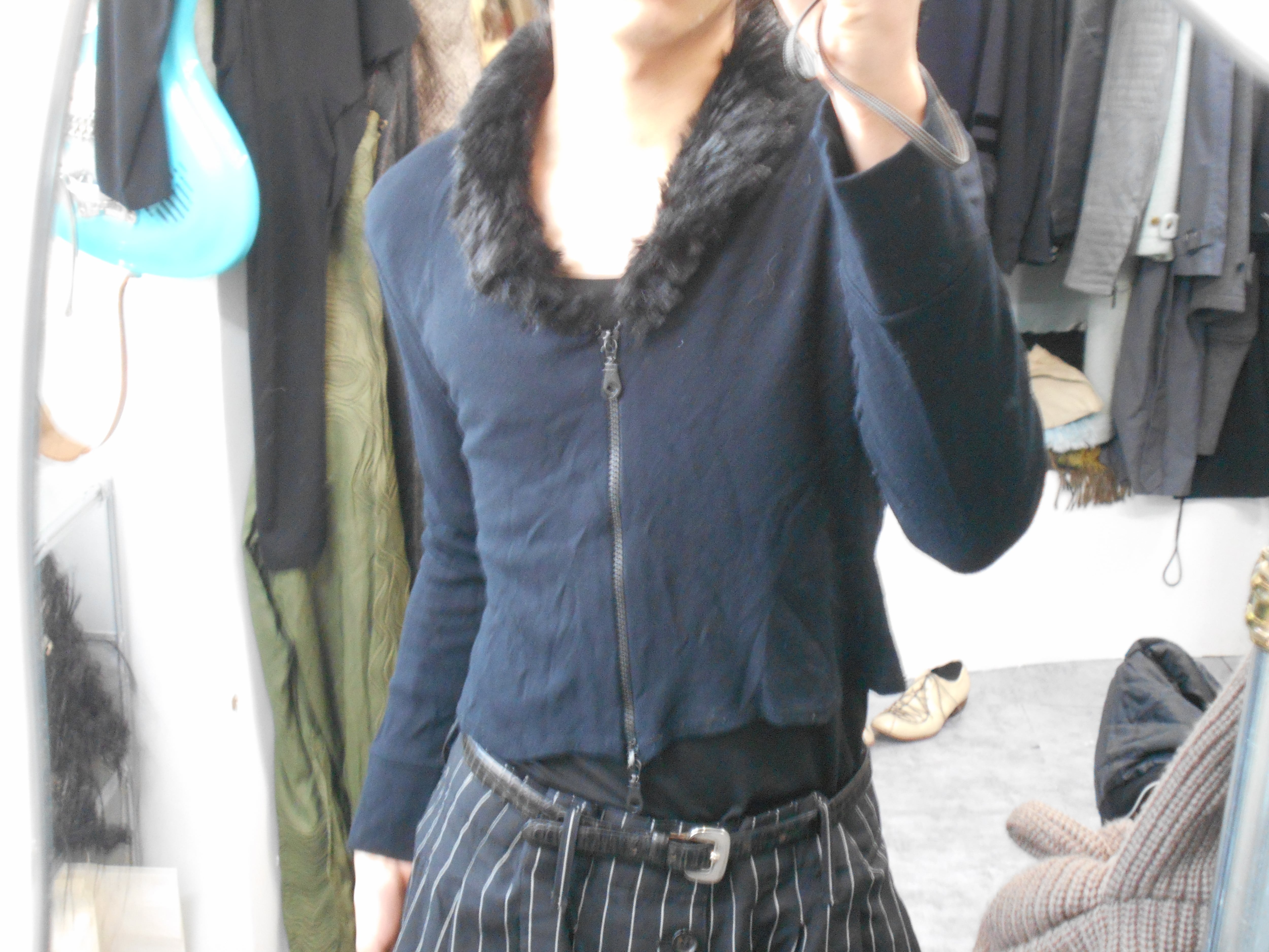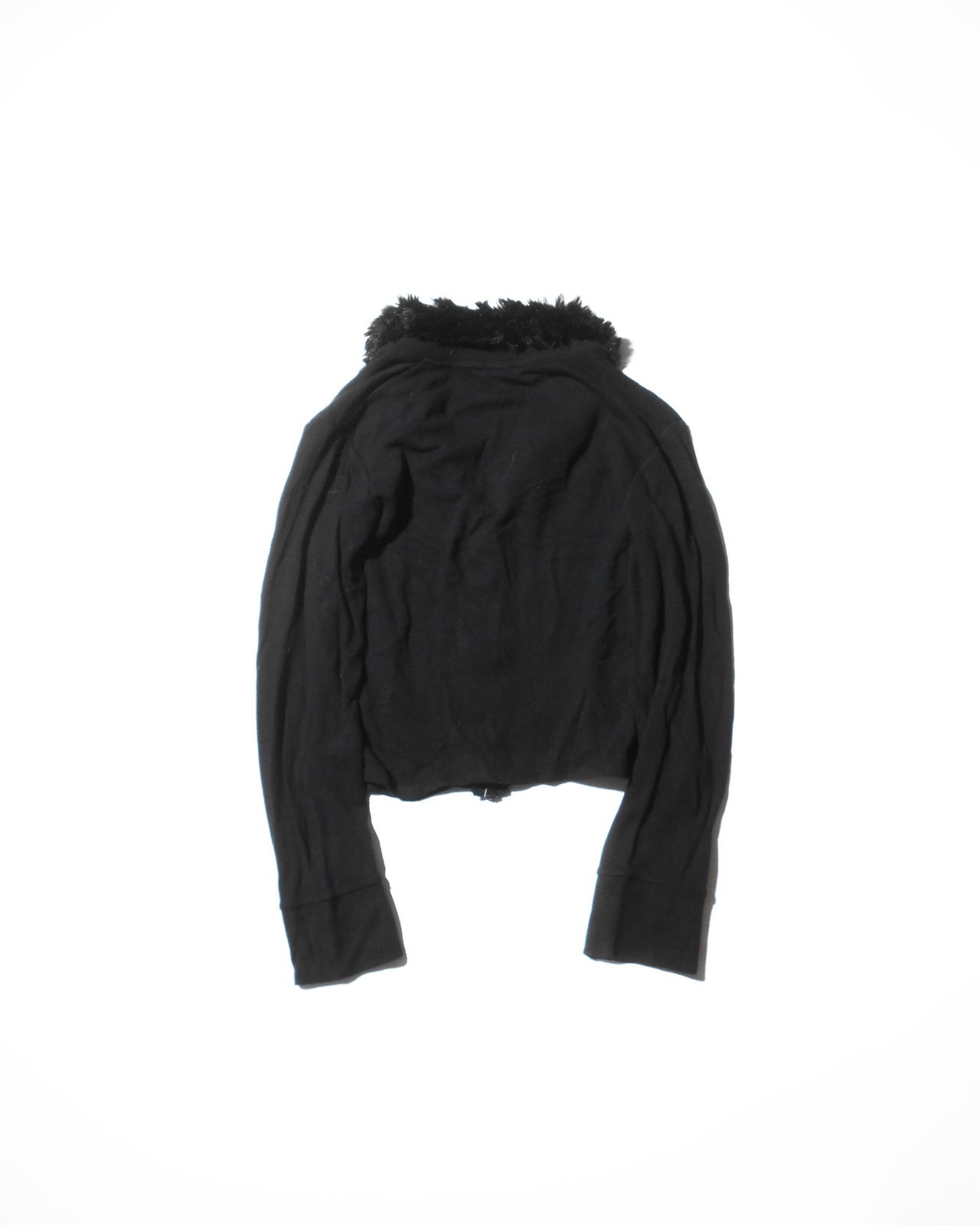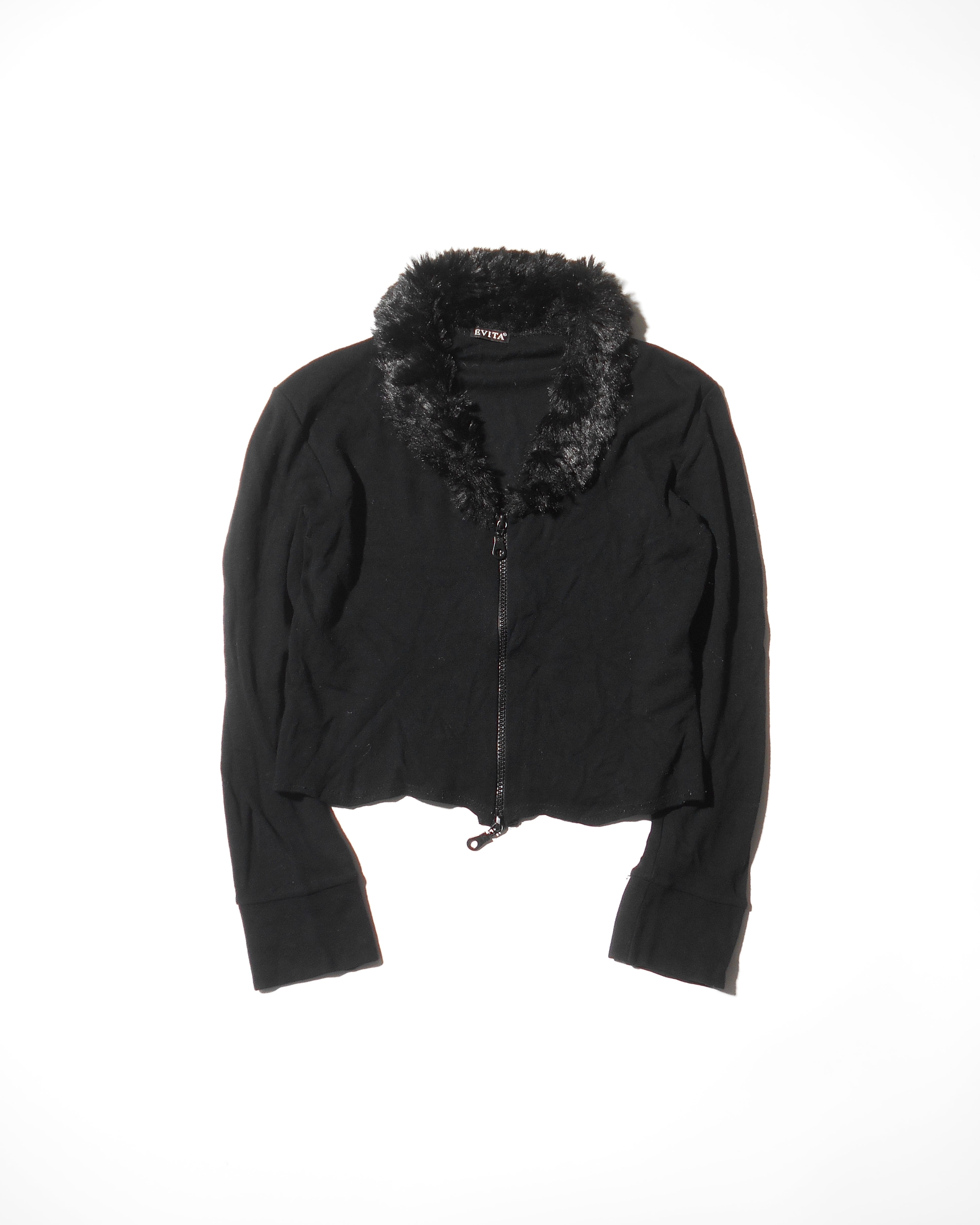 1990s Euro Vintage Faux Fur Collared Double Zip Knitted Sweater