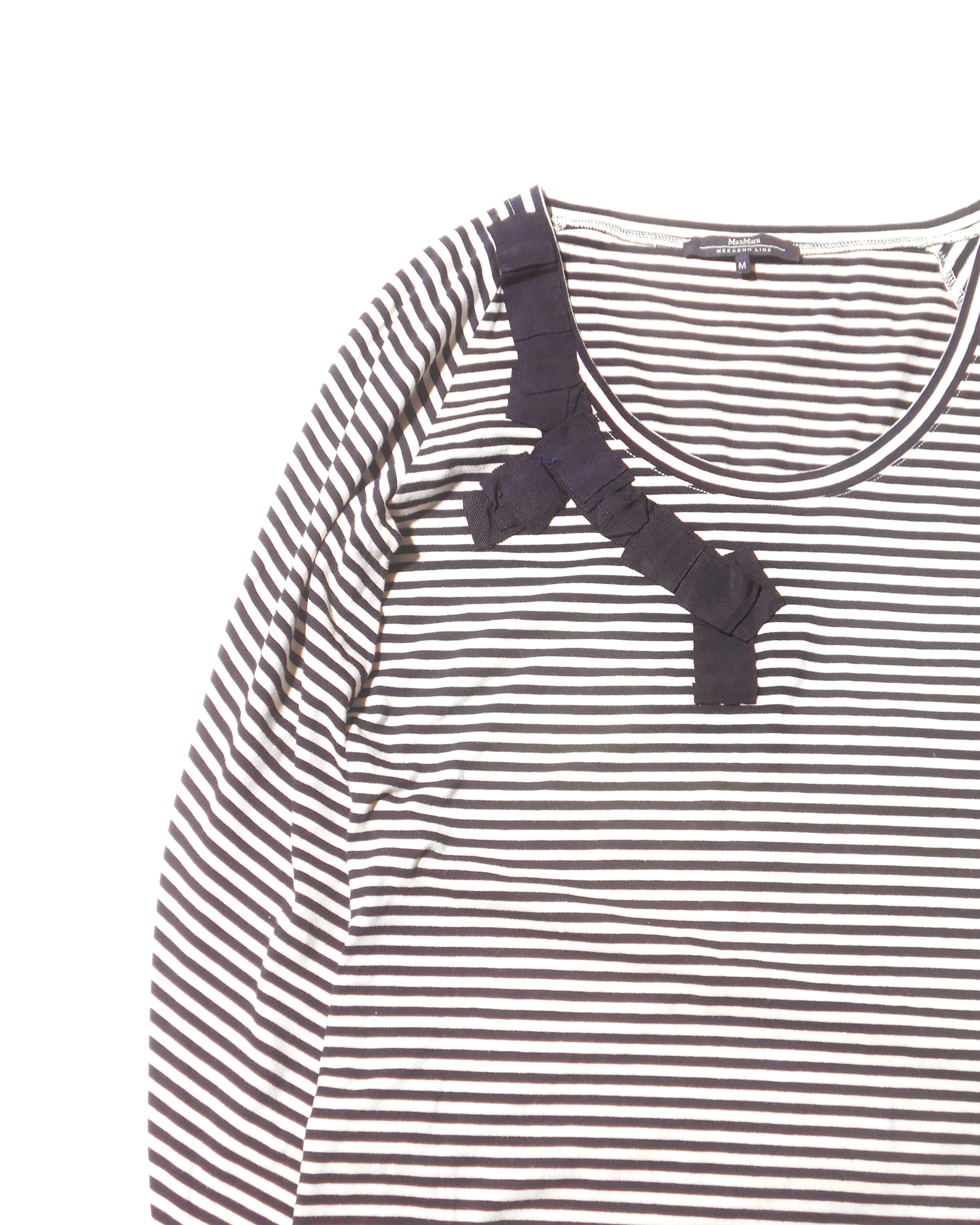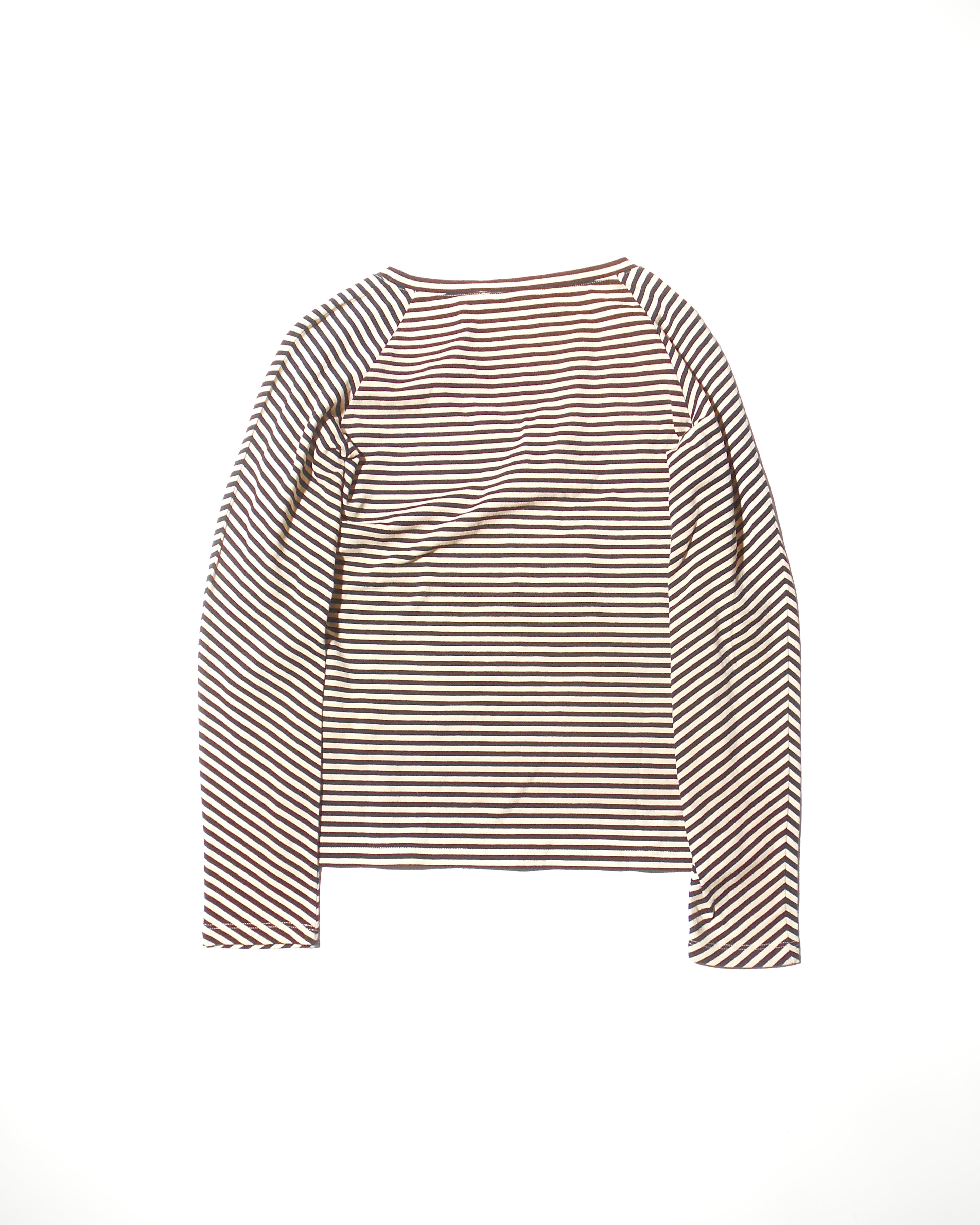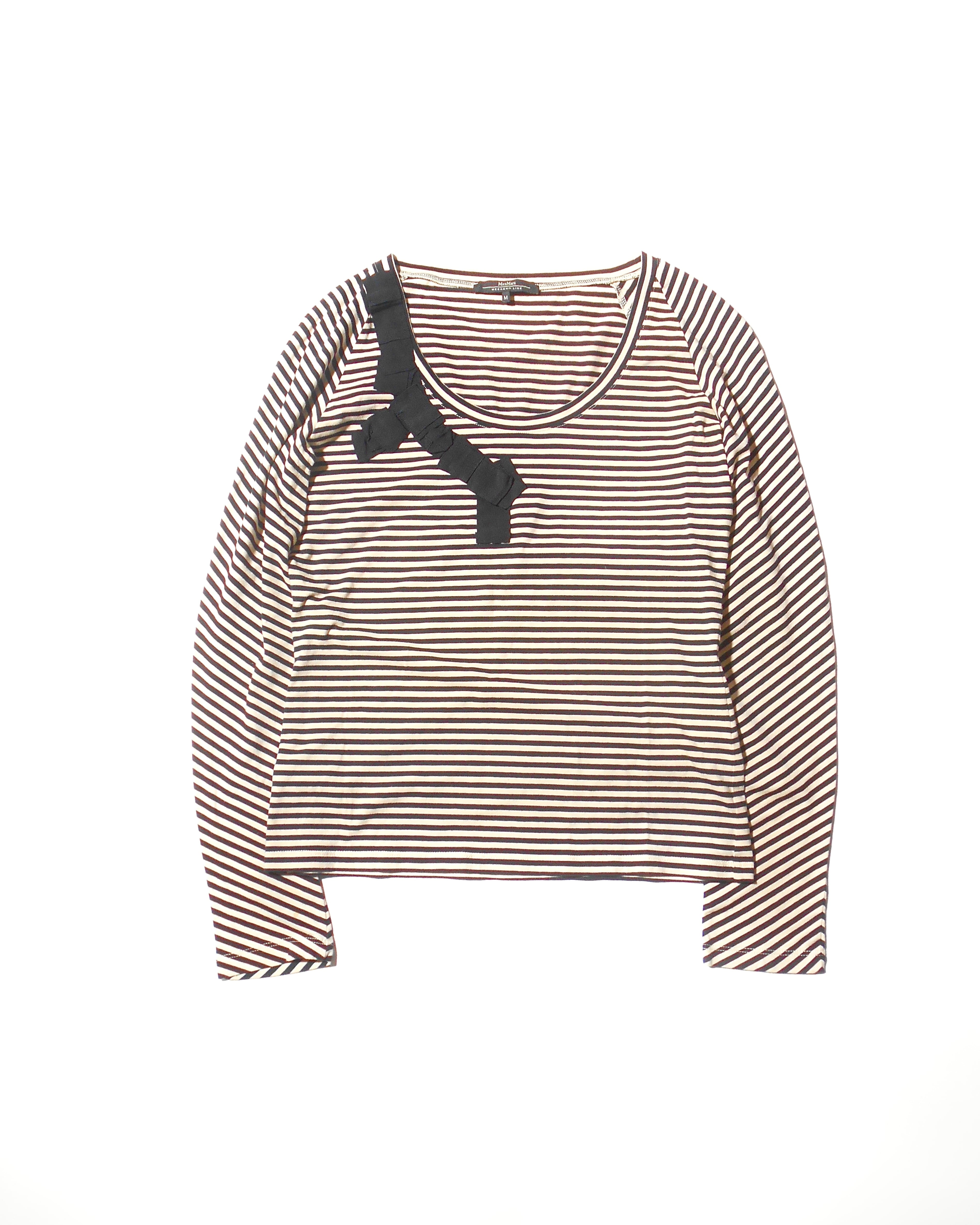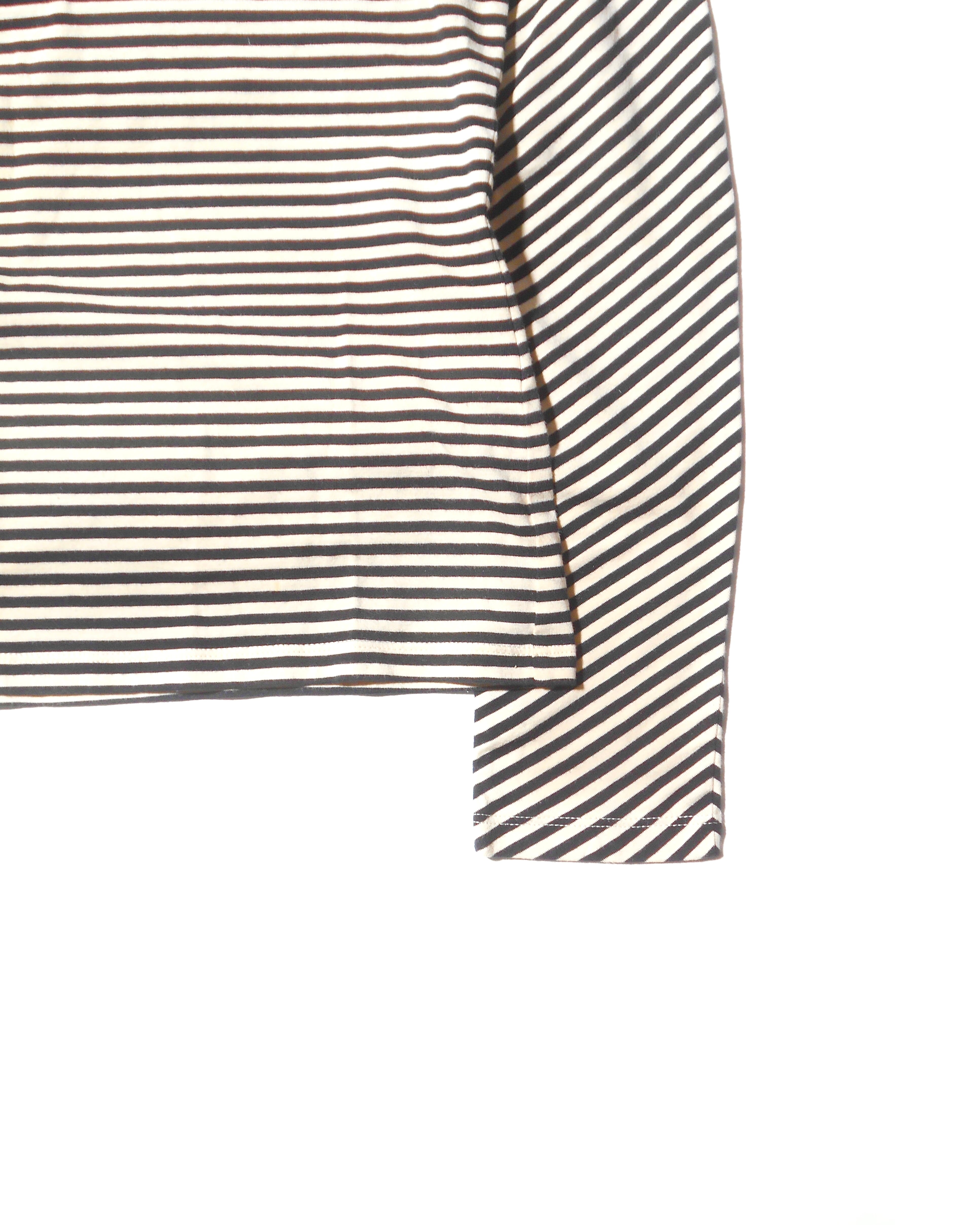 2000s Italian Vintage Ivory Horizontal Striped Long Sleeves T Shirt