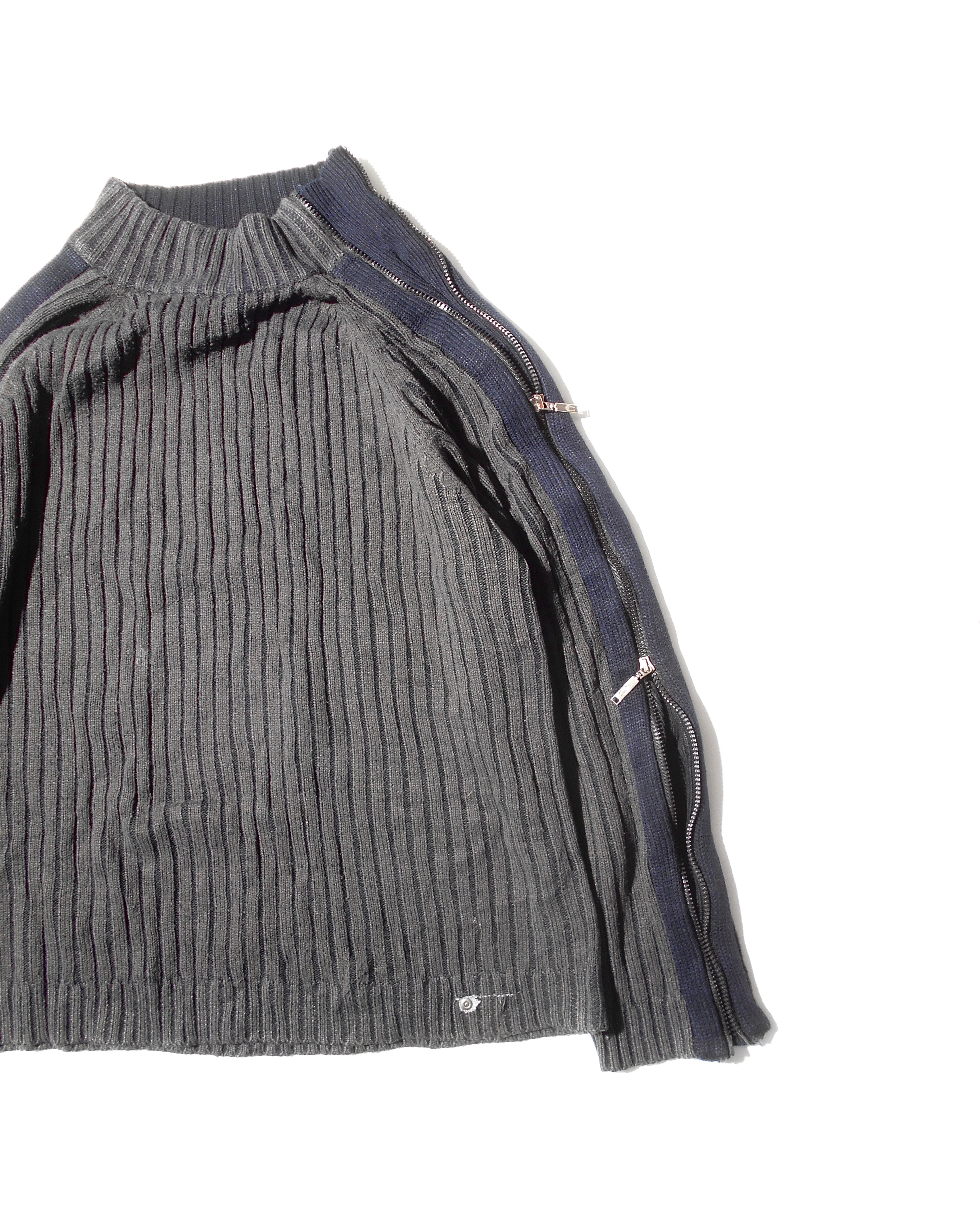 1990s Euro Vintage Side Zipped Ribbed Knitted Sweater