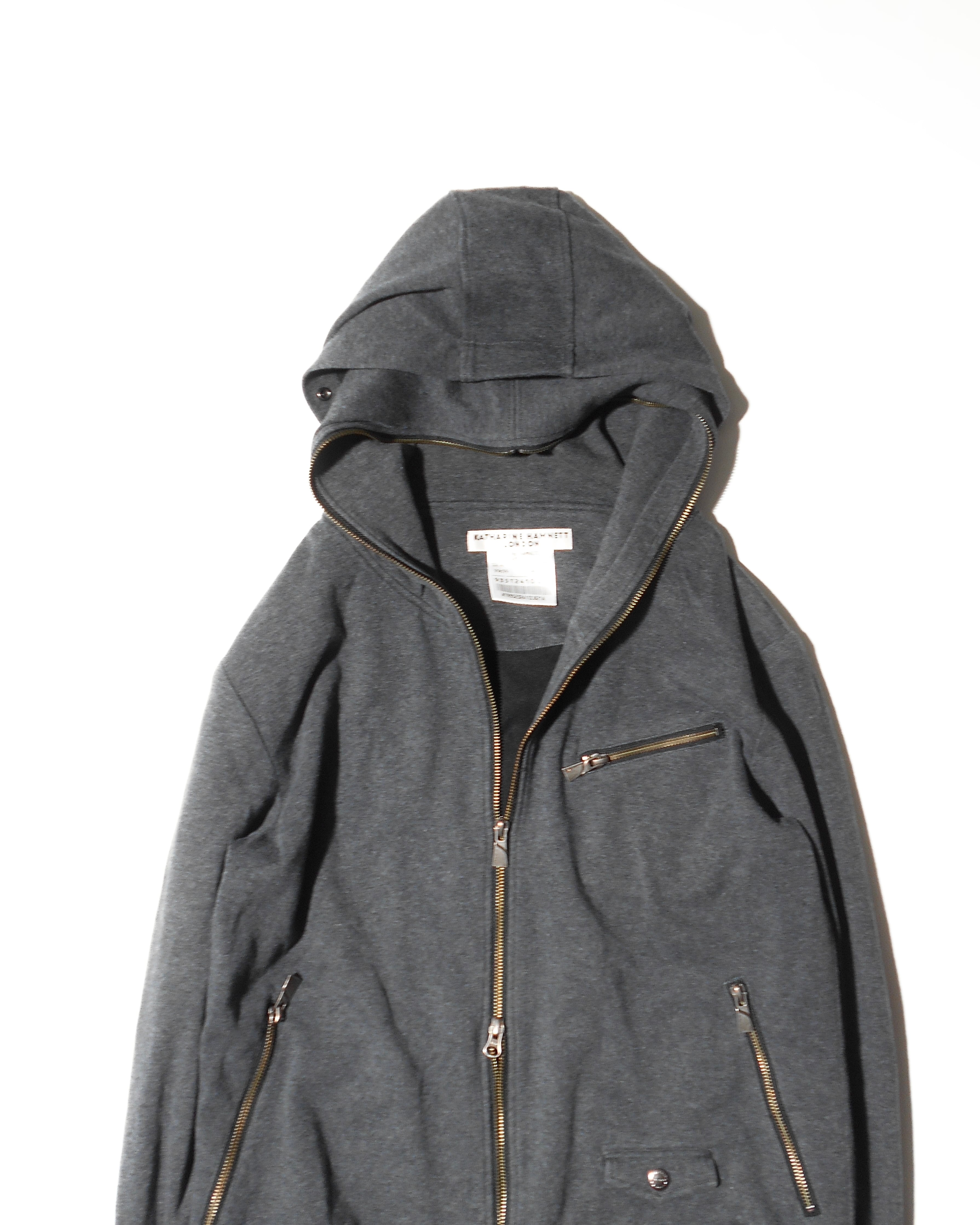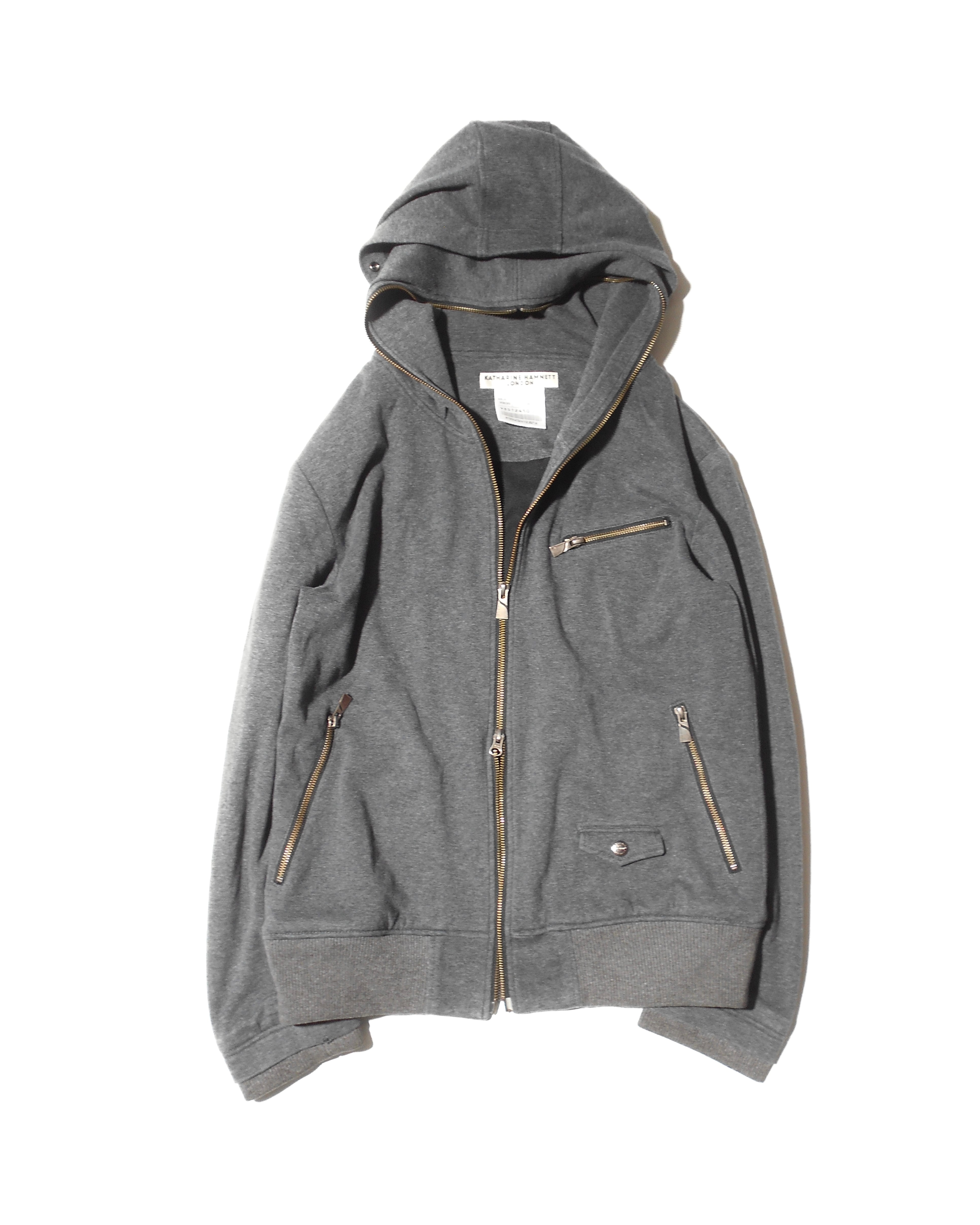 2000s Katherine Hamnett London Riders Pocket Full Face Zip Hoodie w/Double Hood