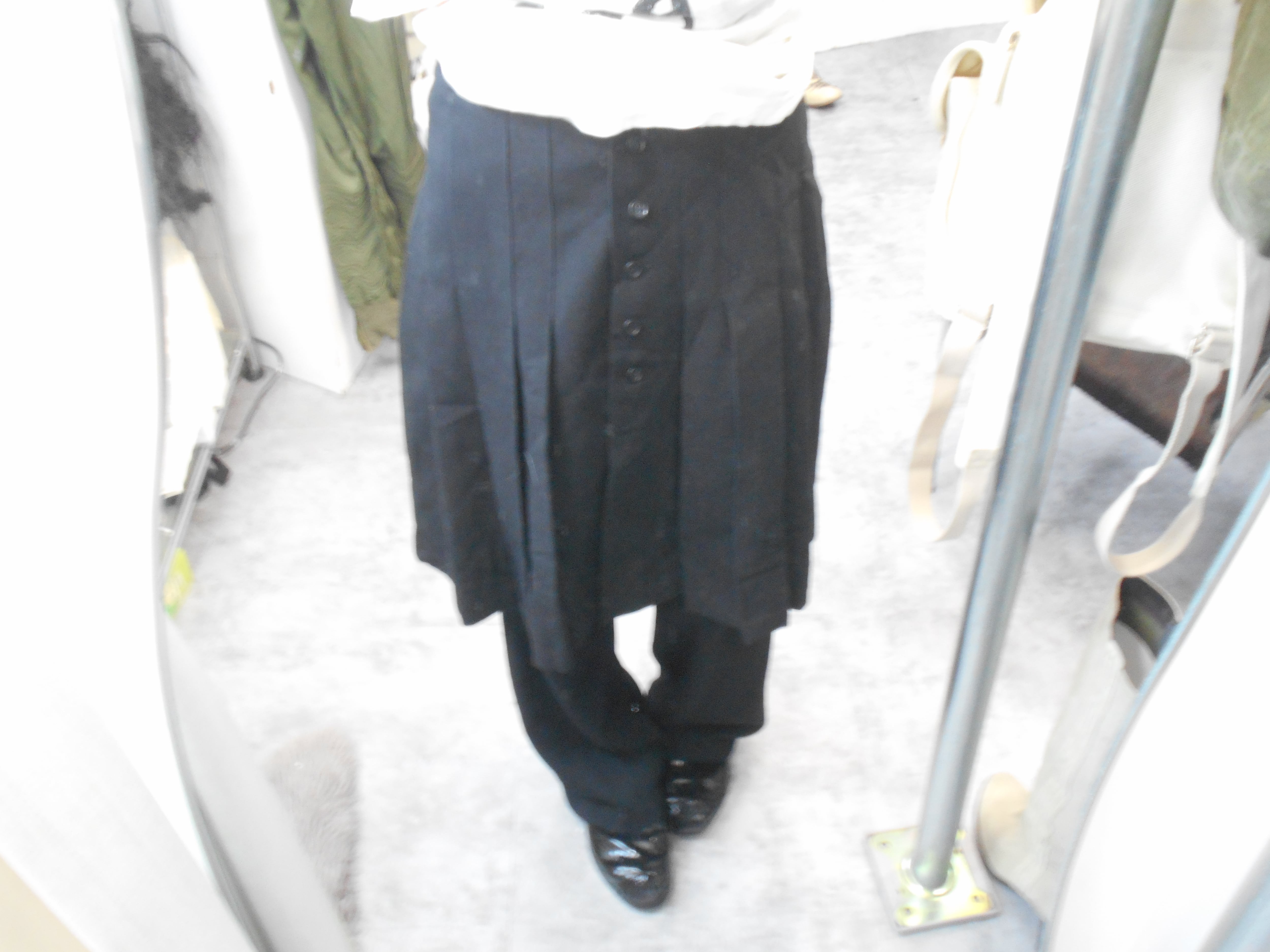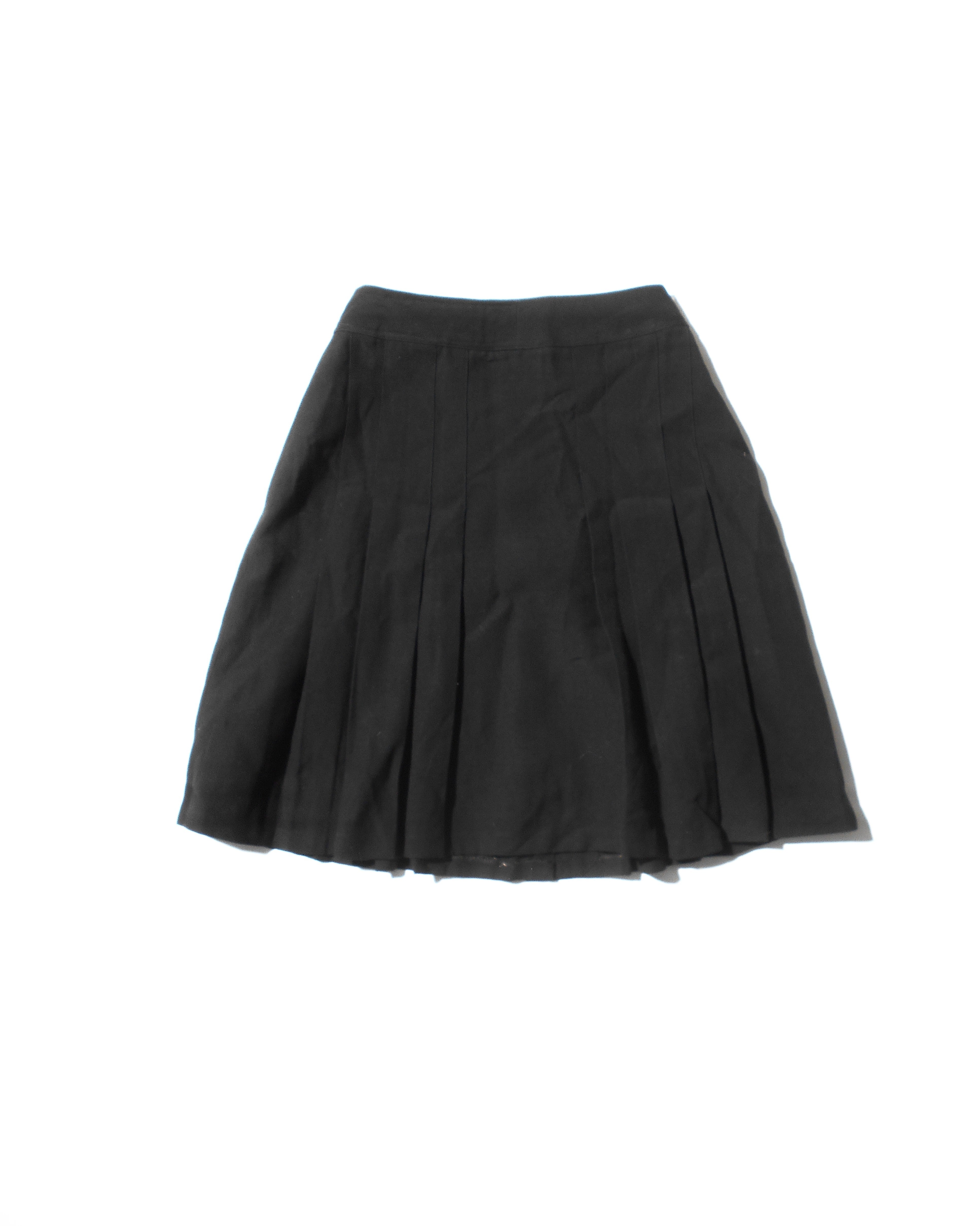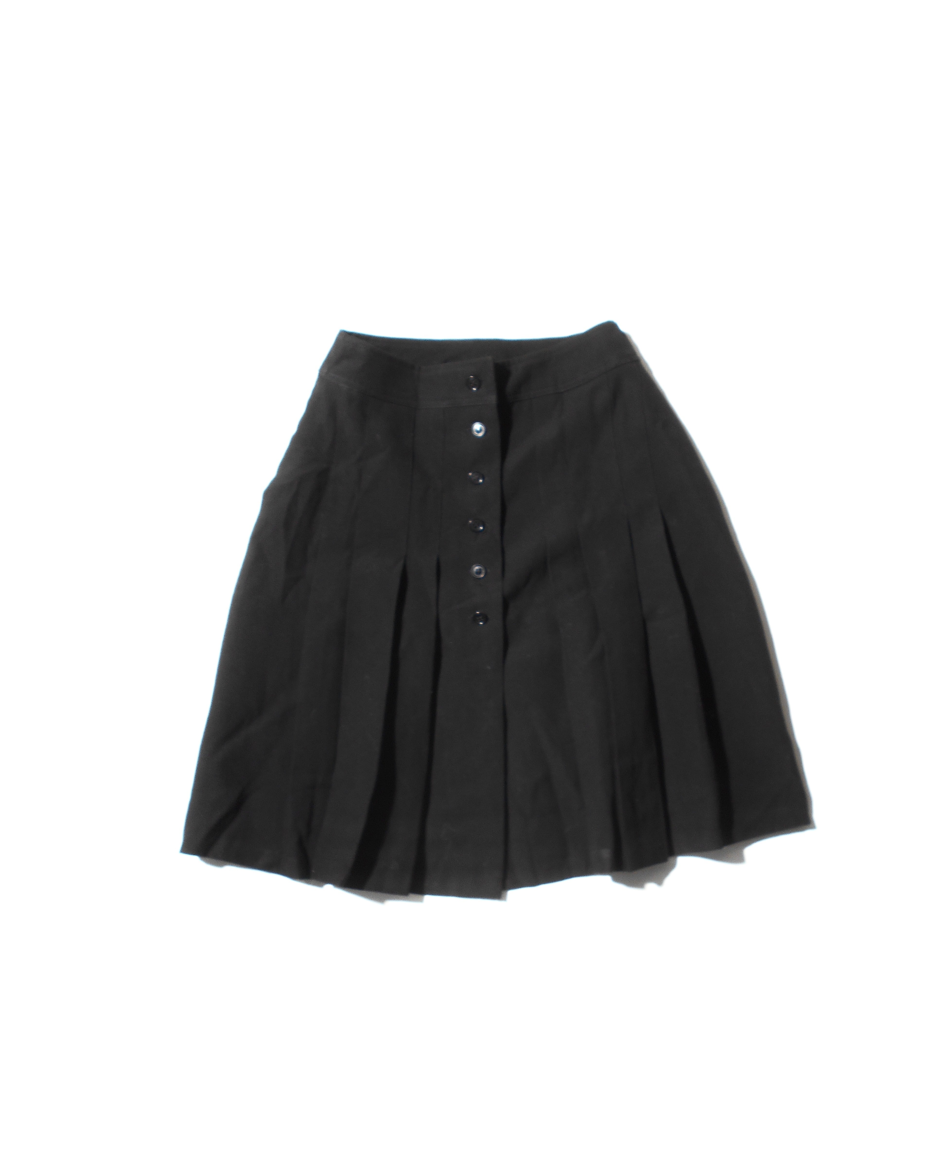 1990s Euro Vintage Front Buttoned Black Melton Wool Pleated Skirt