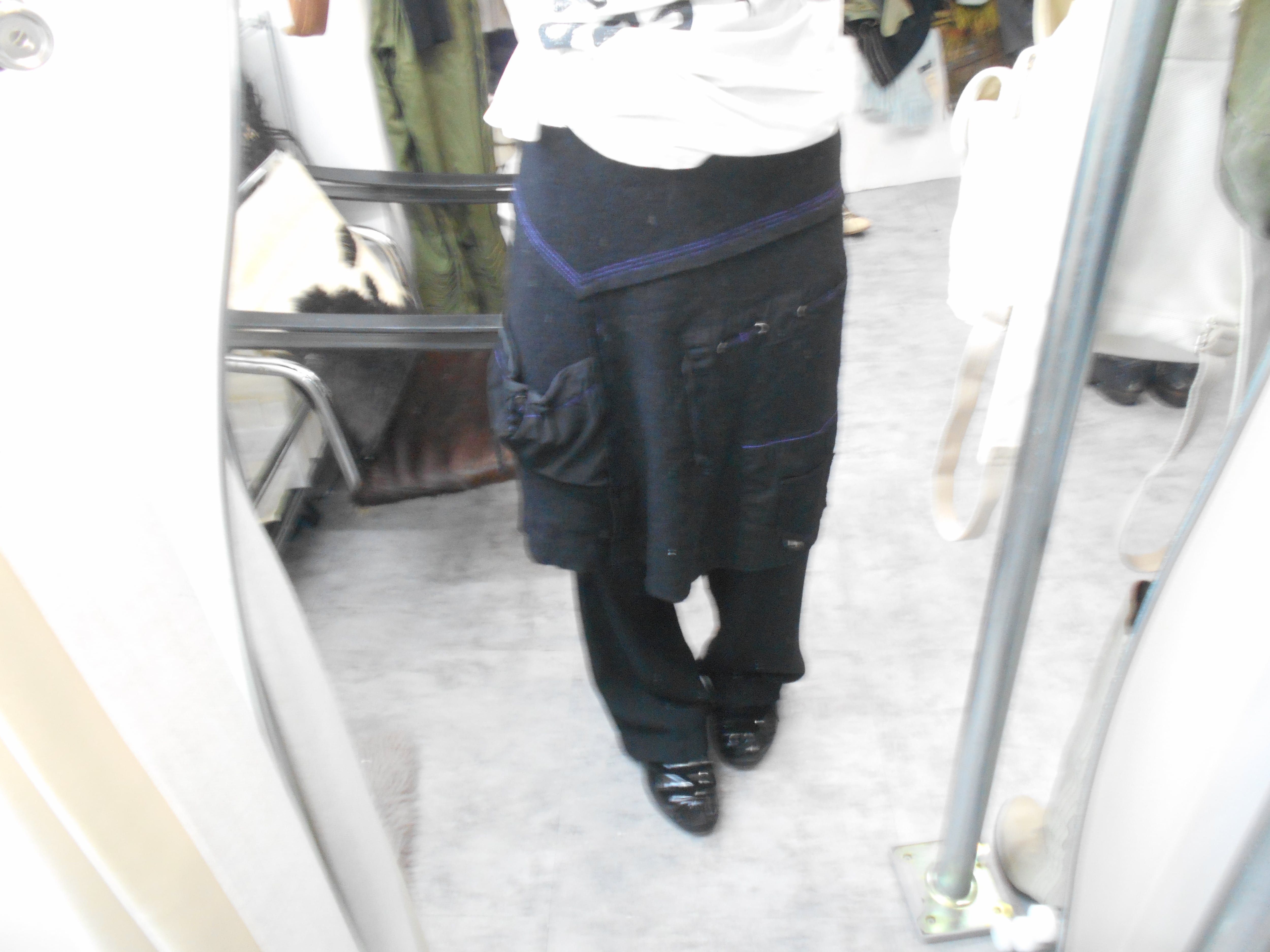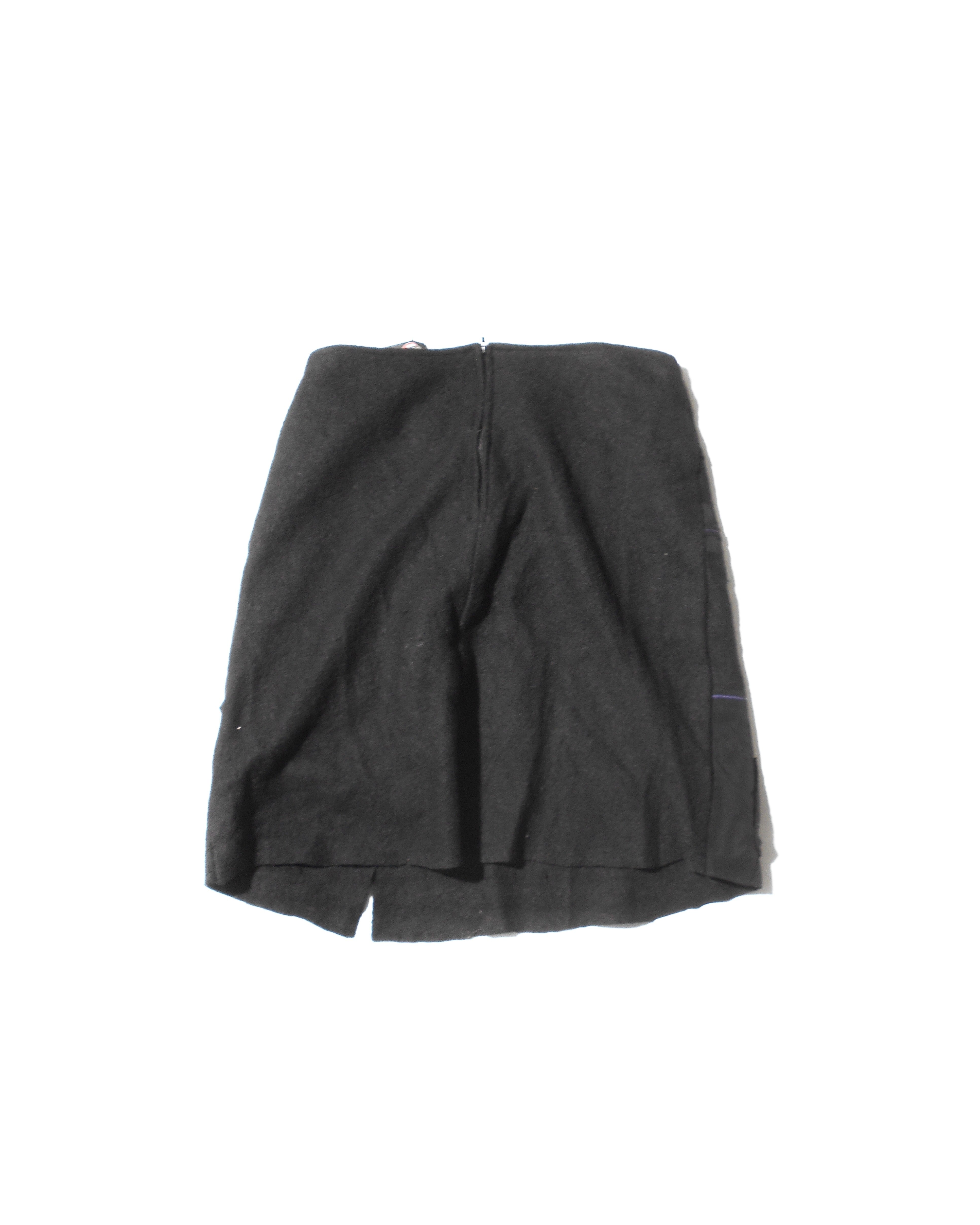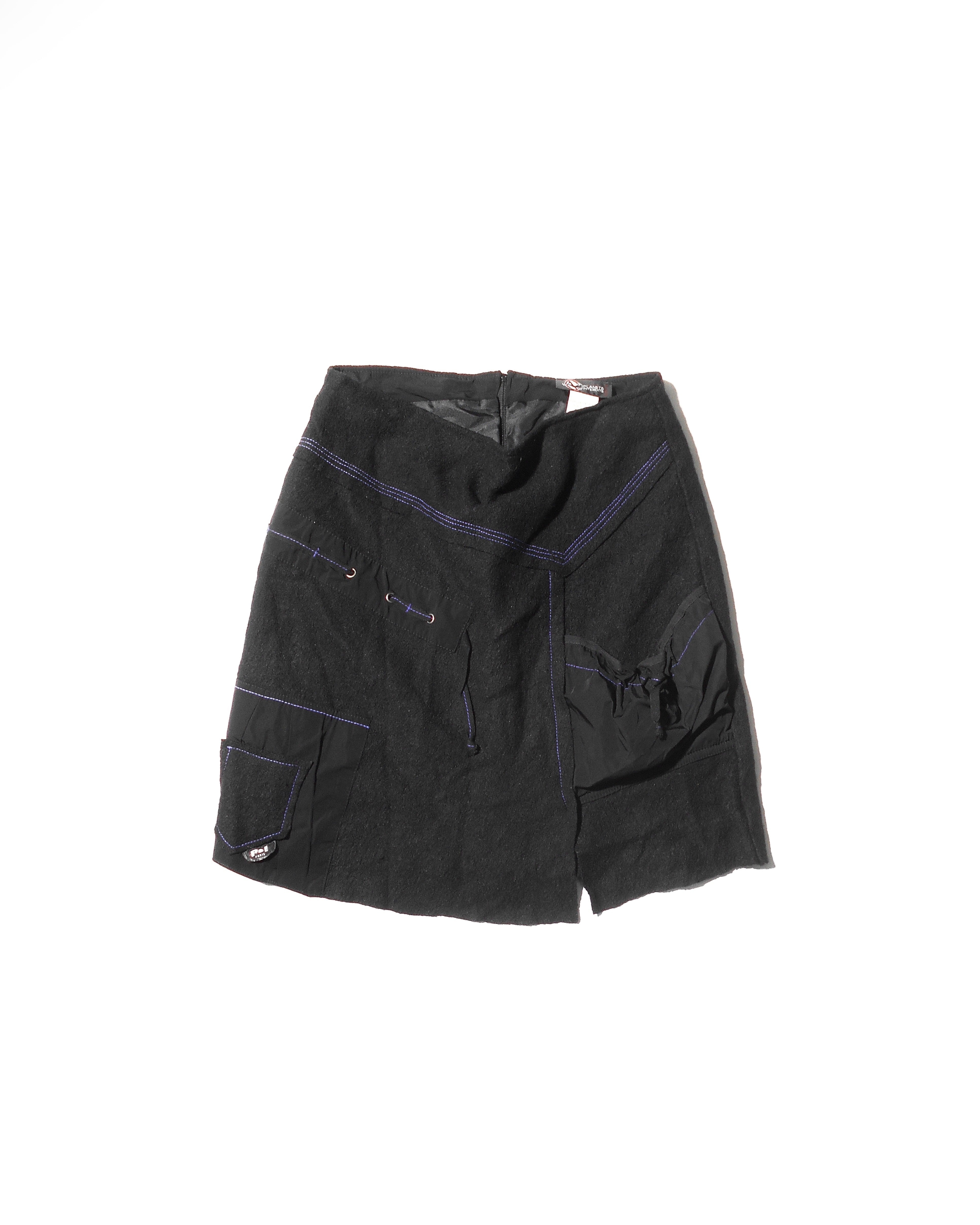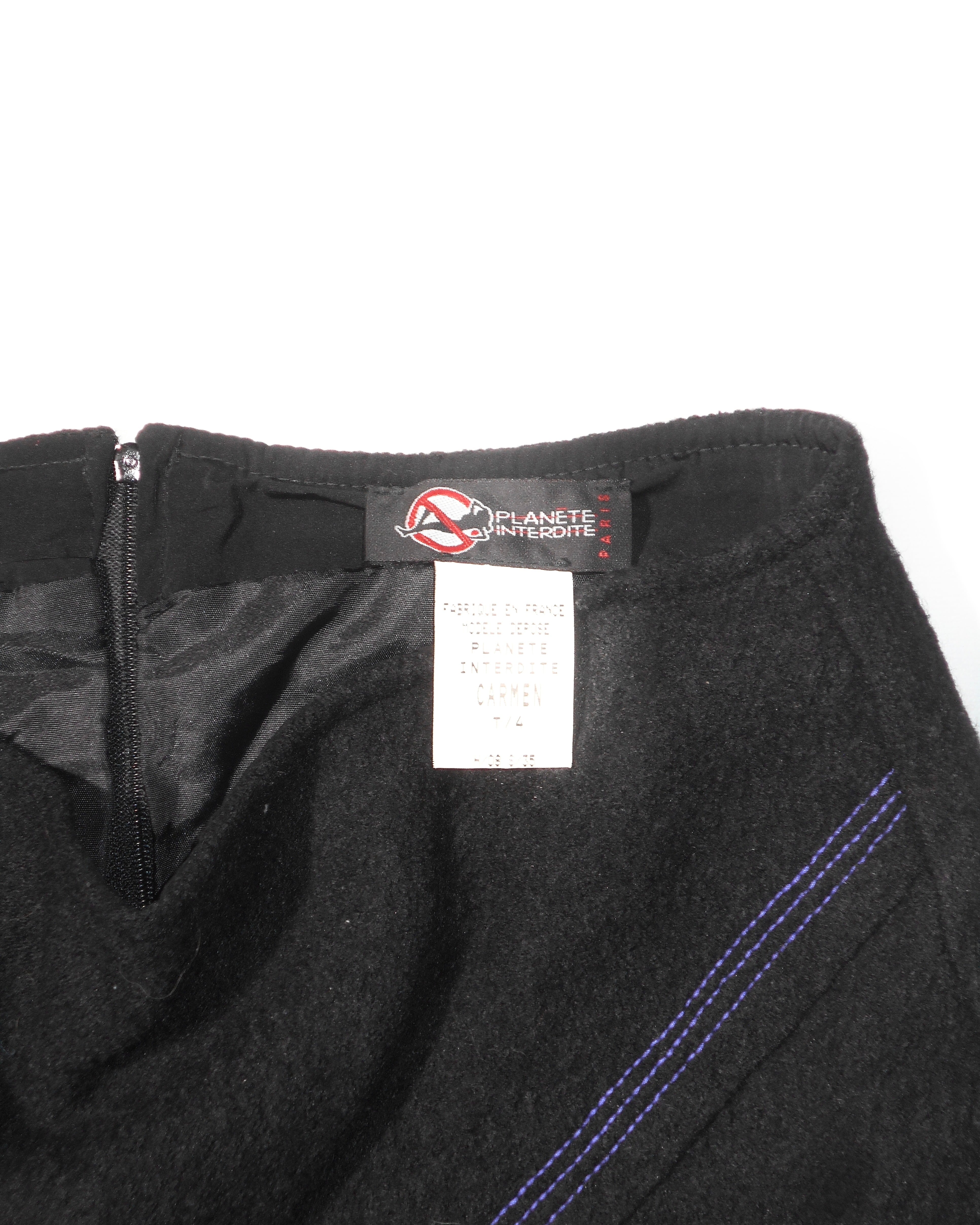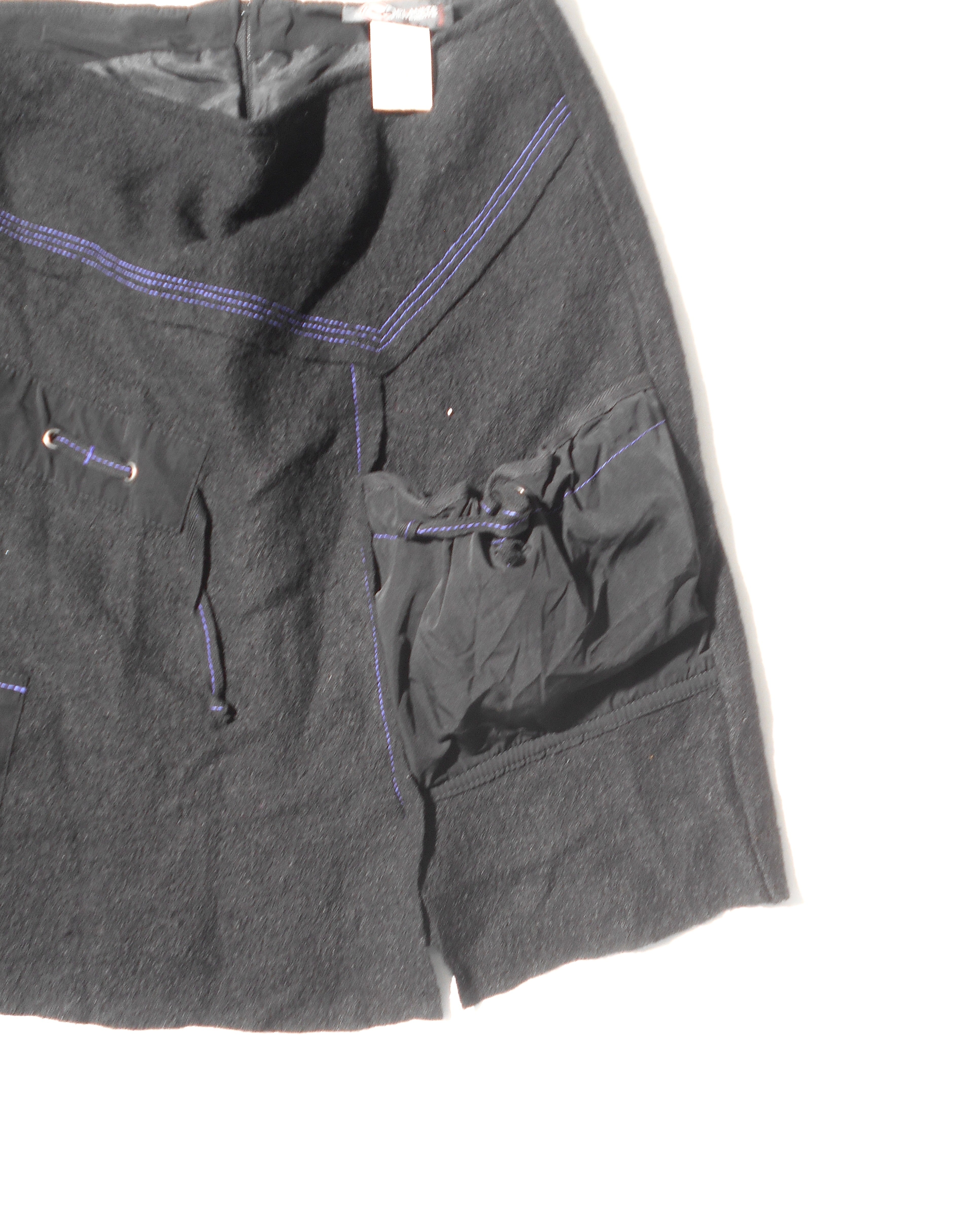 1990s Euro Vintage Asymmetrical Purple stitching Shrunk Wool Short Skirt w/Coded Pouch Pocket