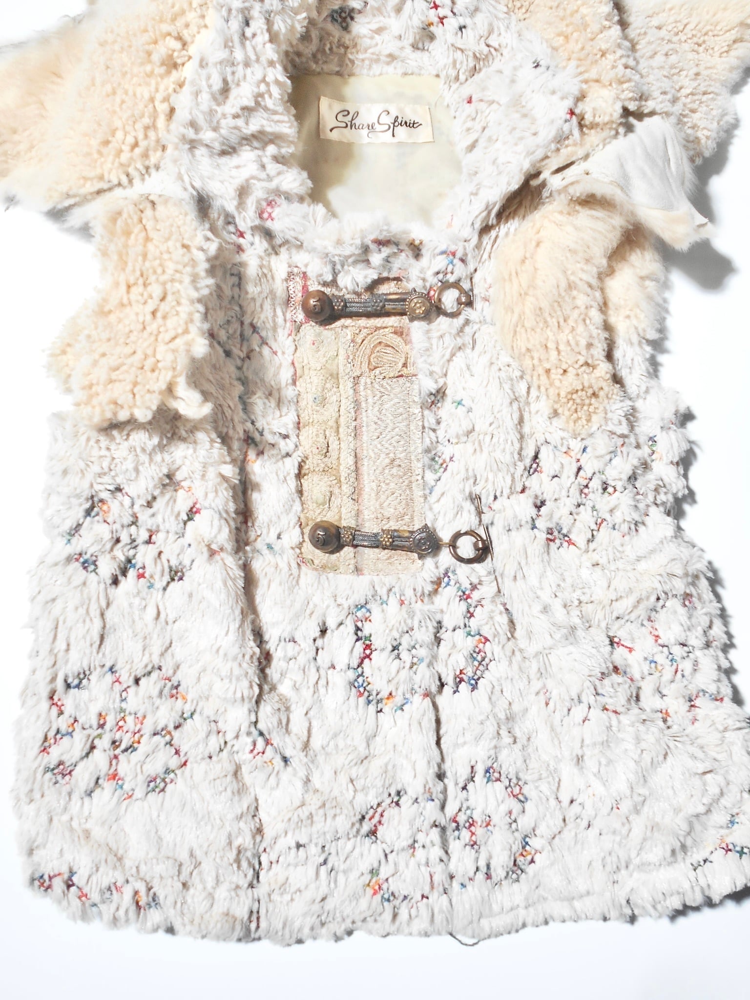 1990-2000s Share Spirit Real Fur Collared Ethnic Fur Vest