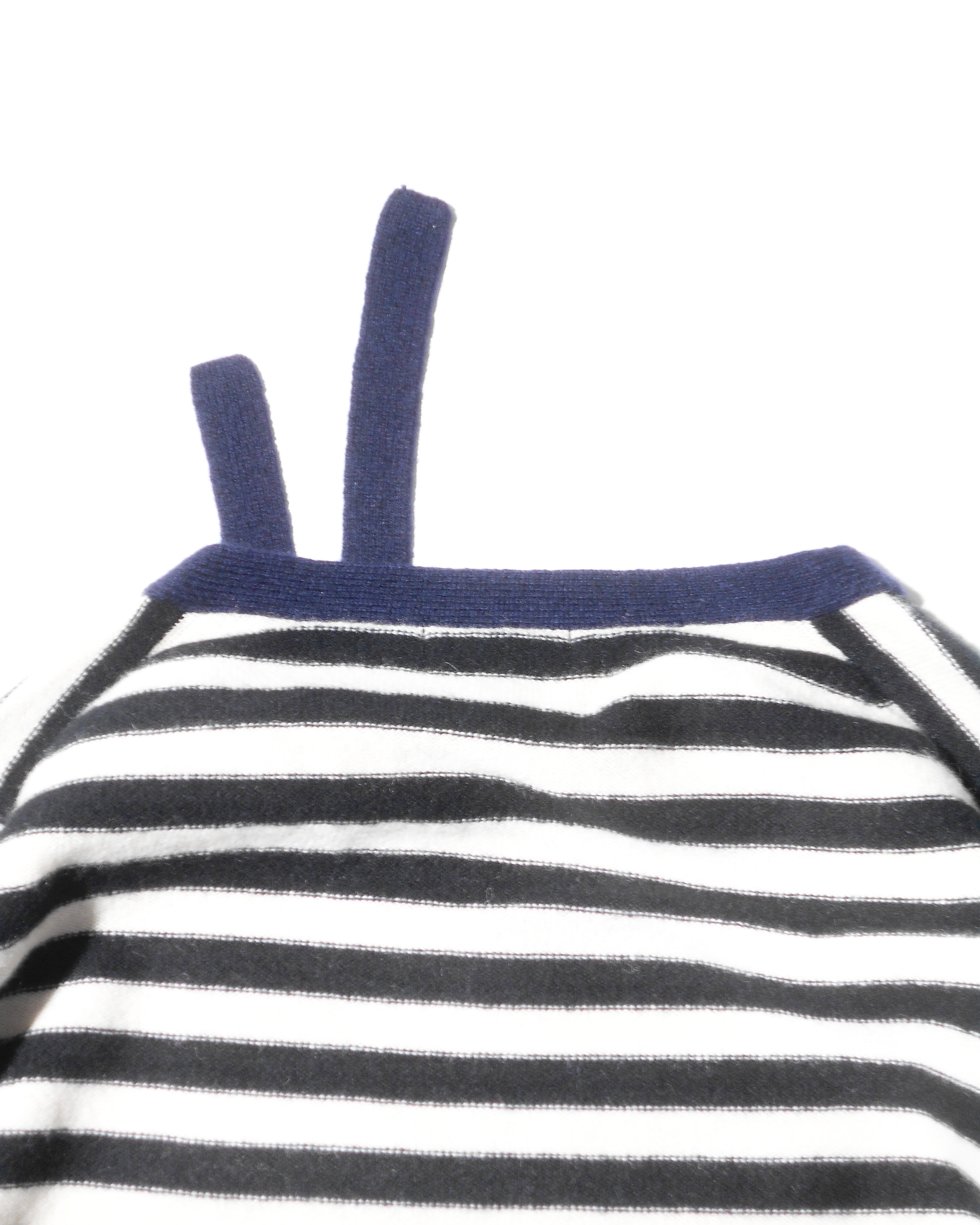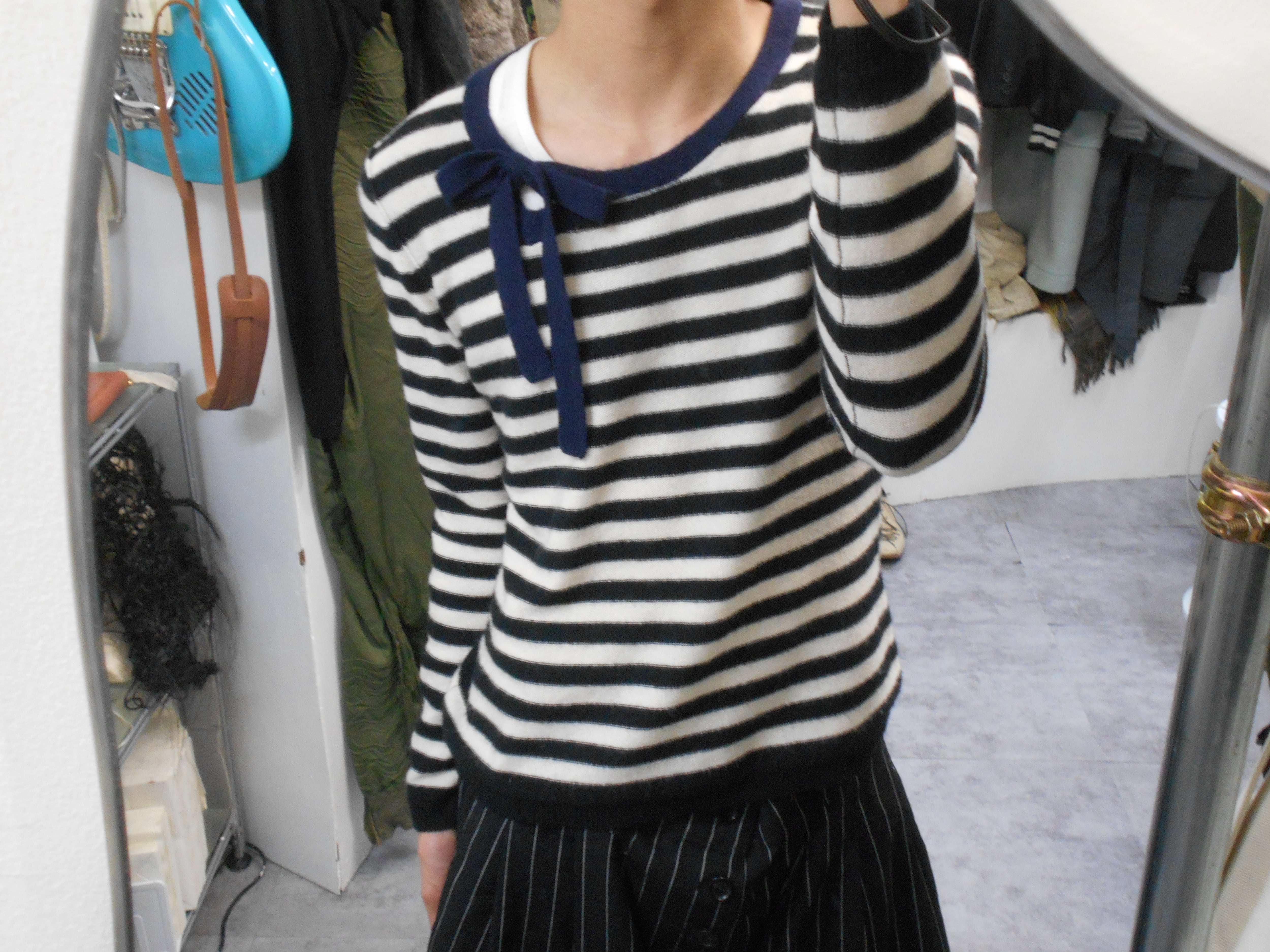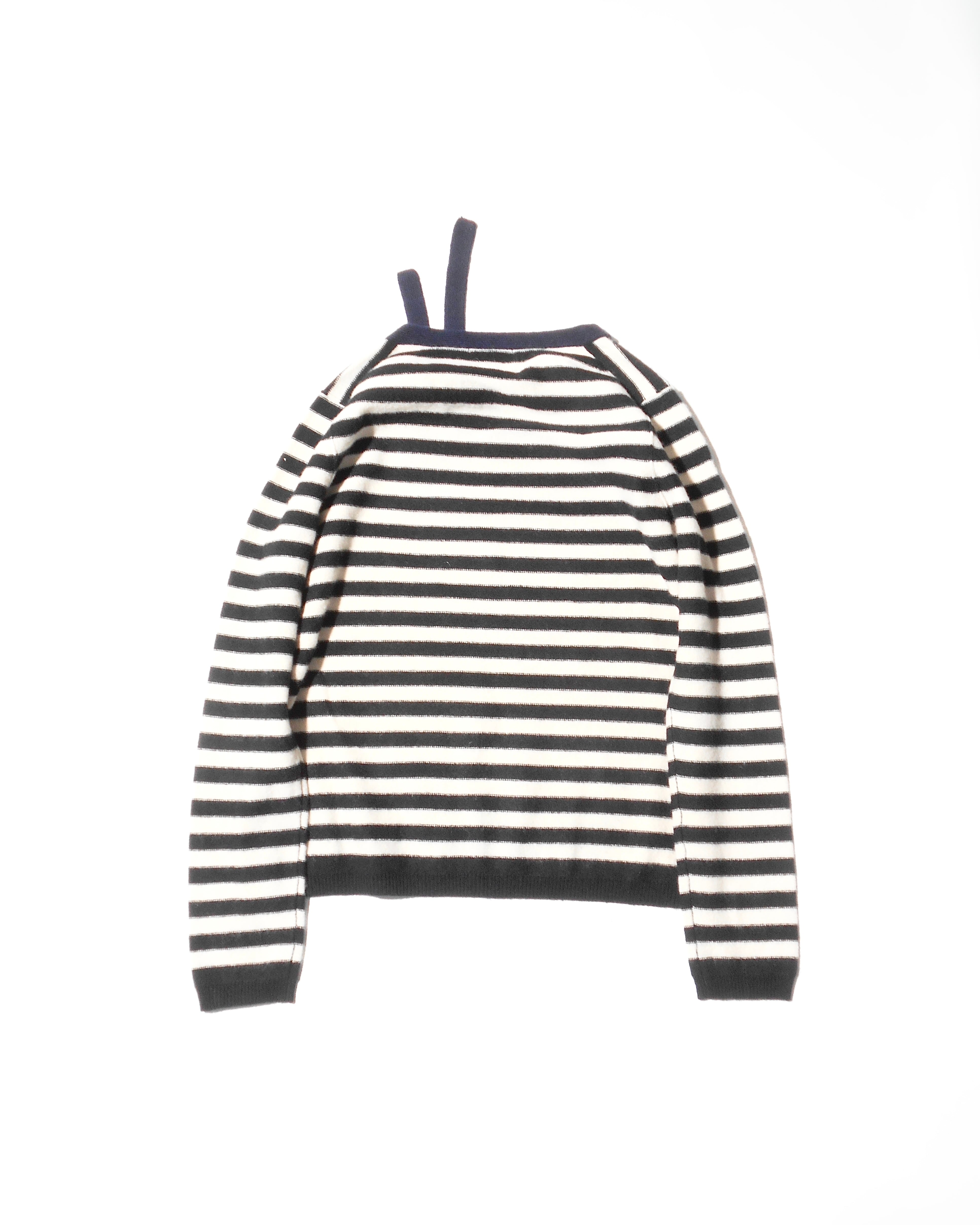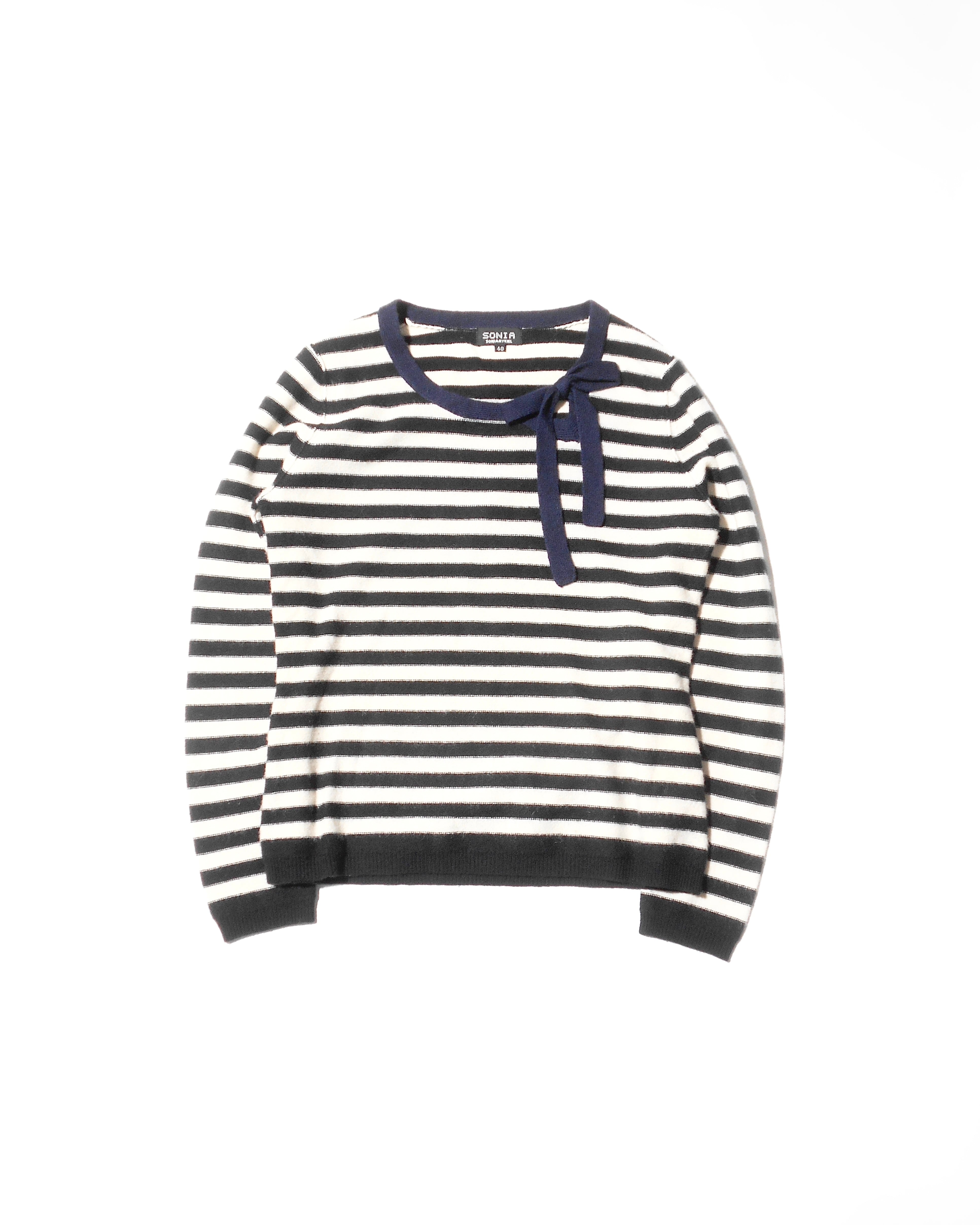 2000s 100% Cashmere Black Striped & Navy Ribbon Knitted Sweater by a French Label, Sonia Rykiel