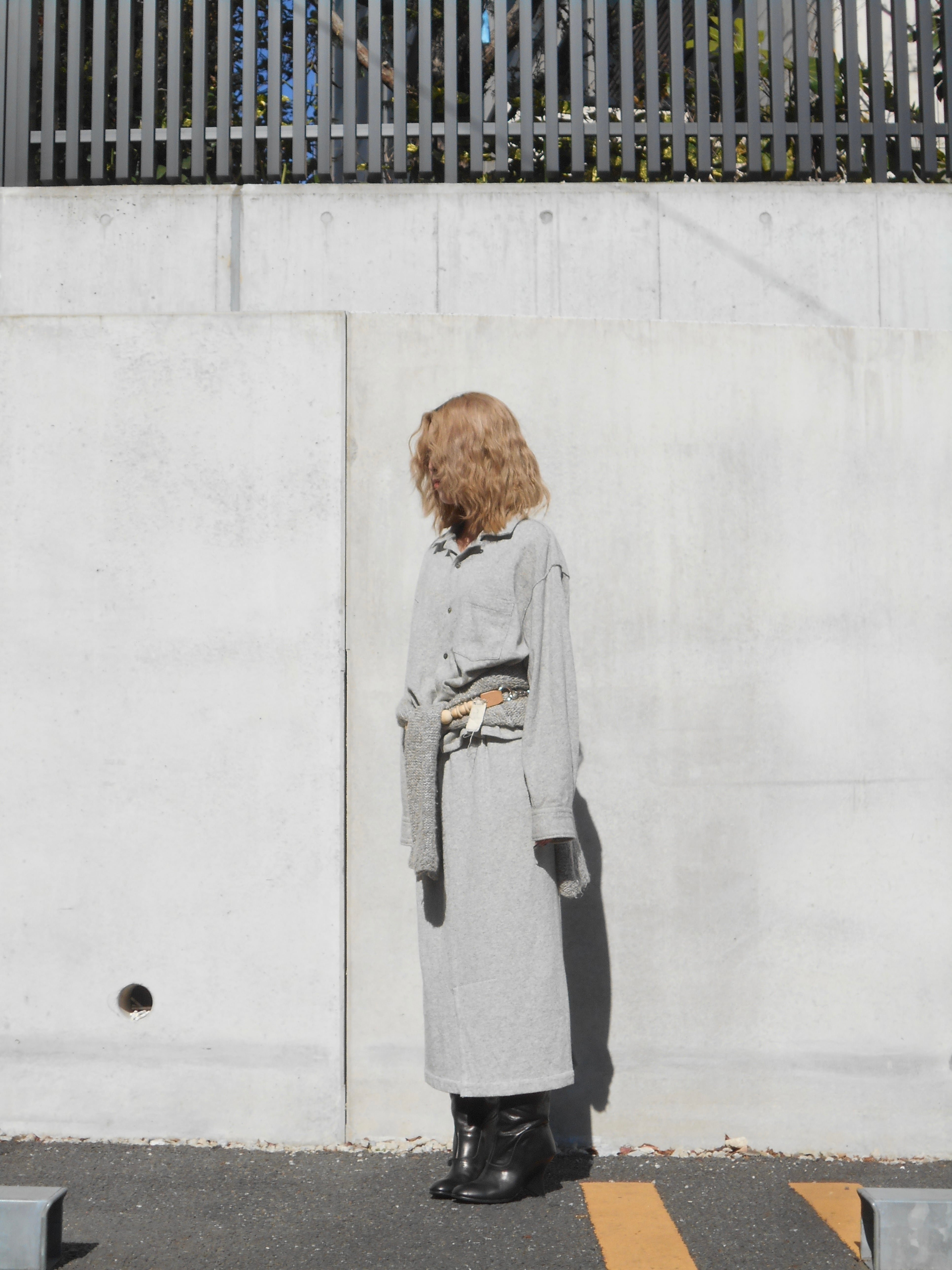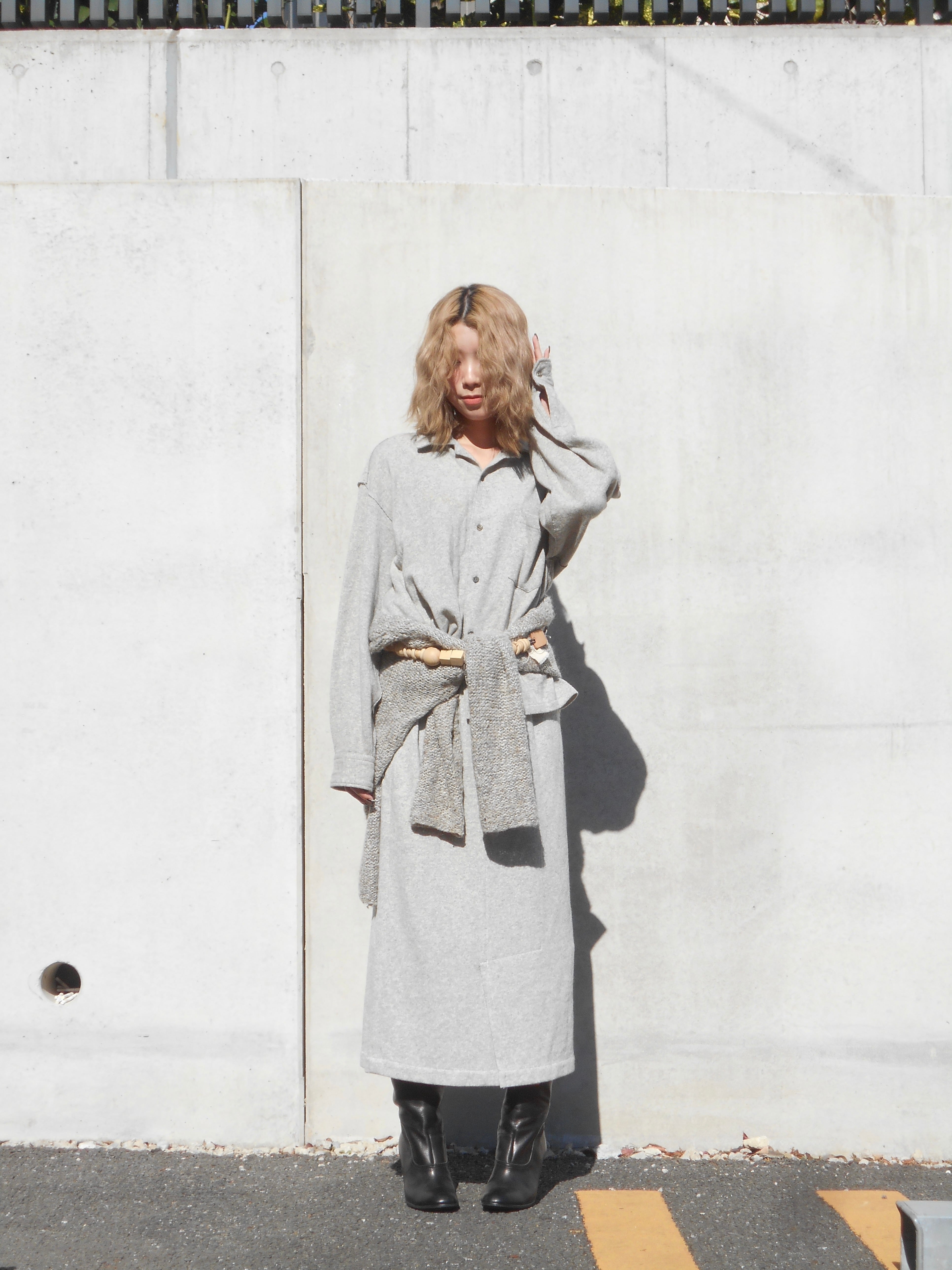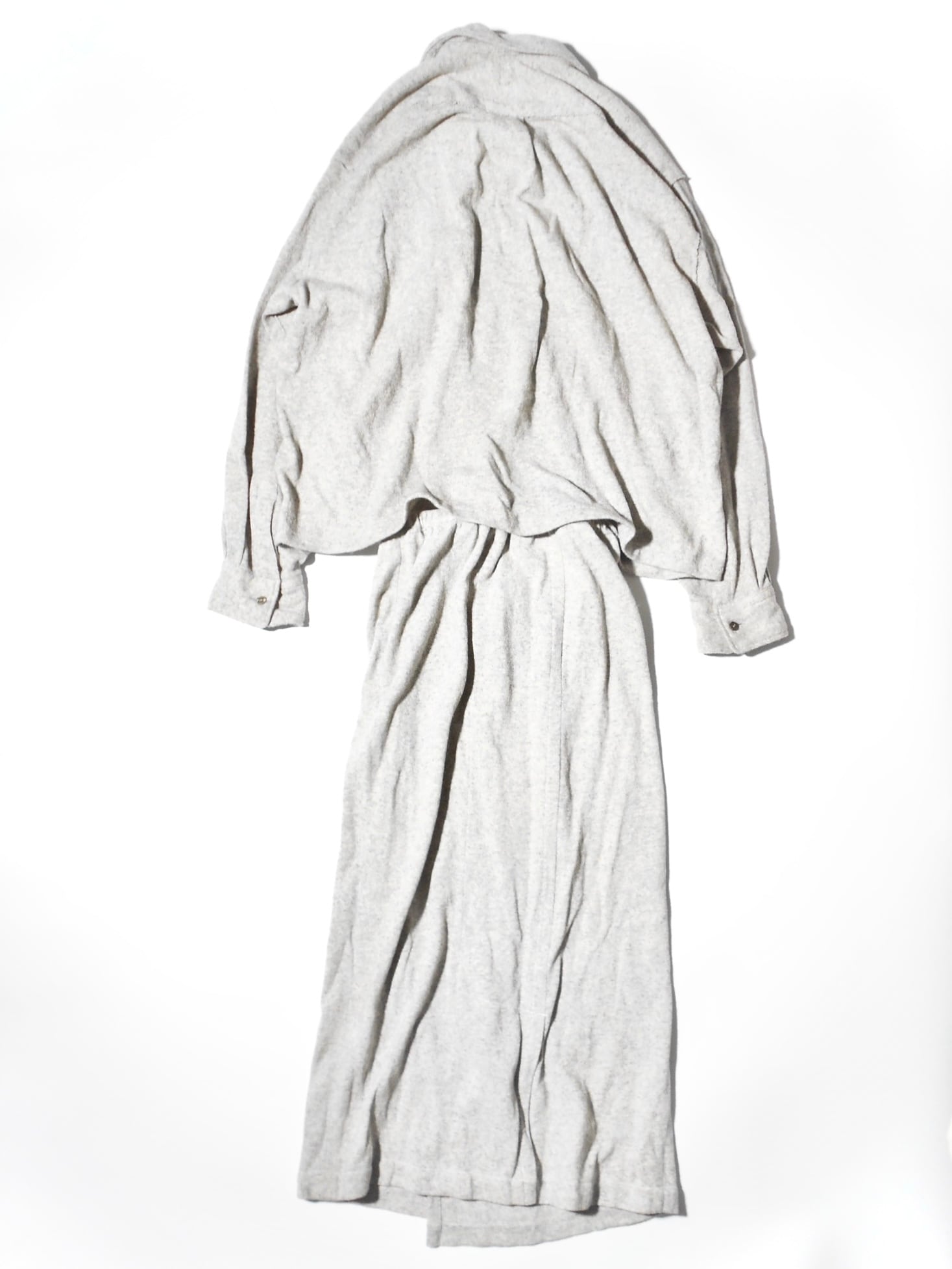Early 1980s Comme des Garçons Gray Wool Shirt Jacket & Long Skirt Ensemble