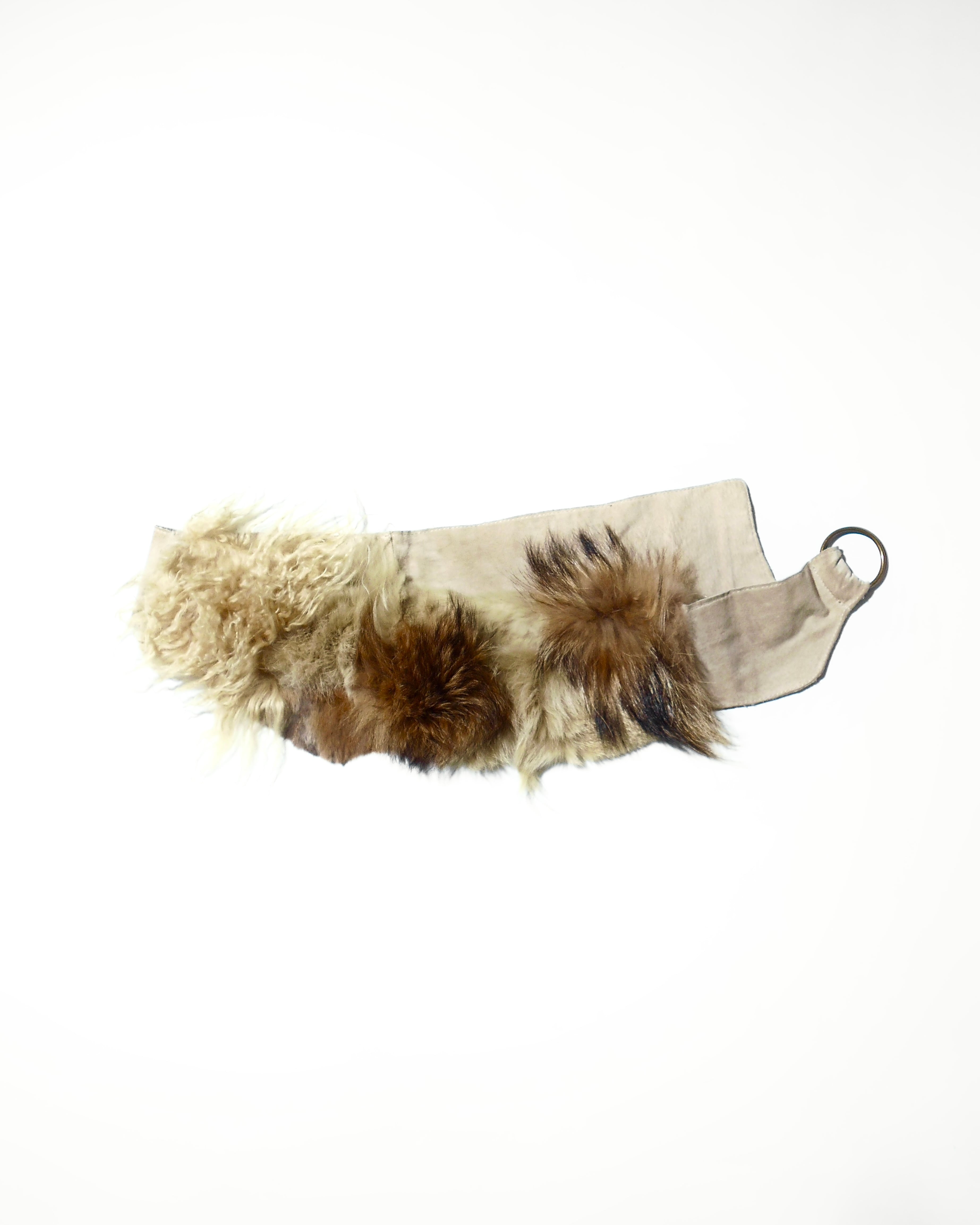 2000s goa Multi-textured Fur Patchwork Ring Belt