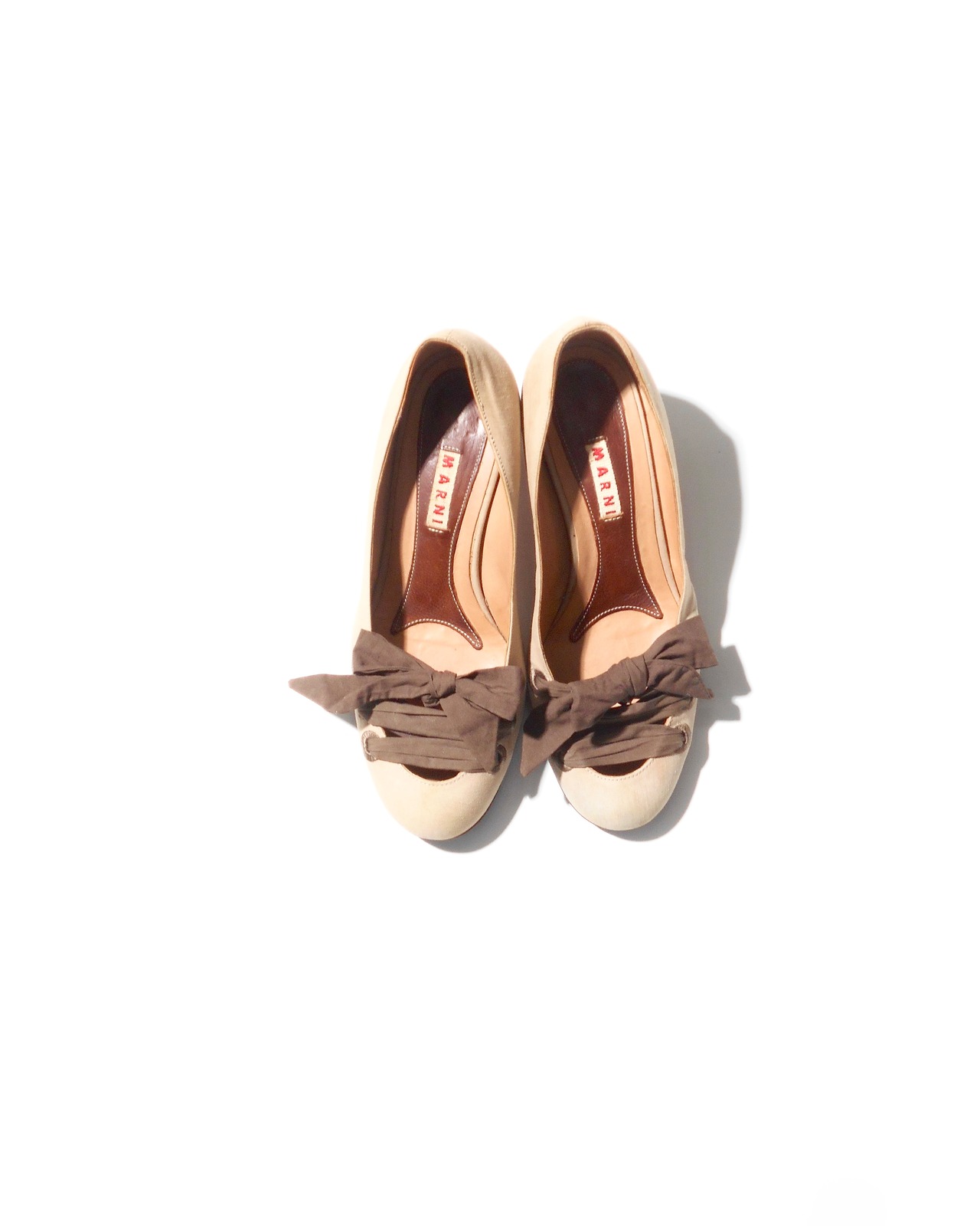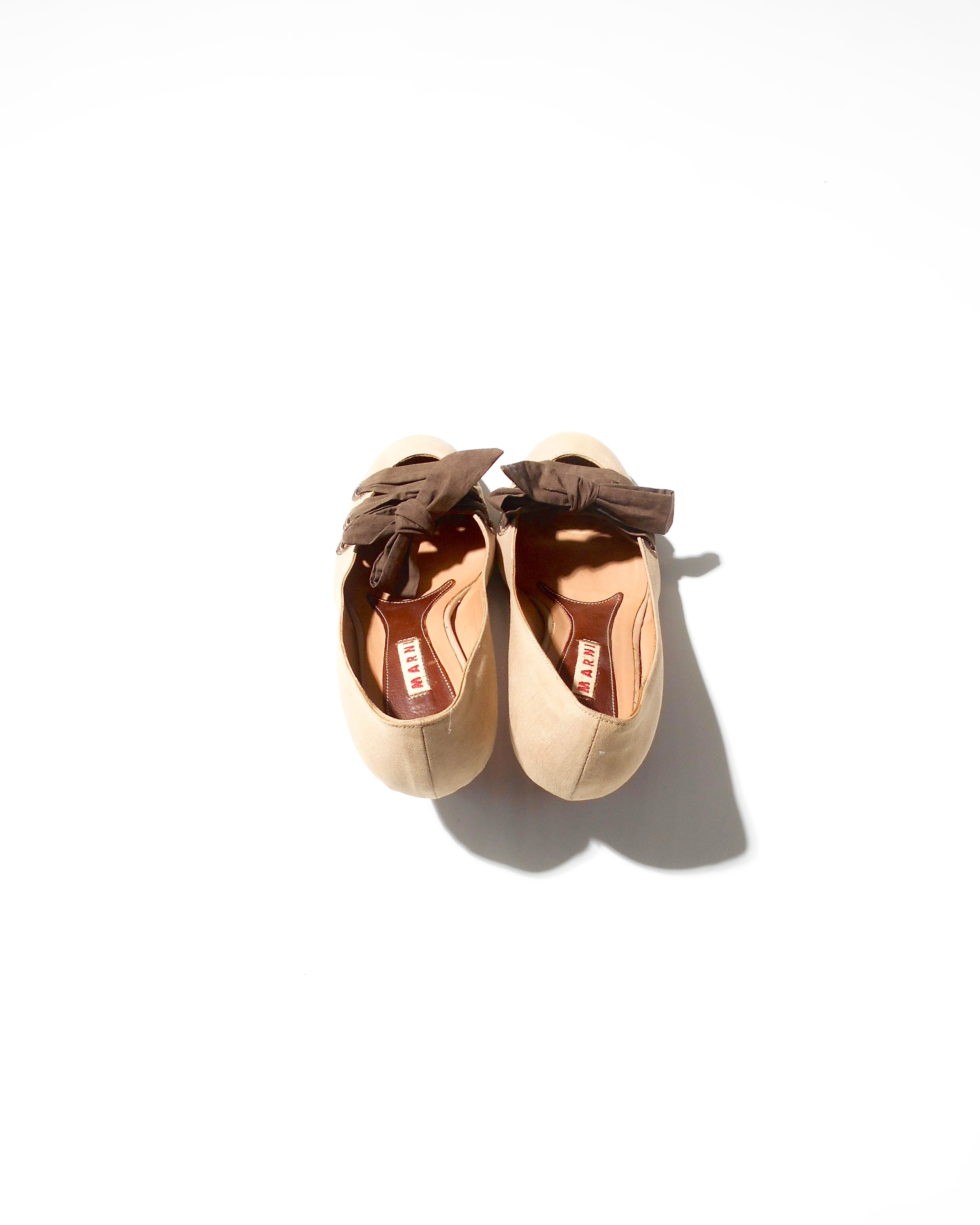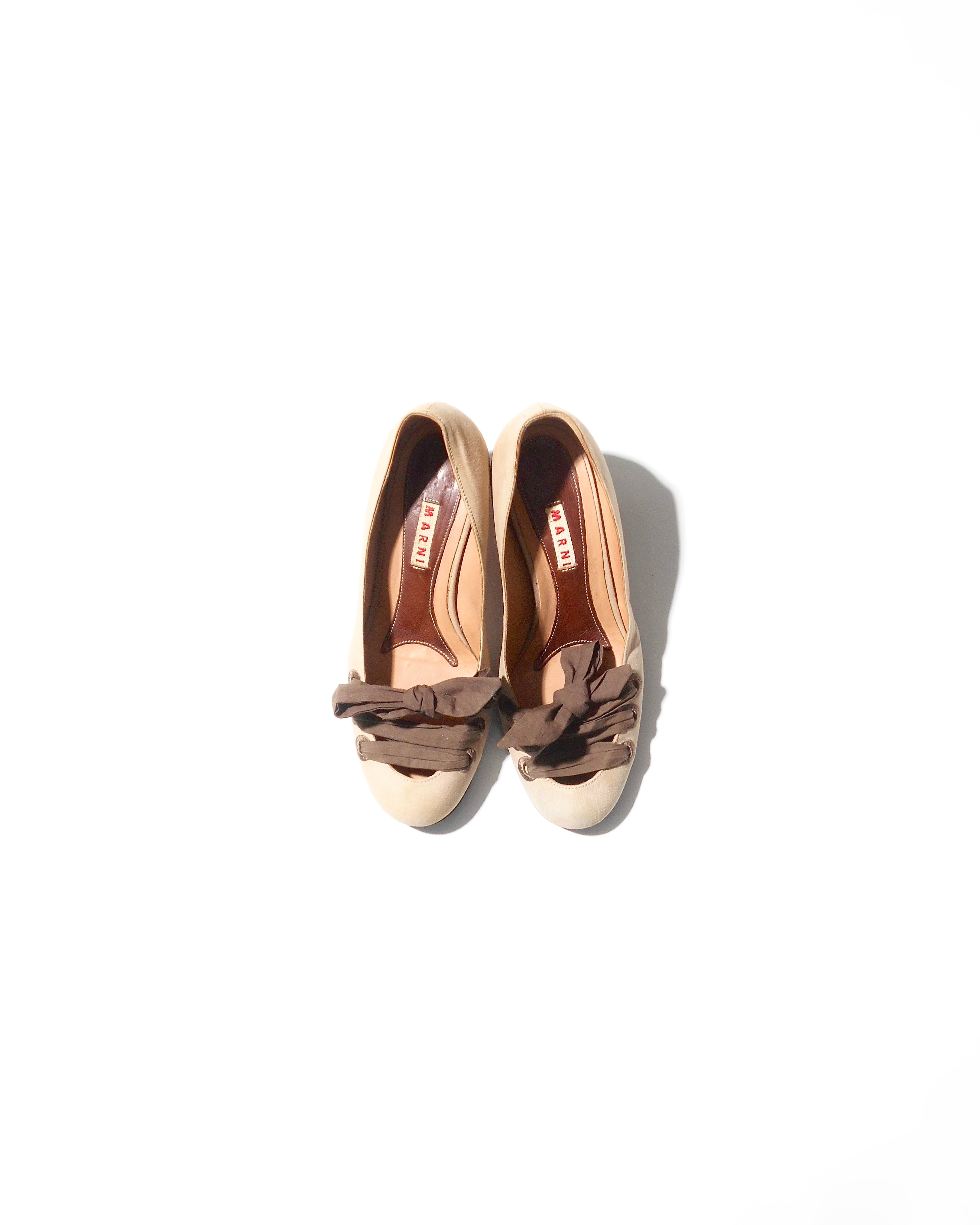 Marni Brown Ribbon Coded Ivory Pumps