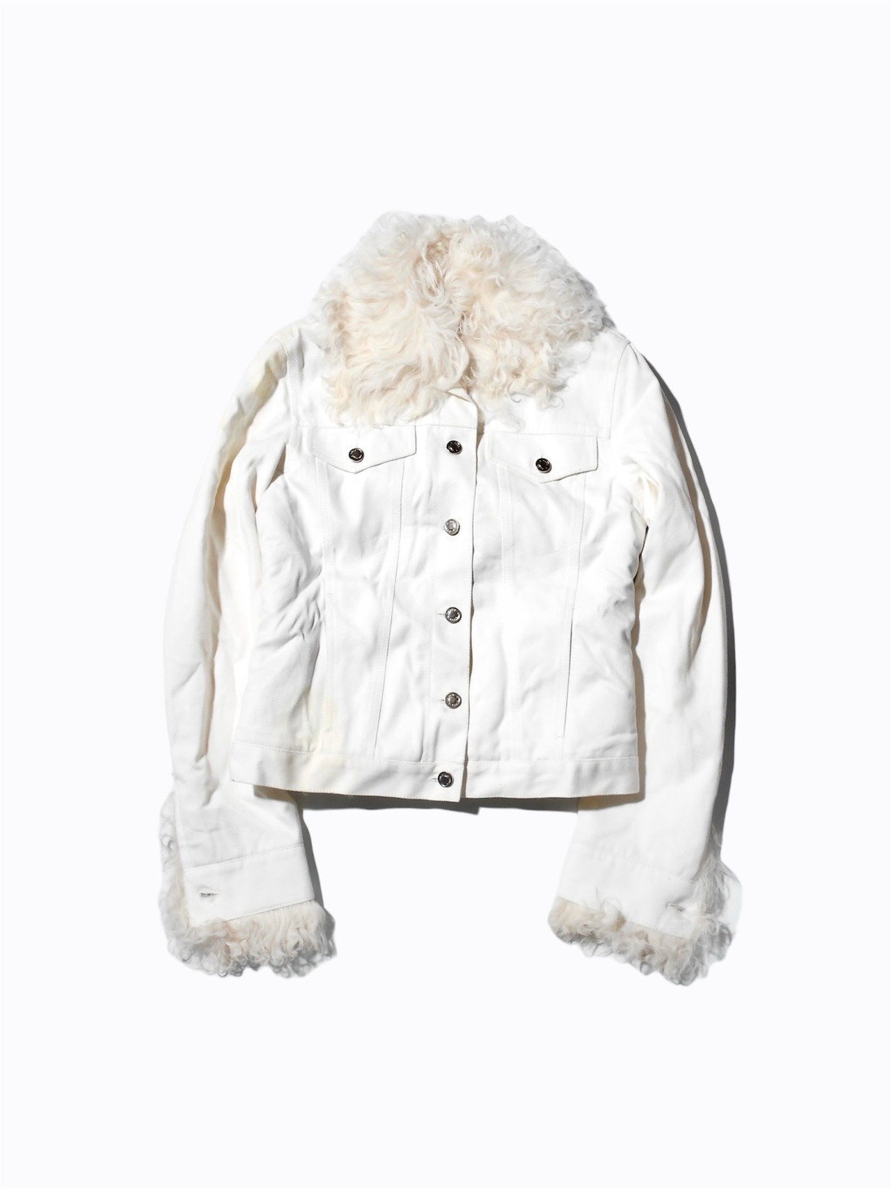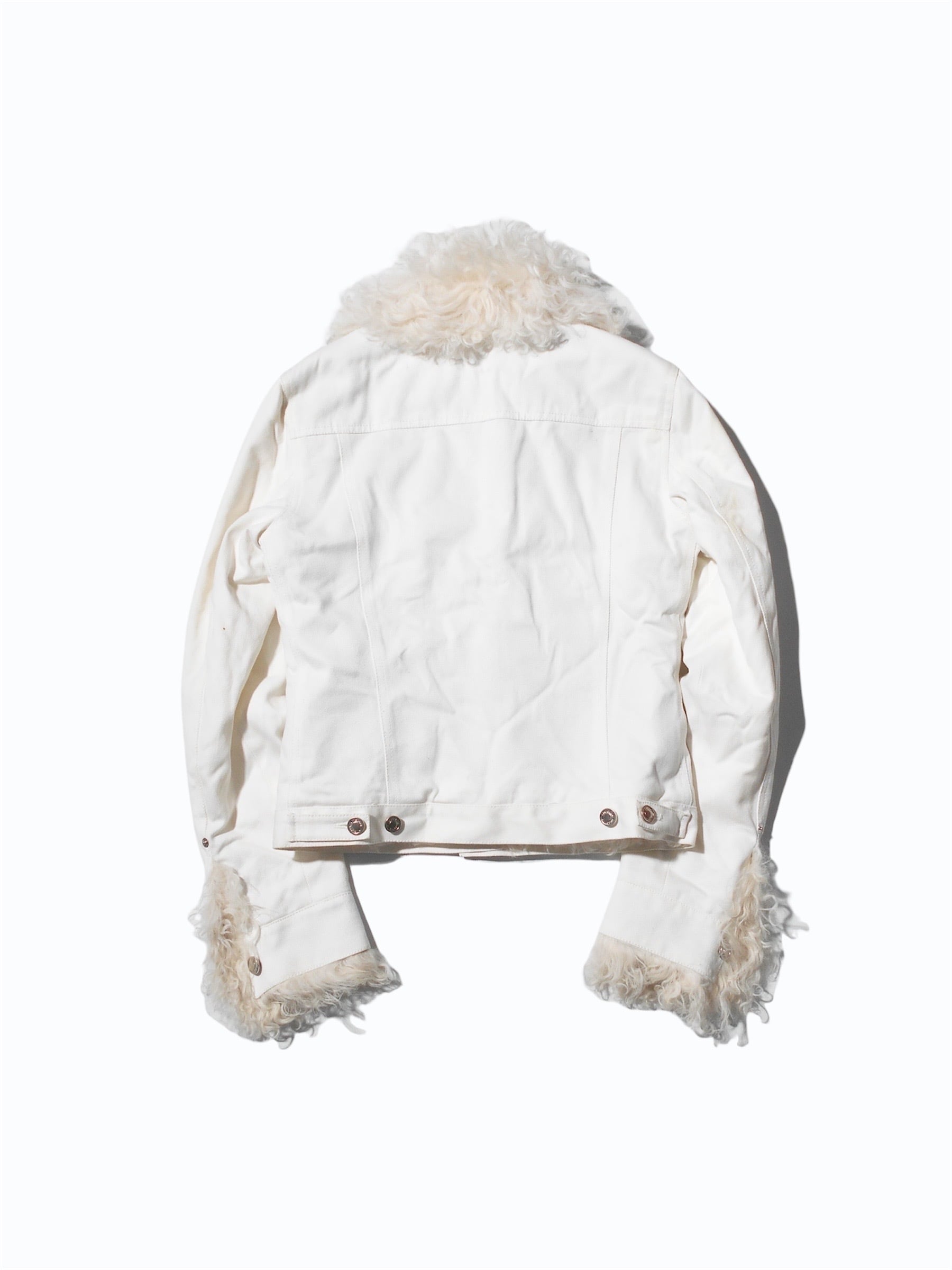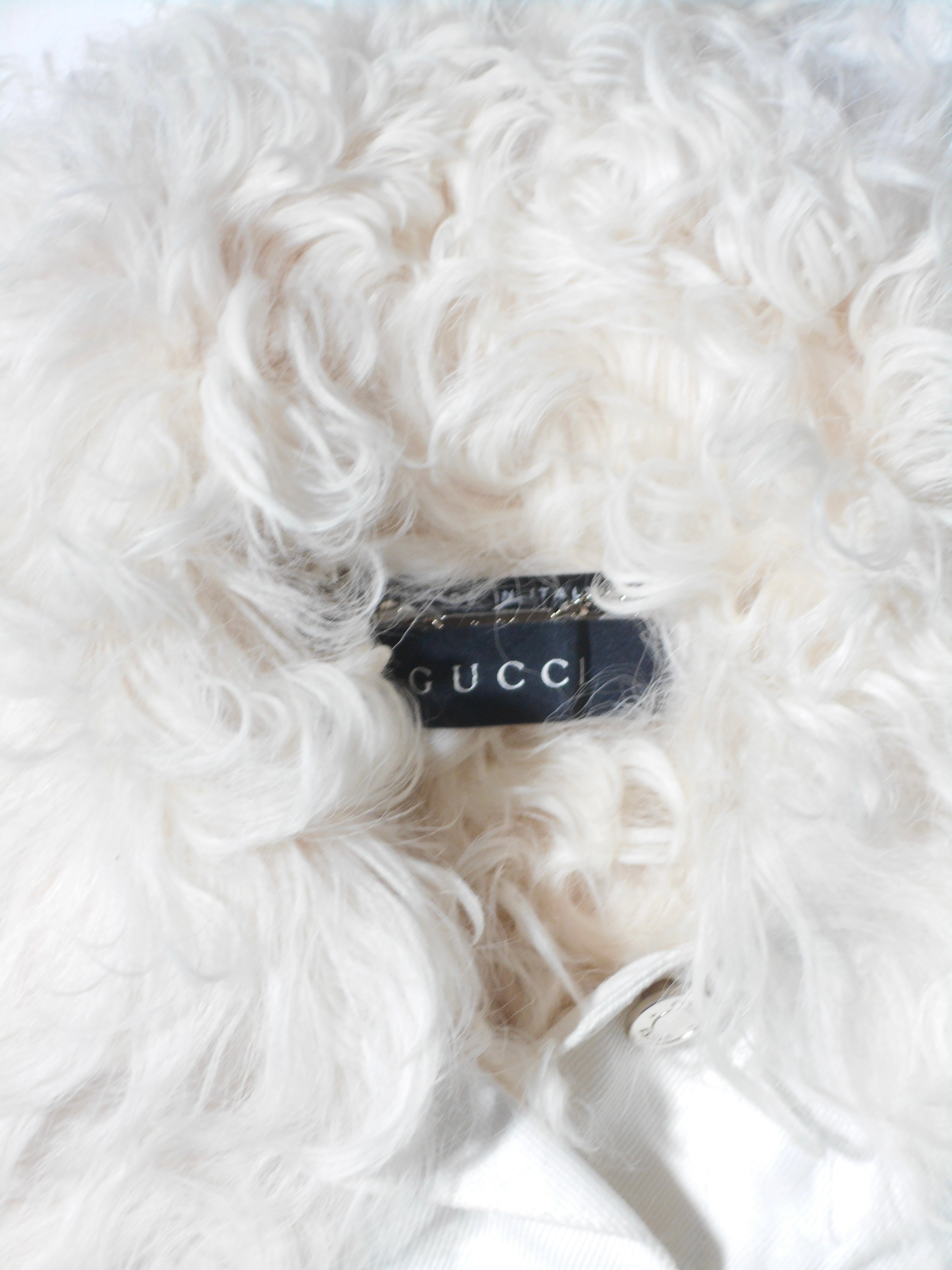 Gucci White Denim Faux Fur Trimmed Tracker Jacket
