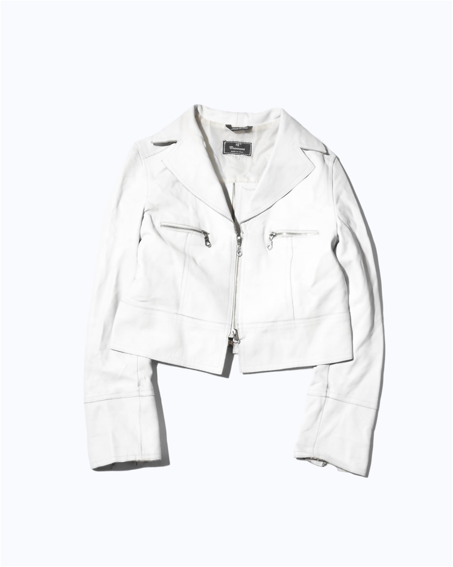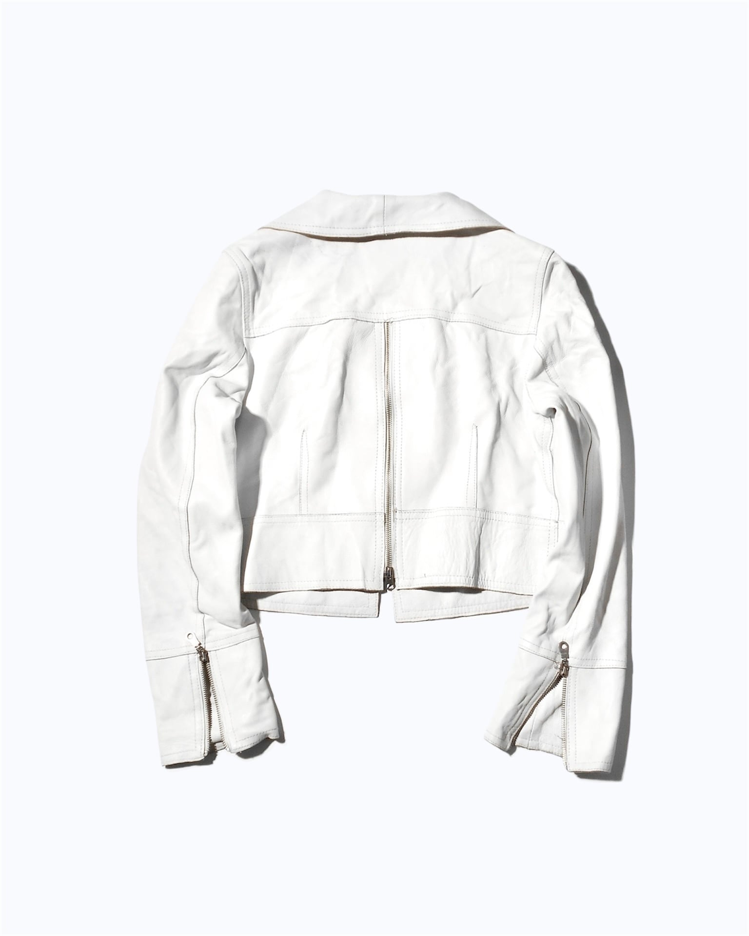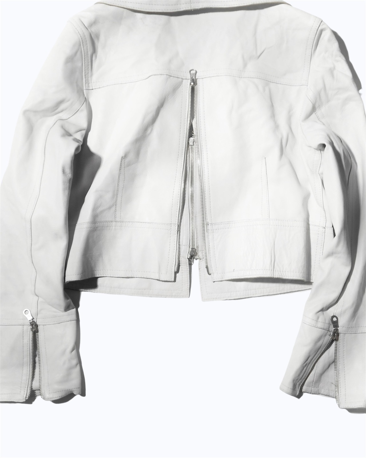 1980-90s Italian Vintage White Leather Double Zip Jacket