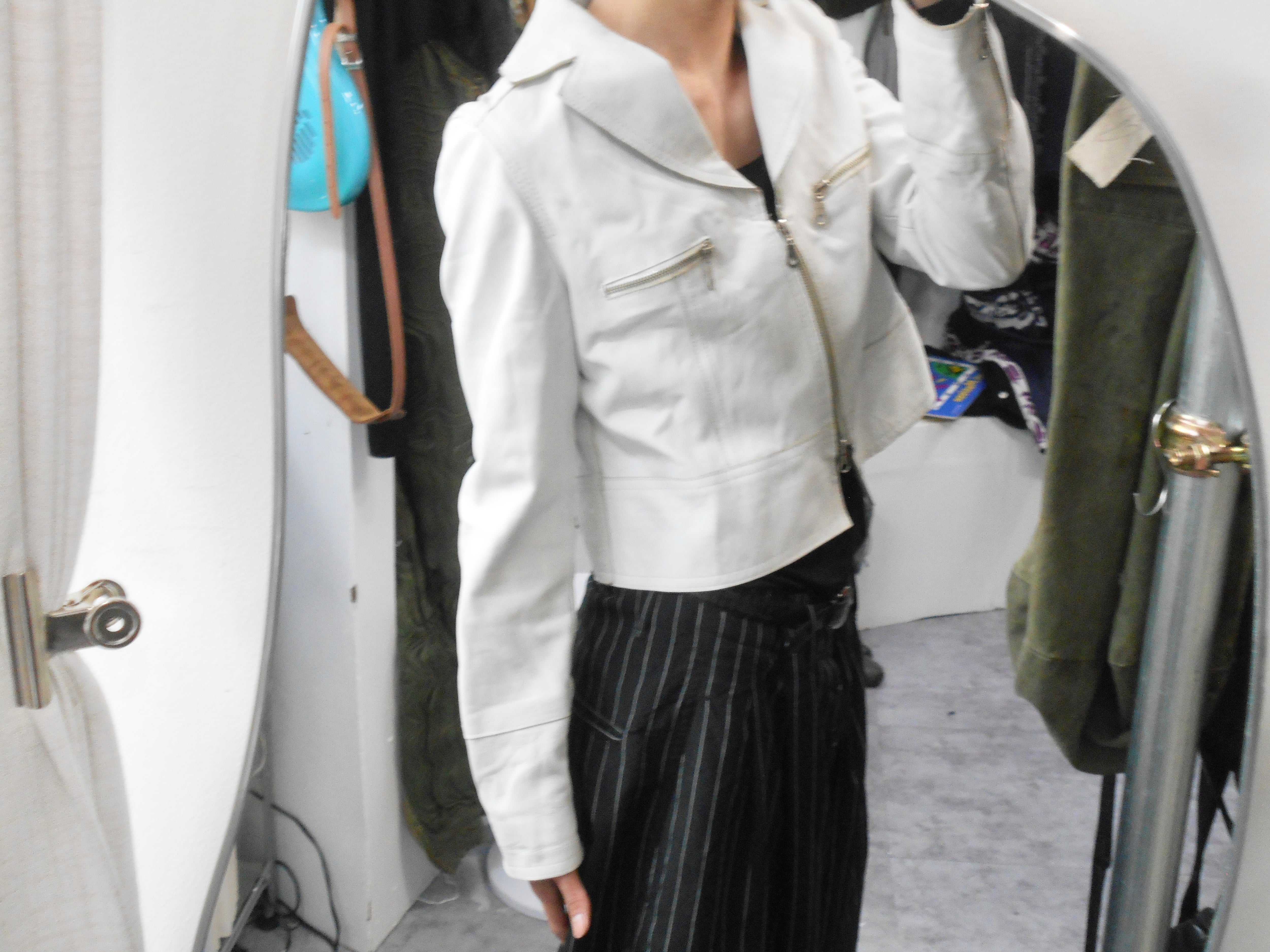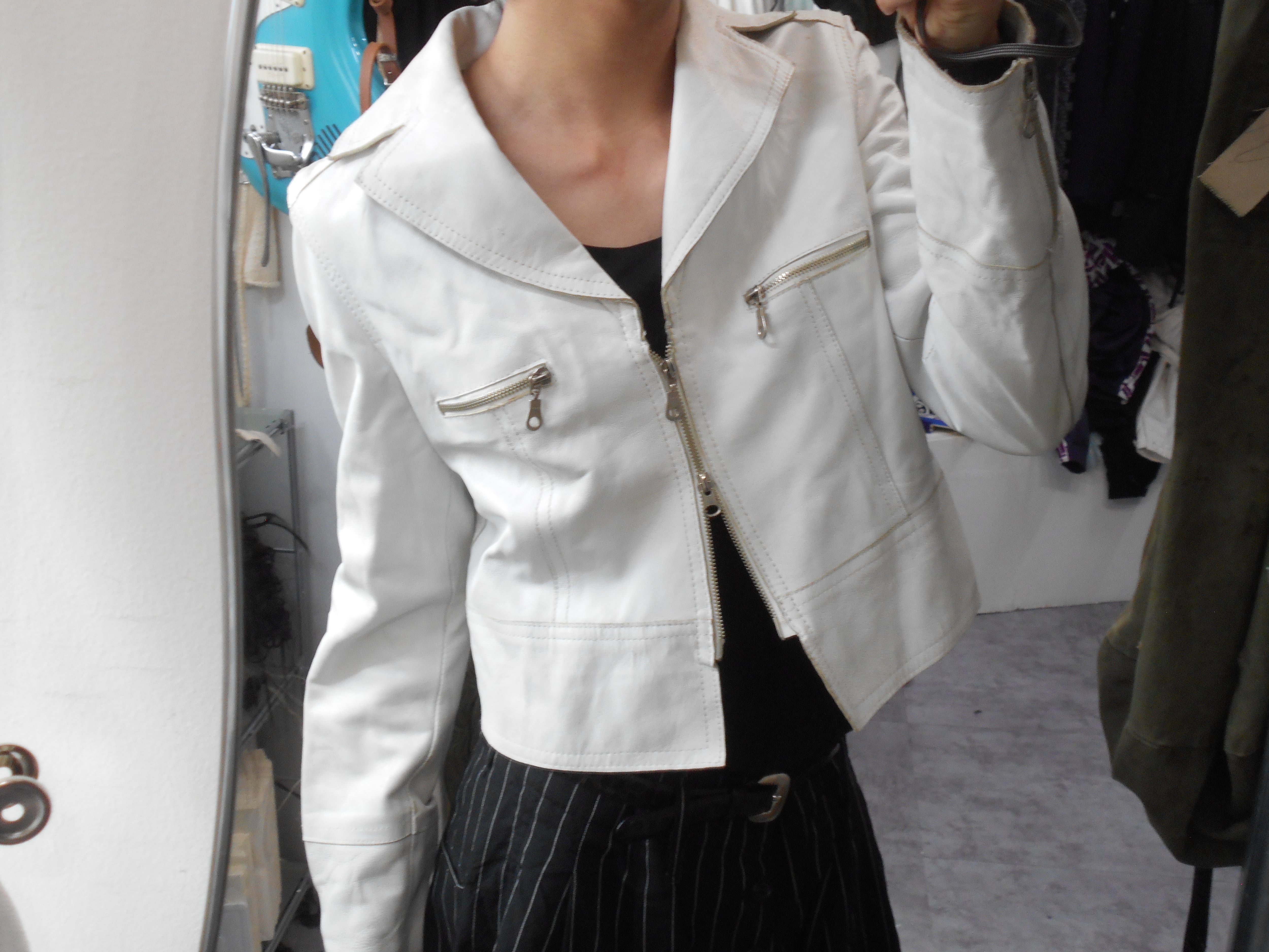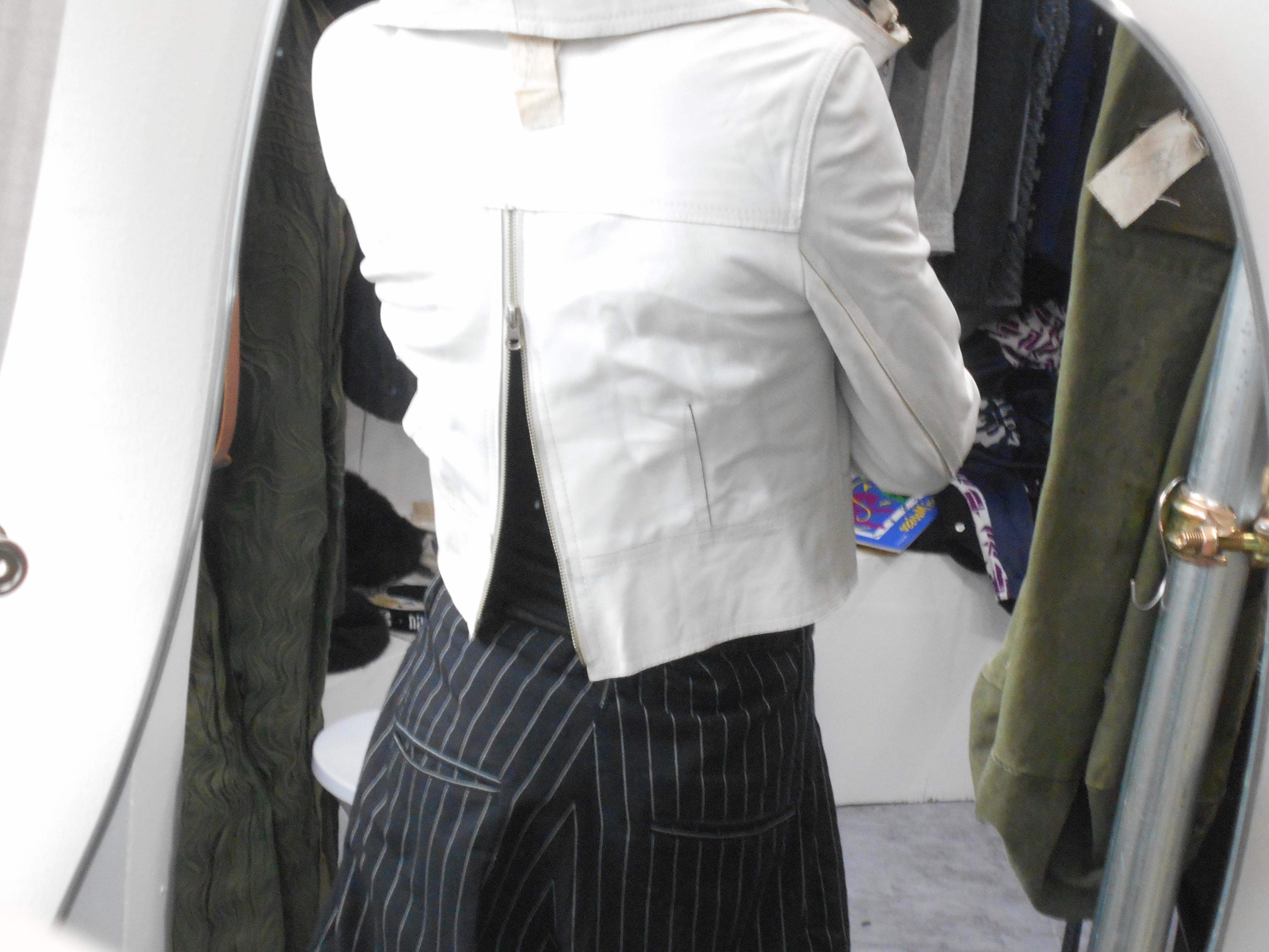 1980-90s Italian Vintage White Leather Double Zip Jacket