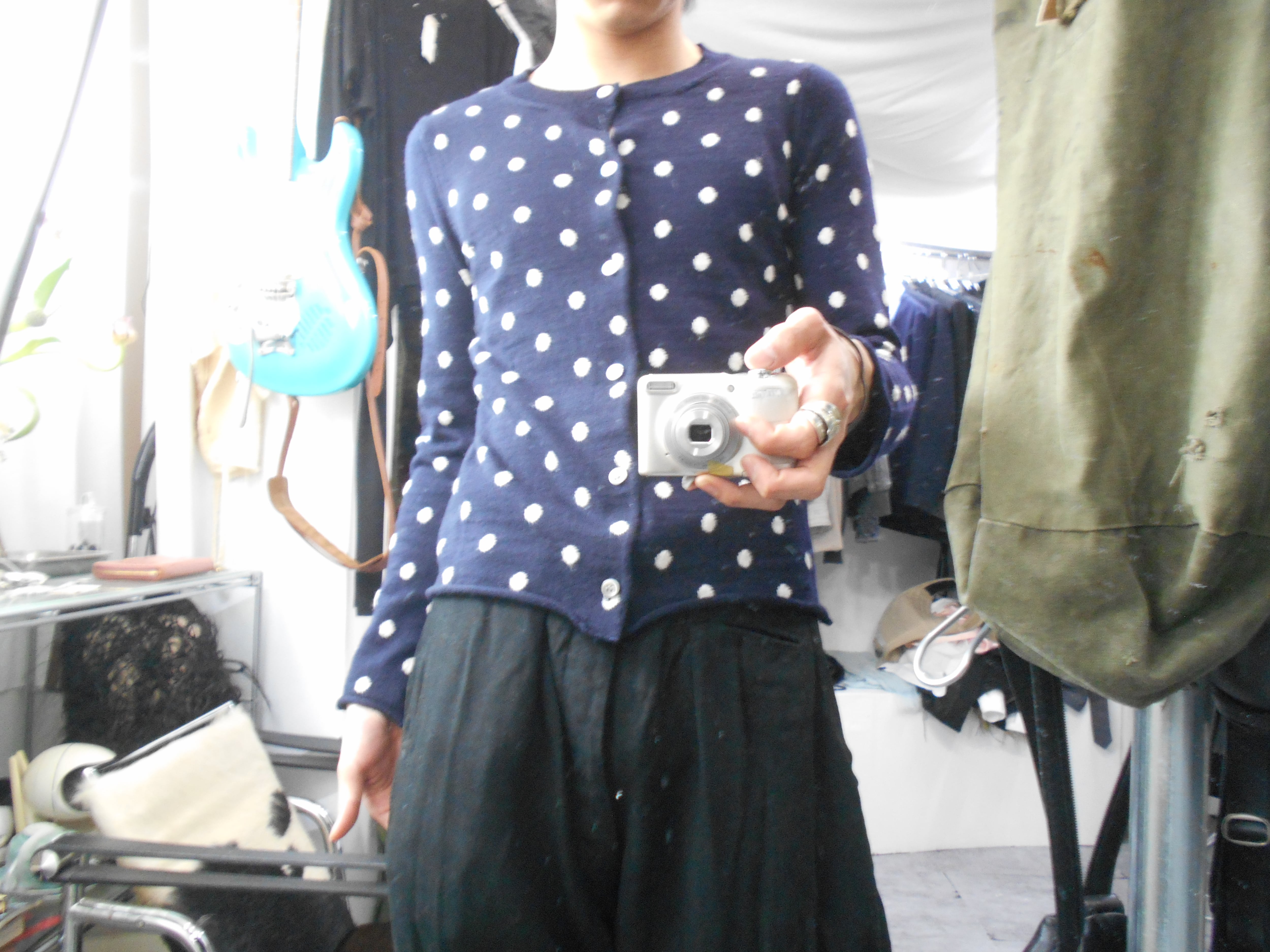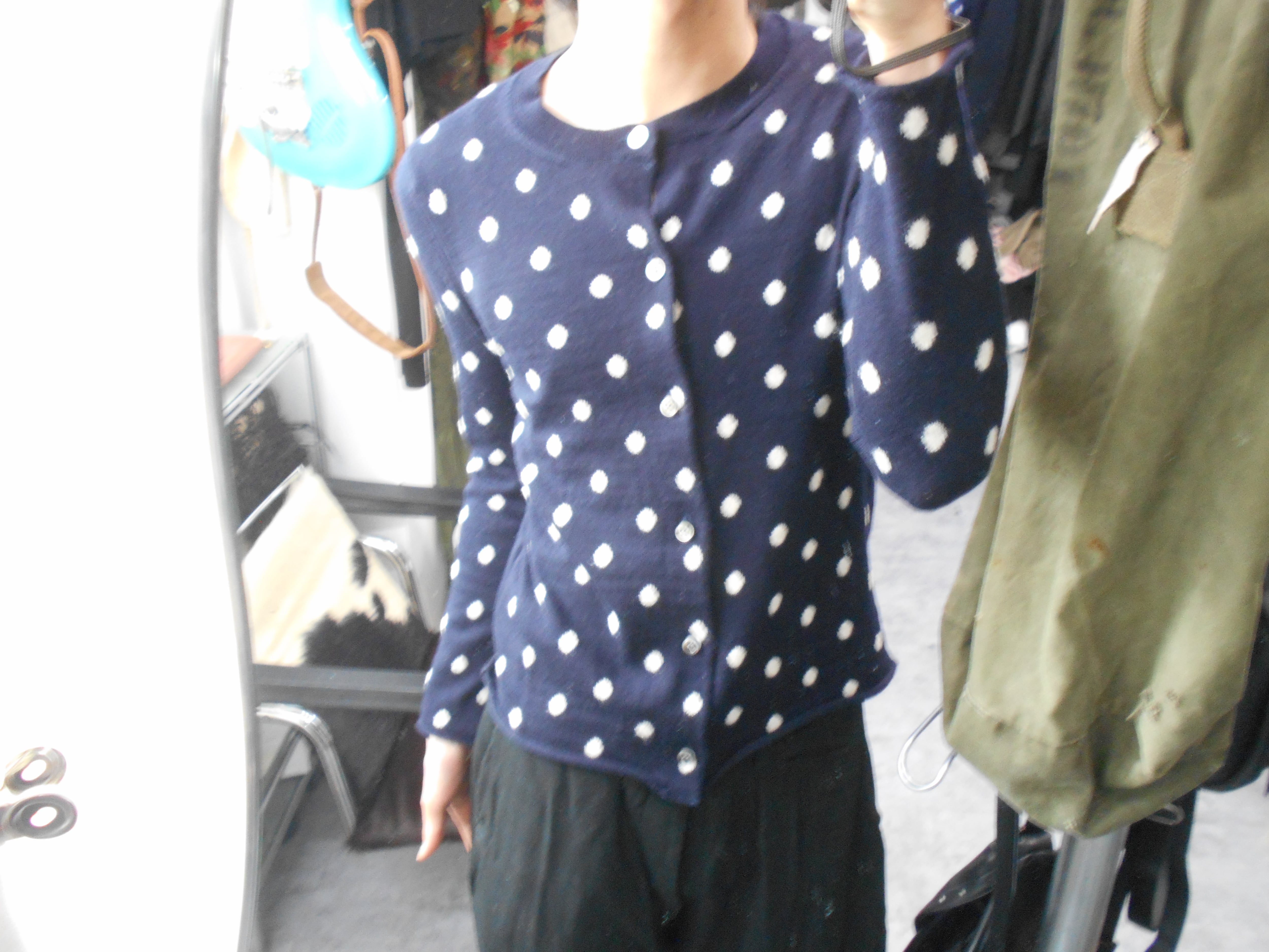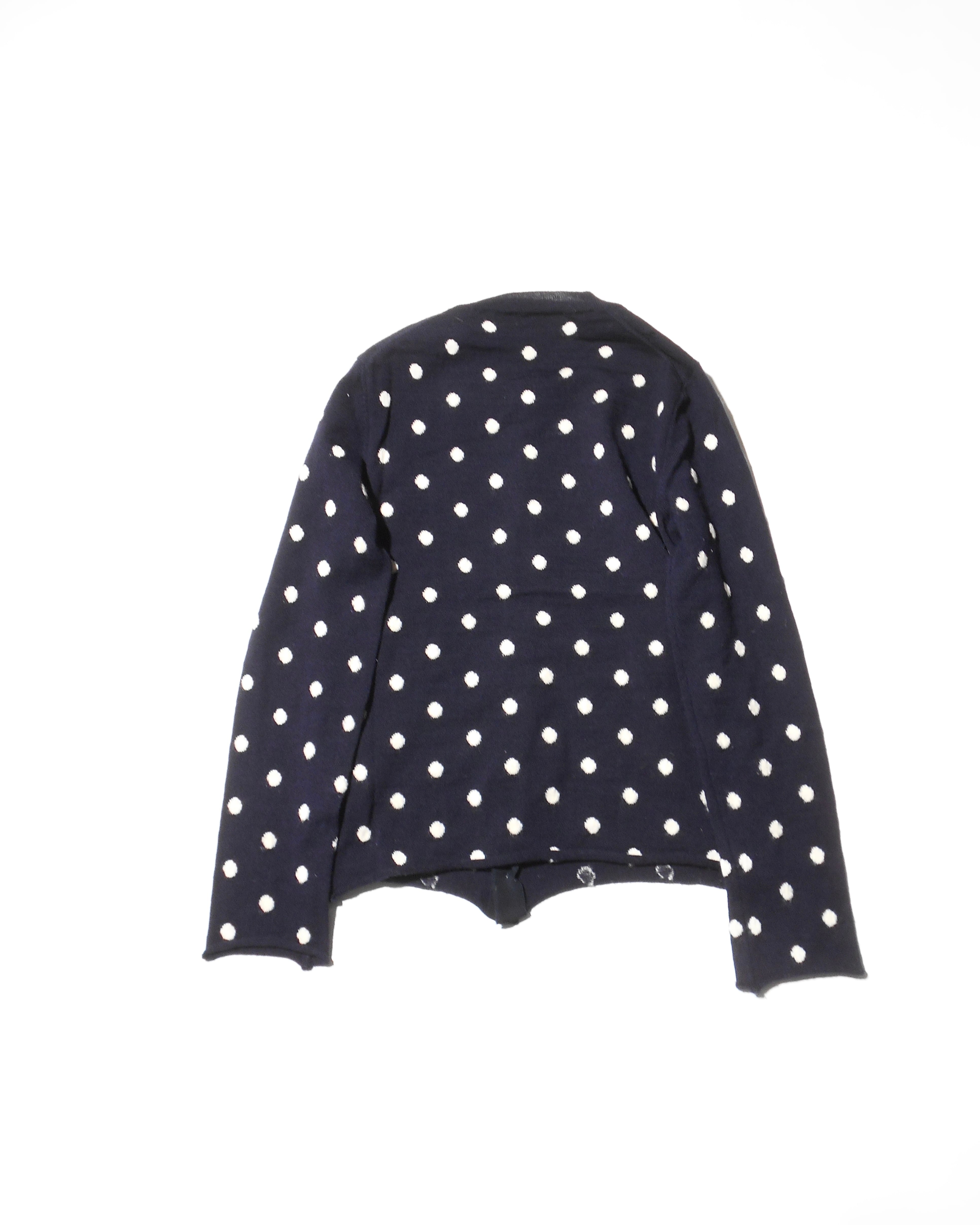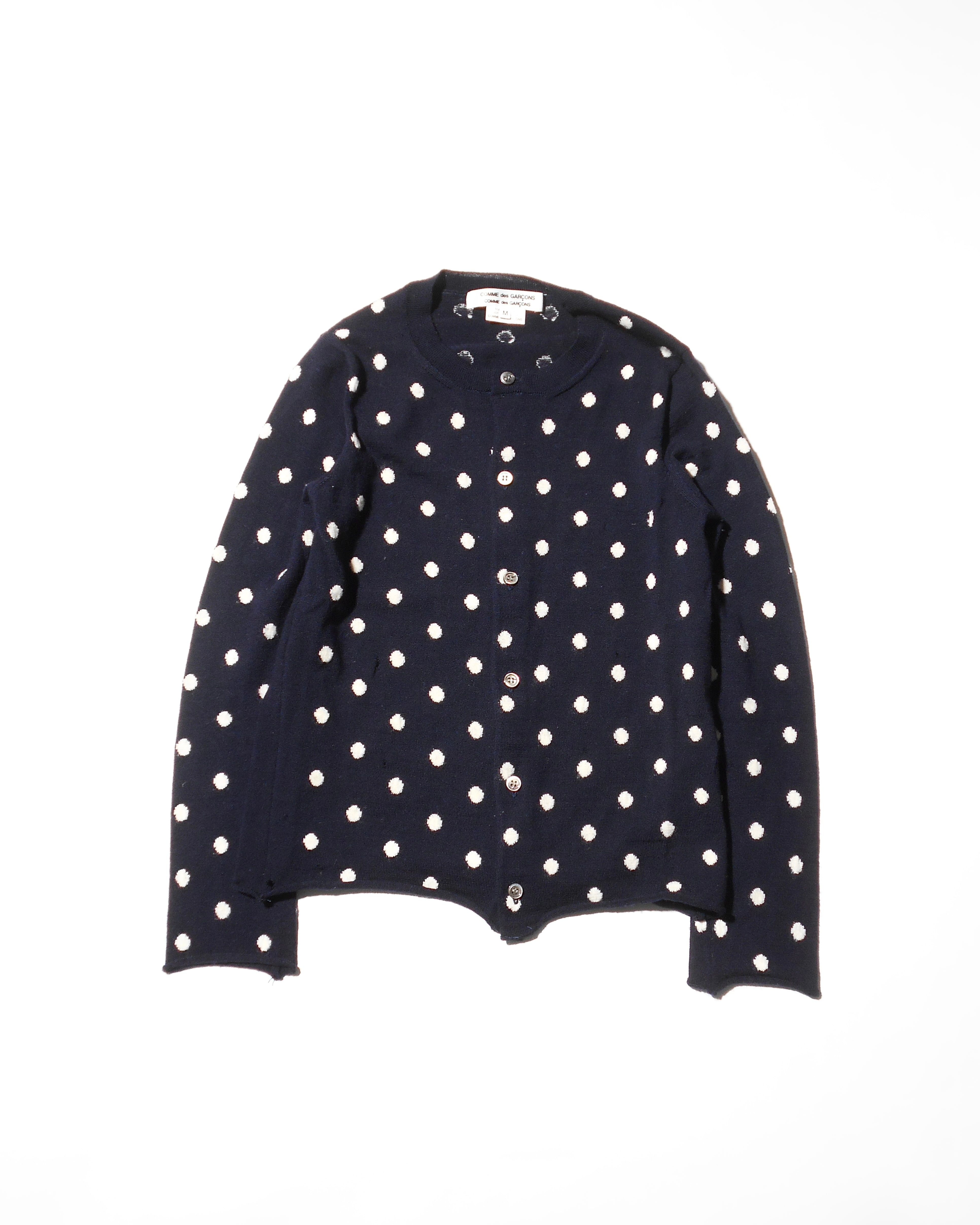 AD2008 Comme des Garçons Comme des Garçons Navy Wool White Polkadots Round Collar Cardigan