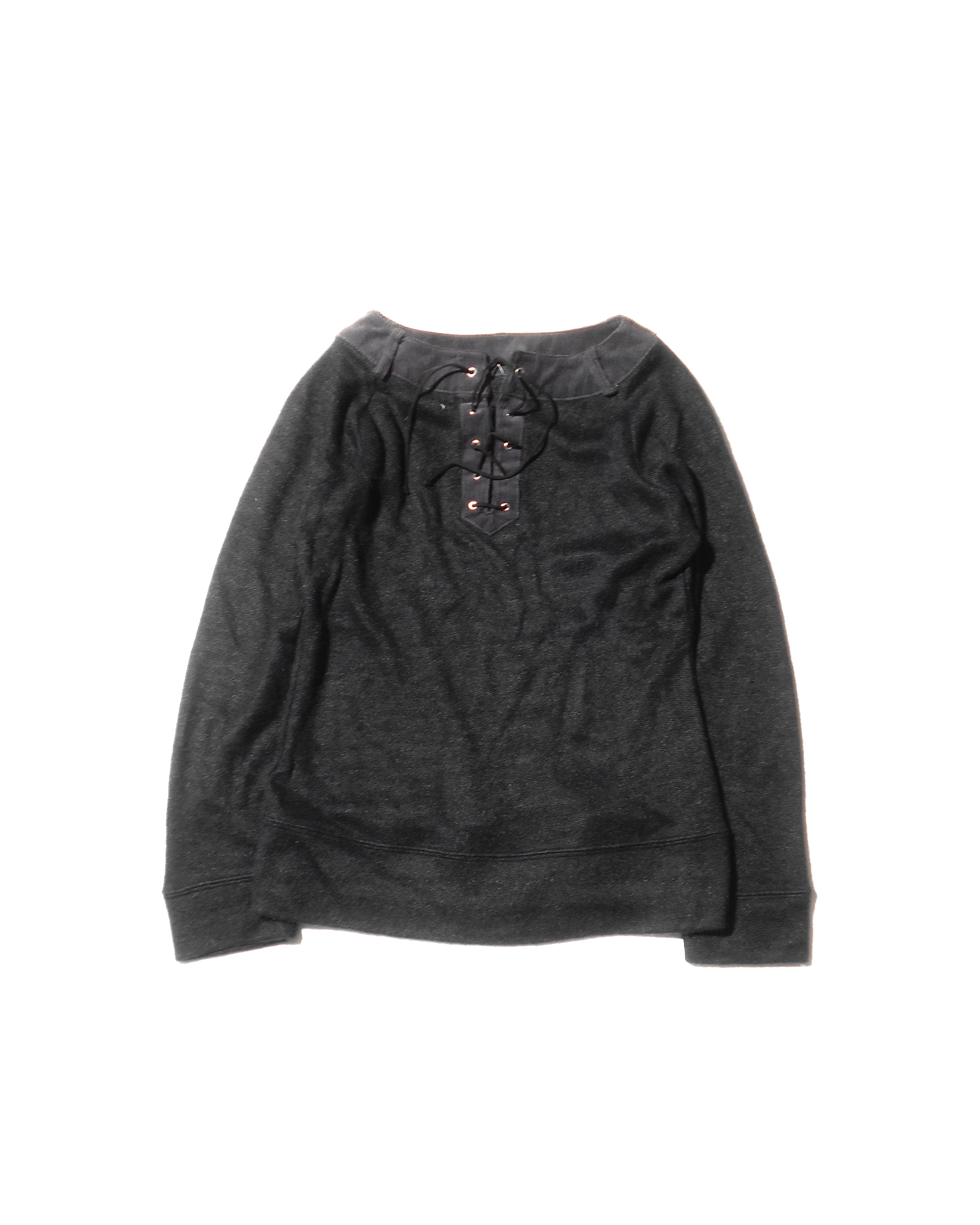 1990s Vintage Laced-up Neck Black Knitted Sweater
