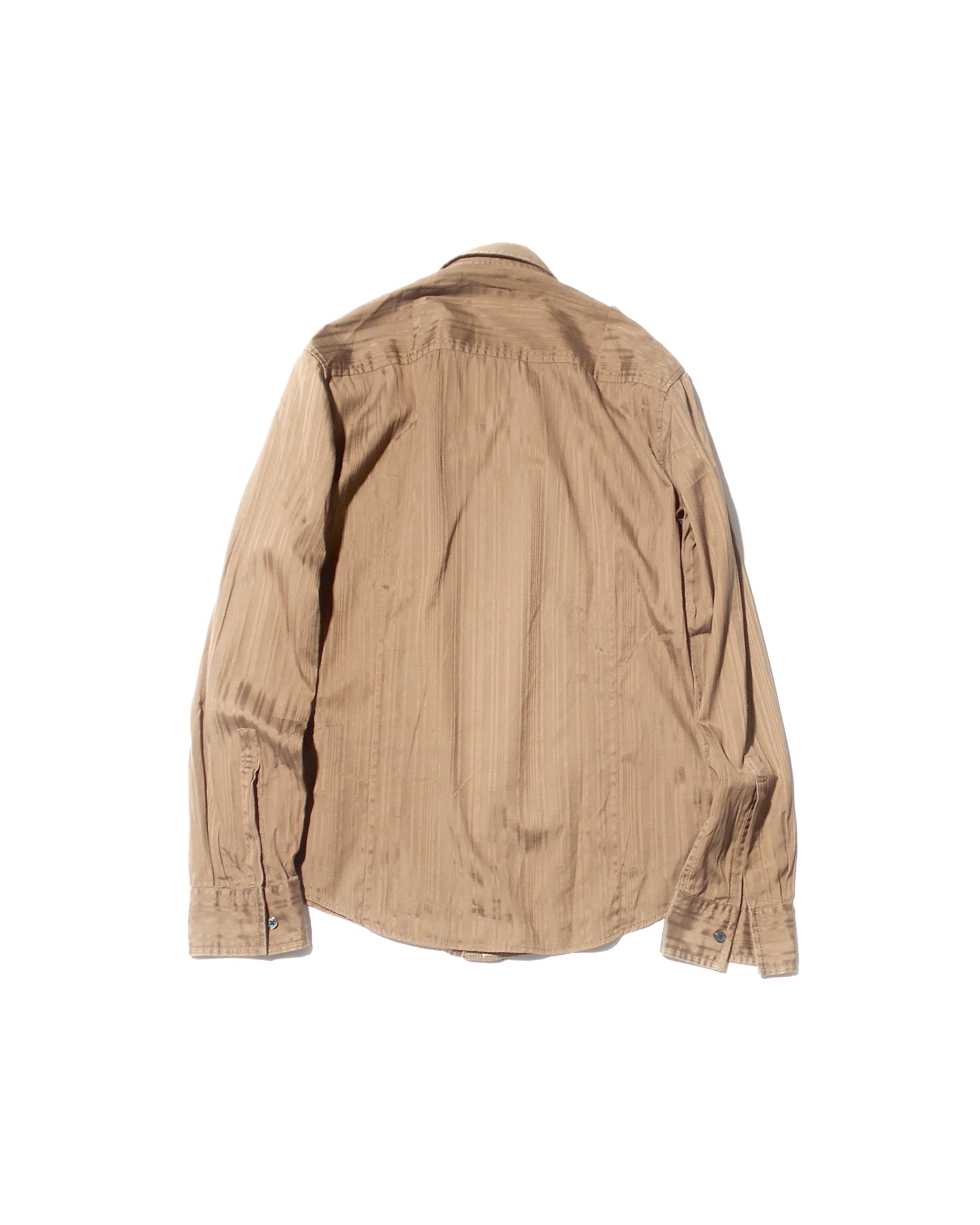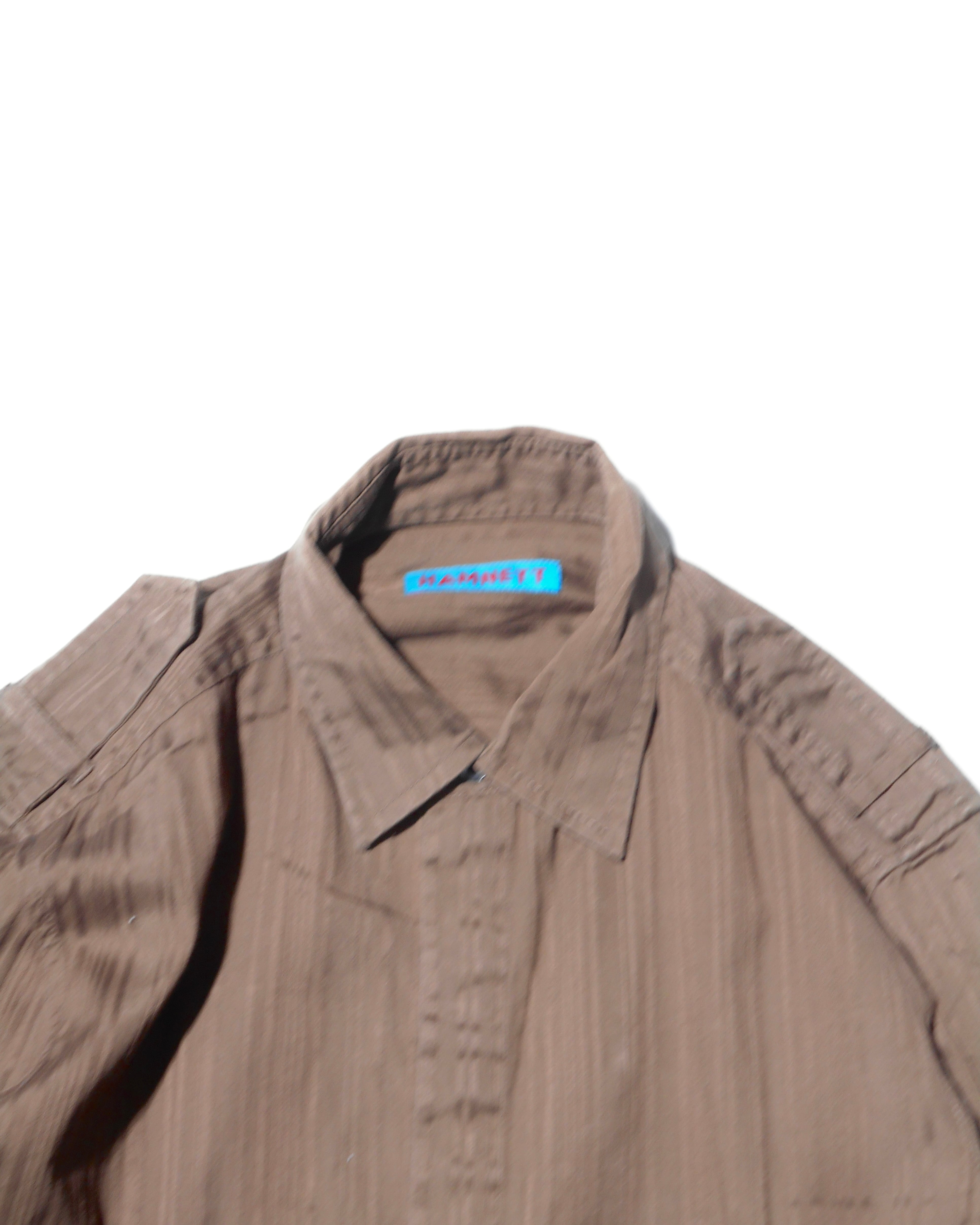 2000s Katherine Hamnet London Multiple Hooked Brown Striped Epaulet Fly Front Shirt