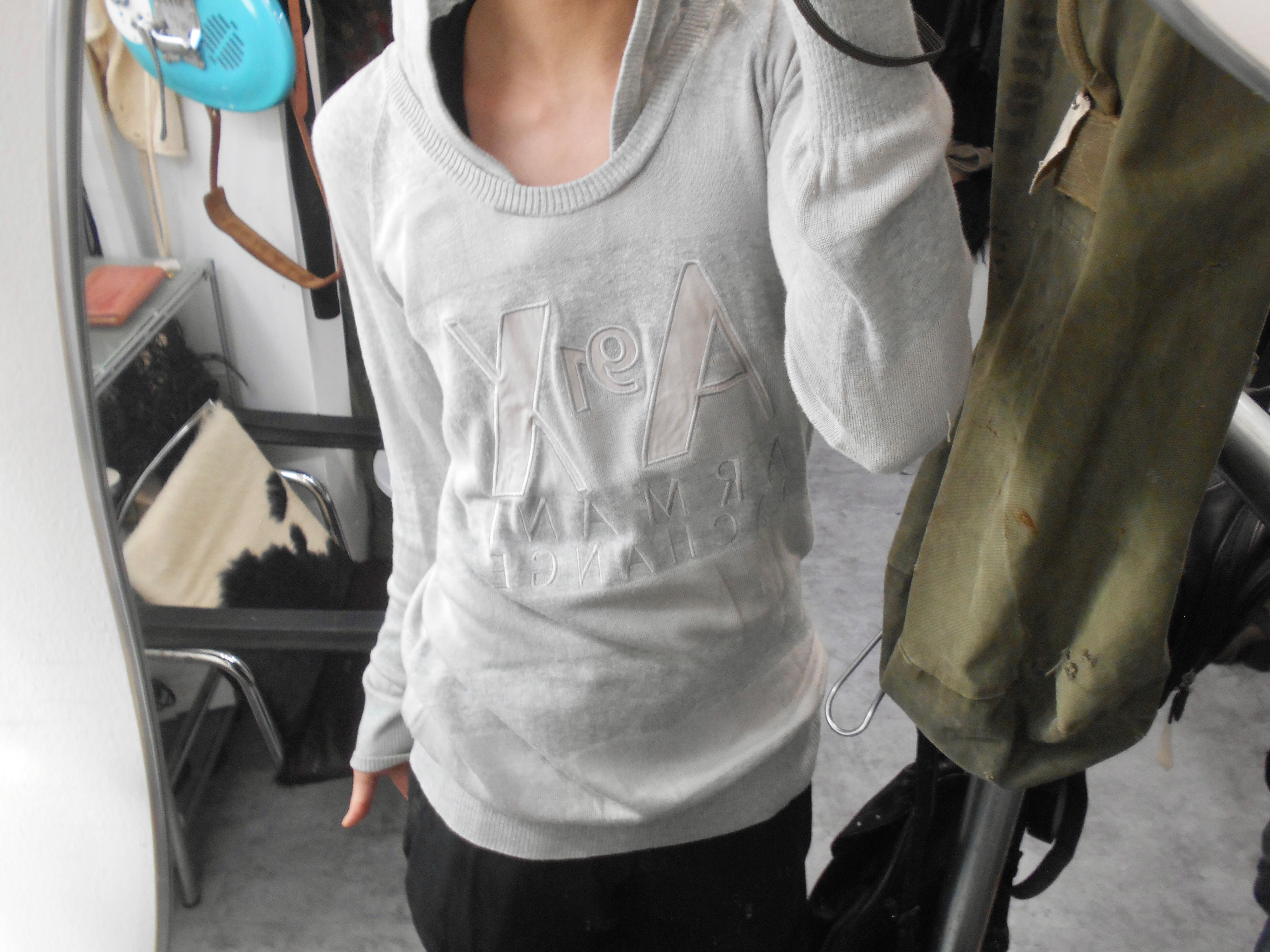 1990s Armani Exchange Light Striped Light Gray Hoodie