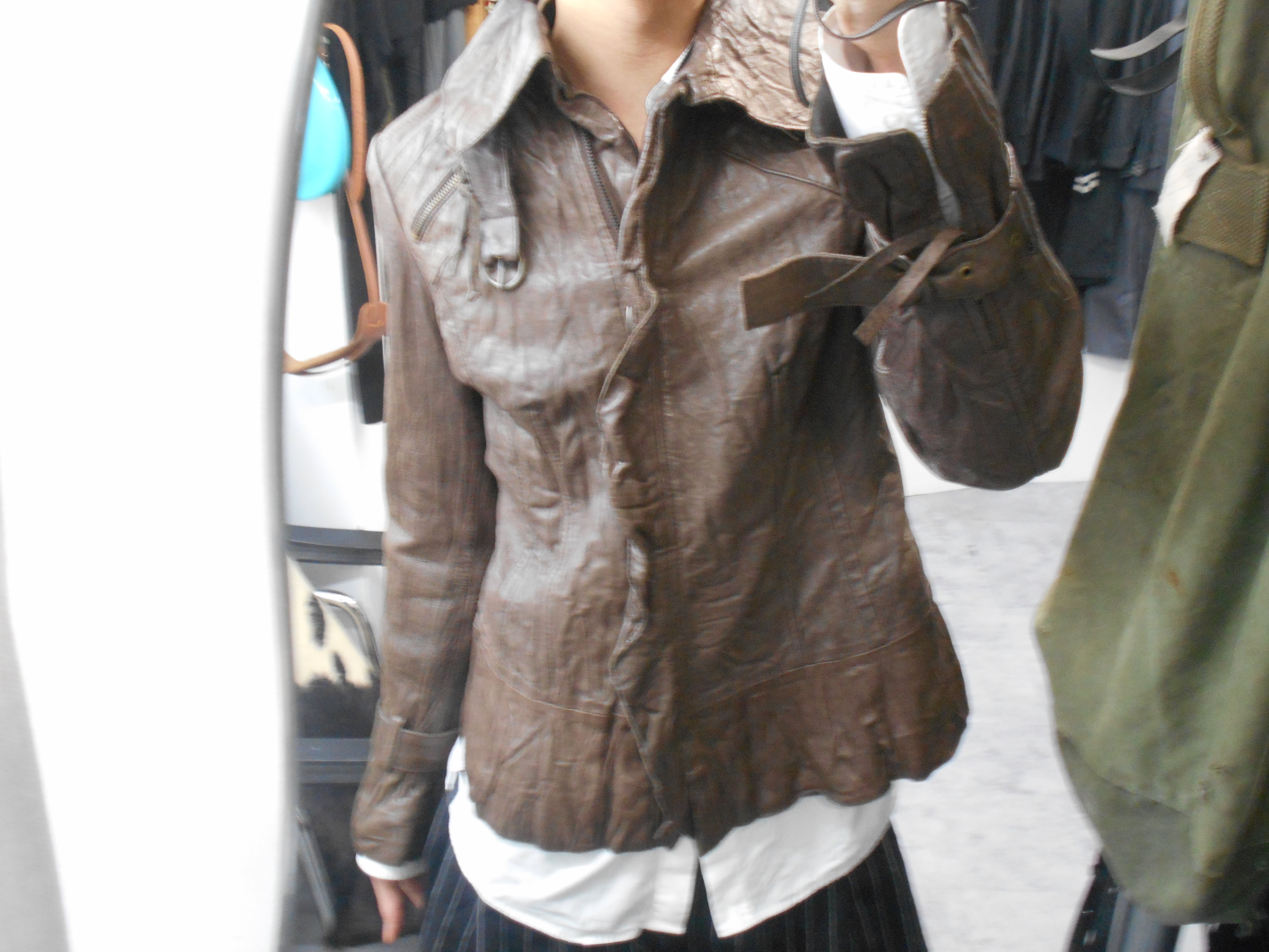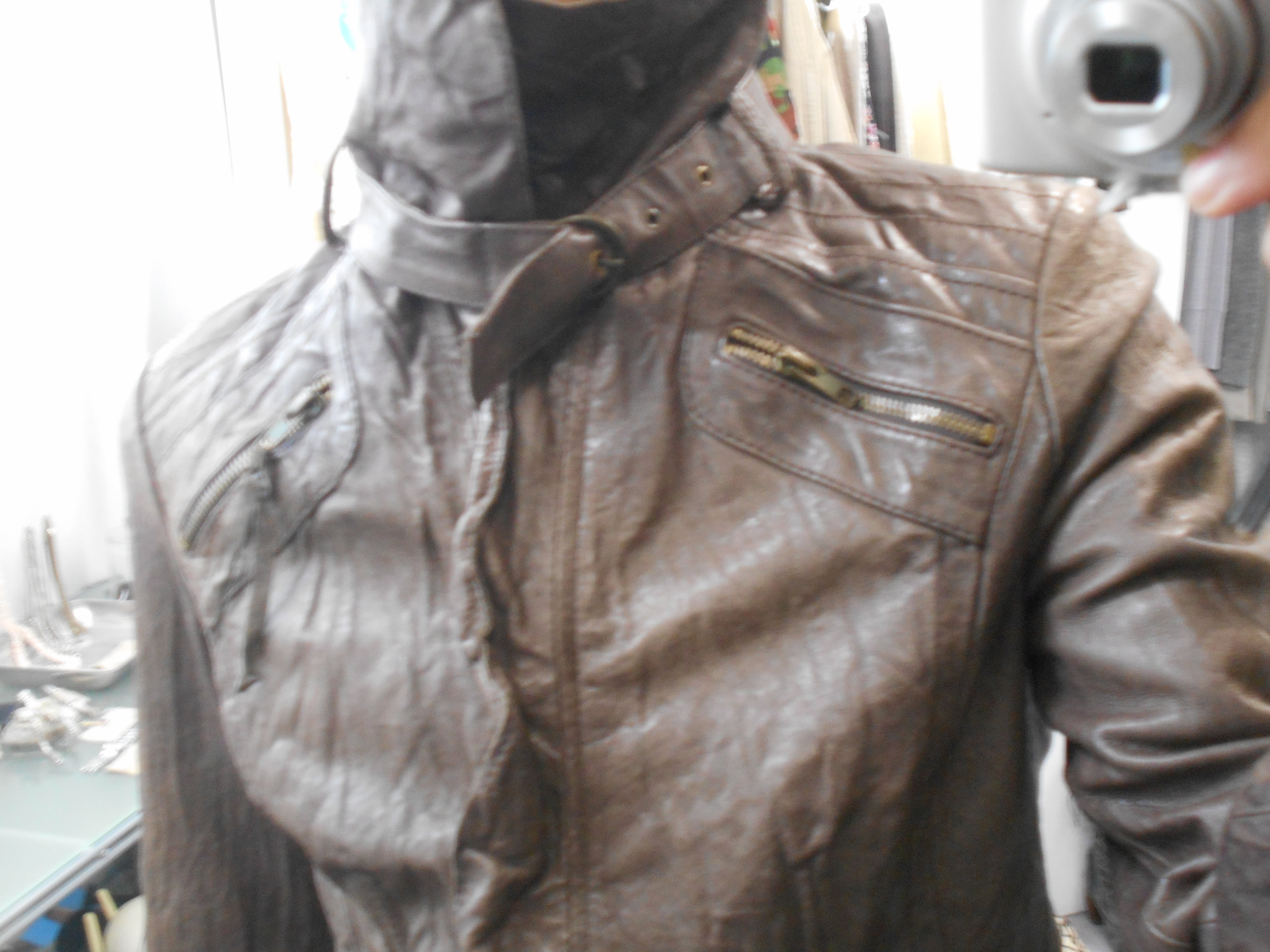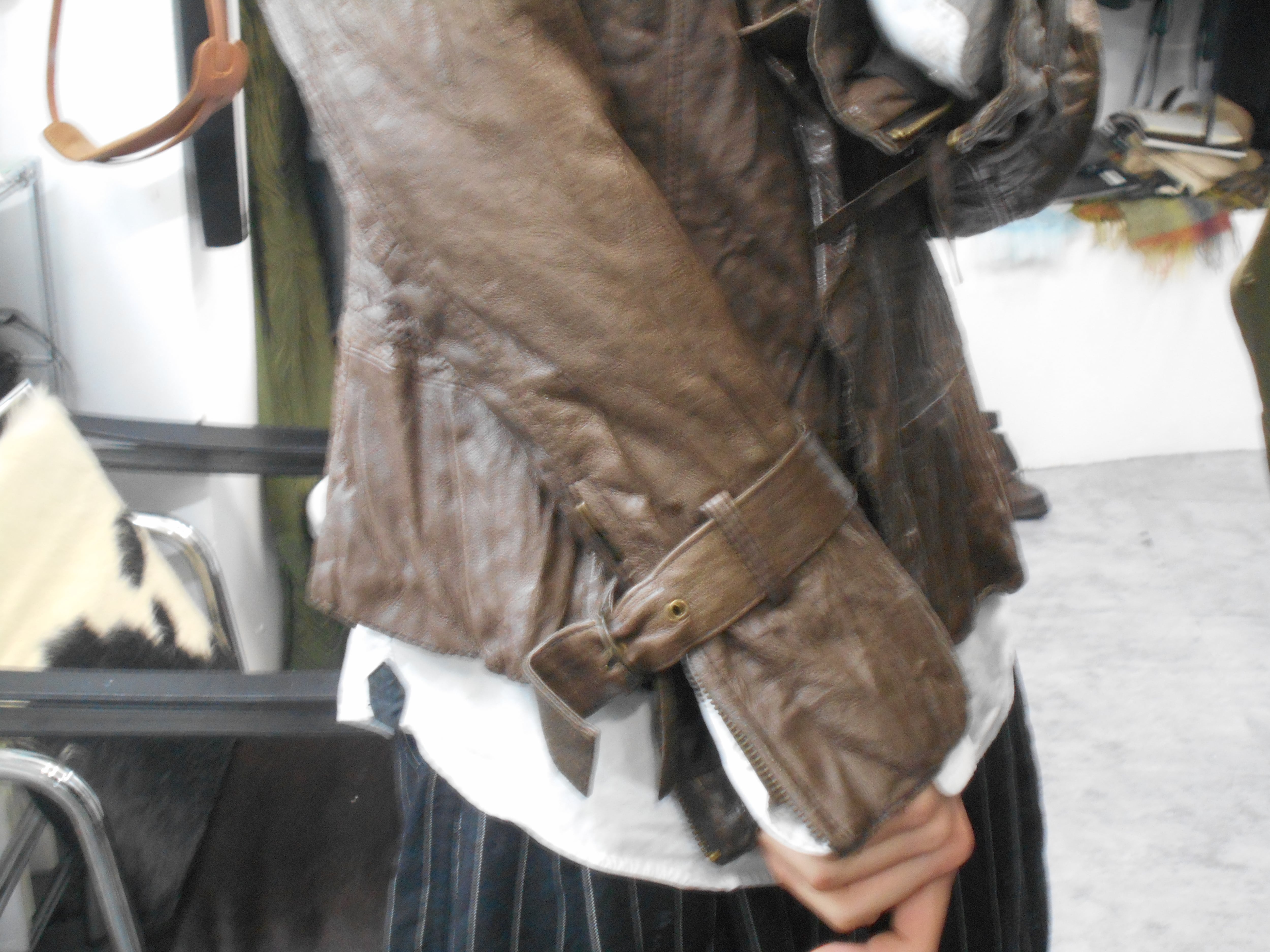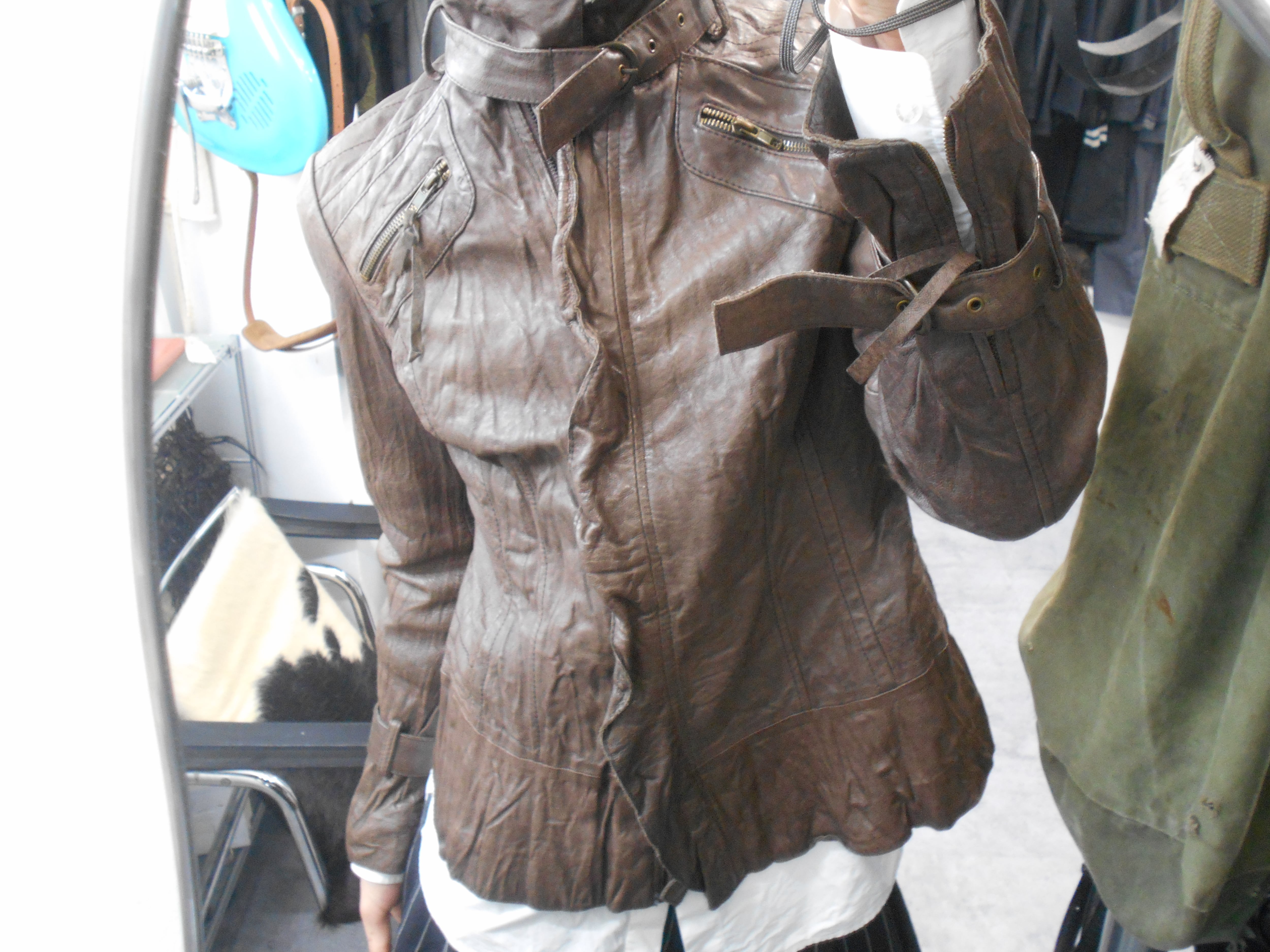 1990s Italian Vintage Faded Dark Brown Wrinkled Leather Jacket w/Chin Strap&Belts