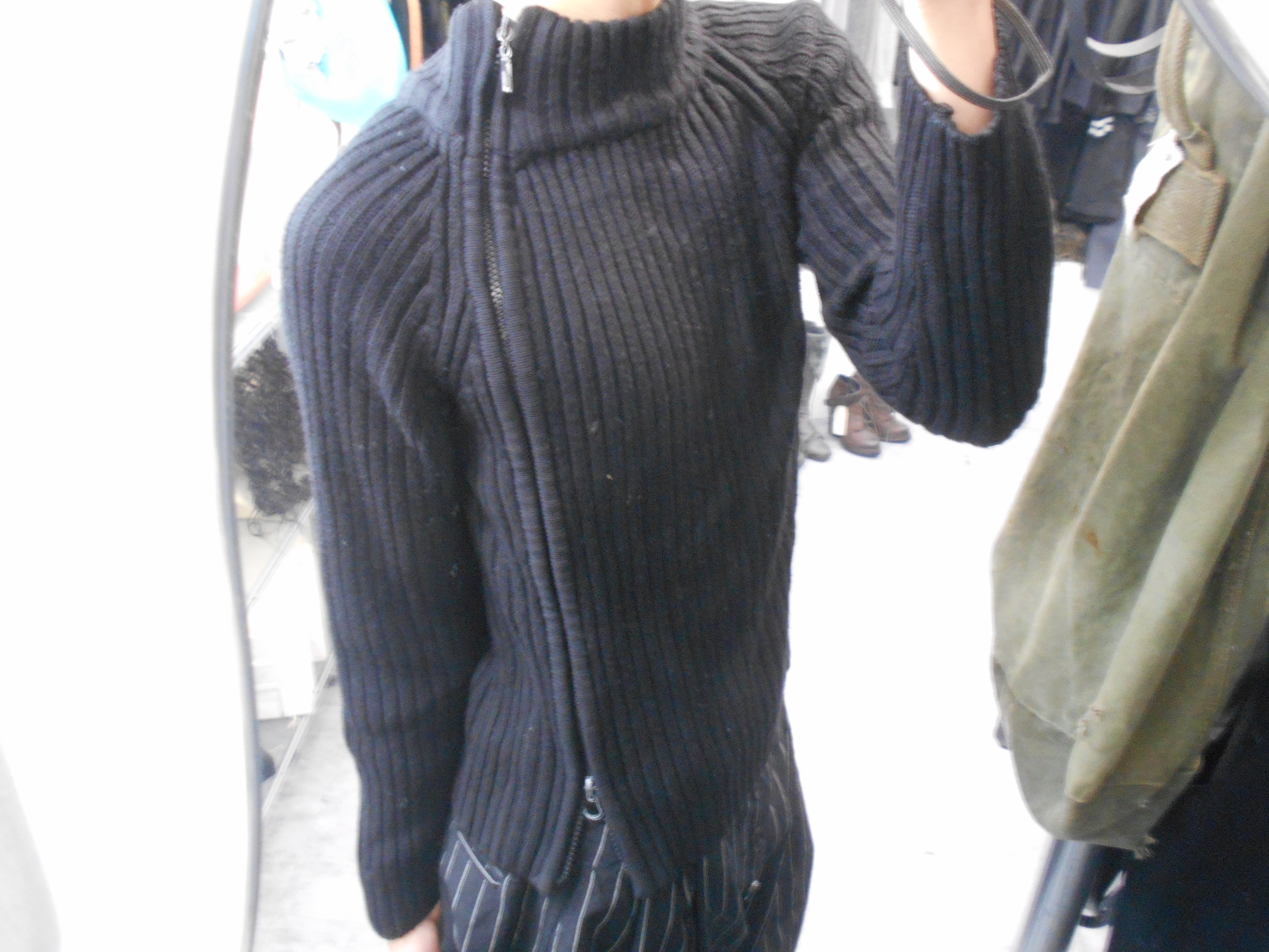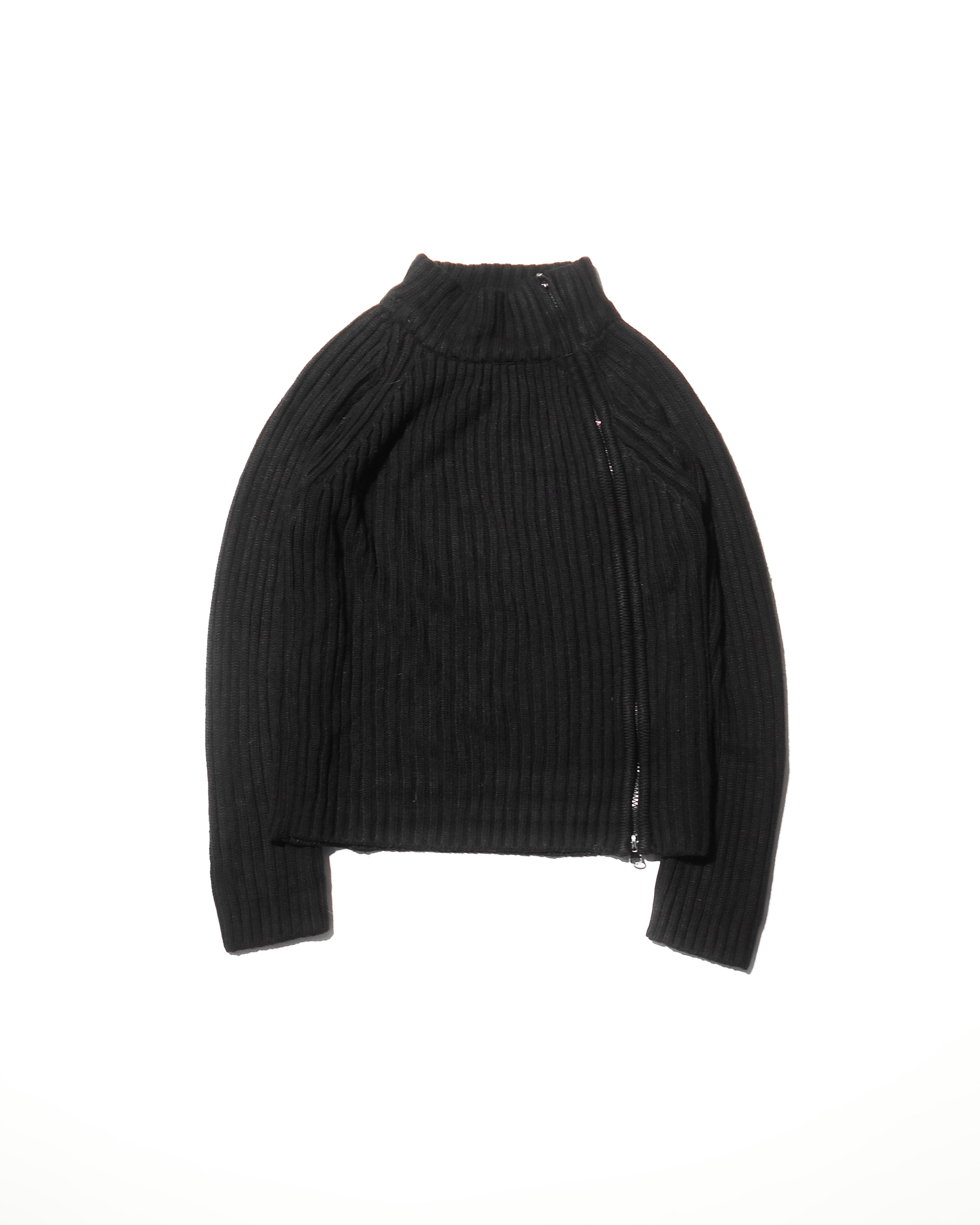 1990s Euro Vintage Side Double Zipper Rib Knitted Drivers Sweater