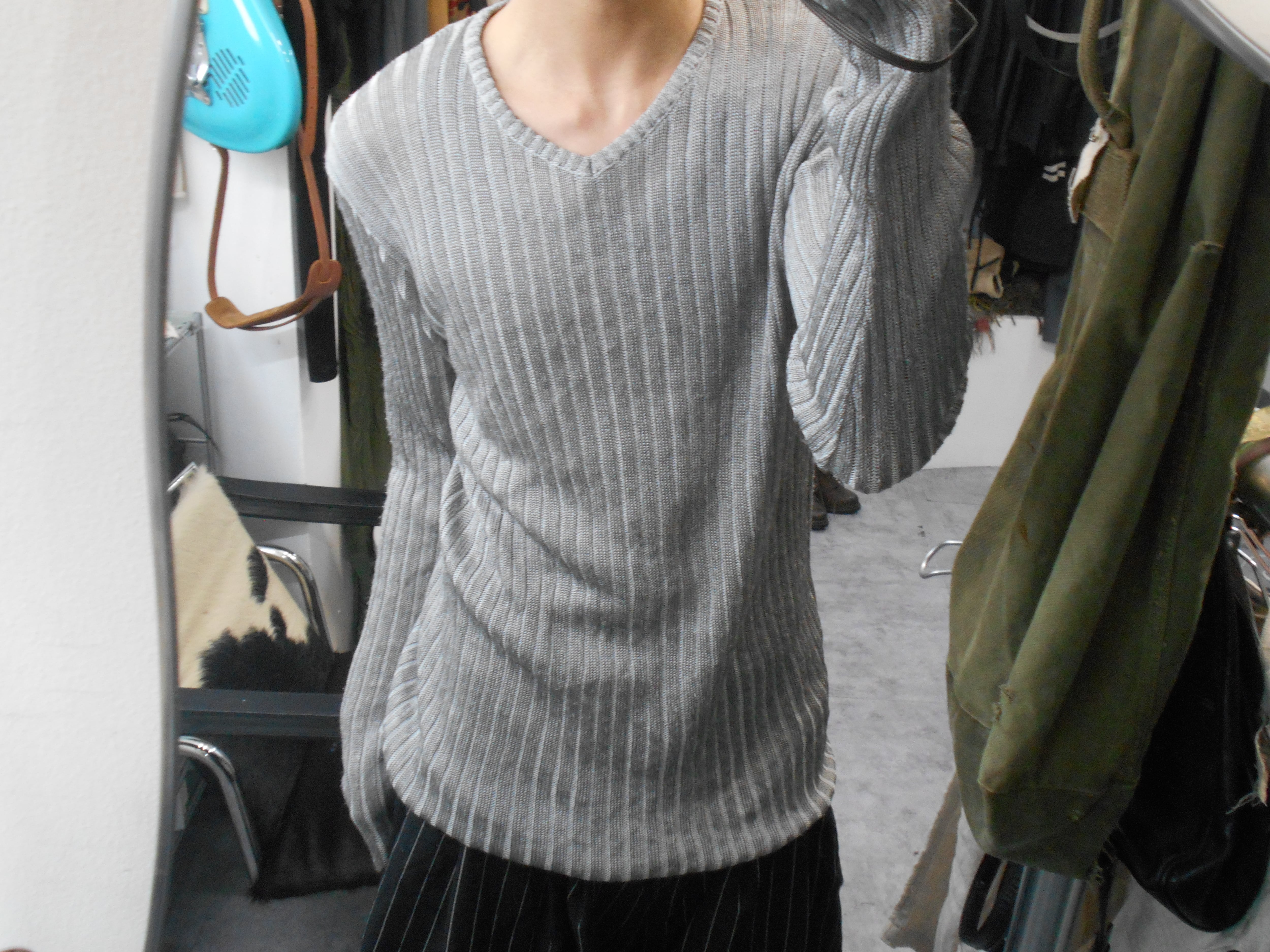 2000s Italian Vintage Gray Sheer Rib Knitted Sweater