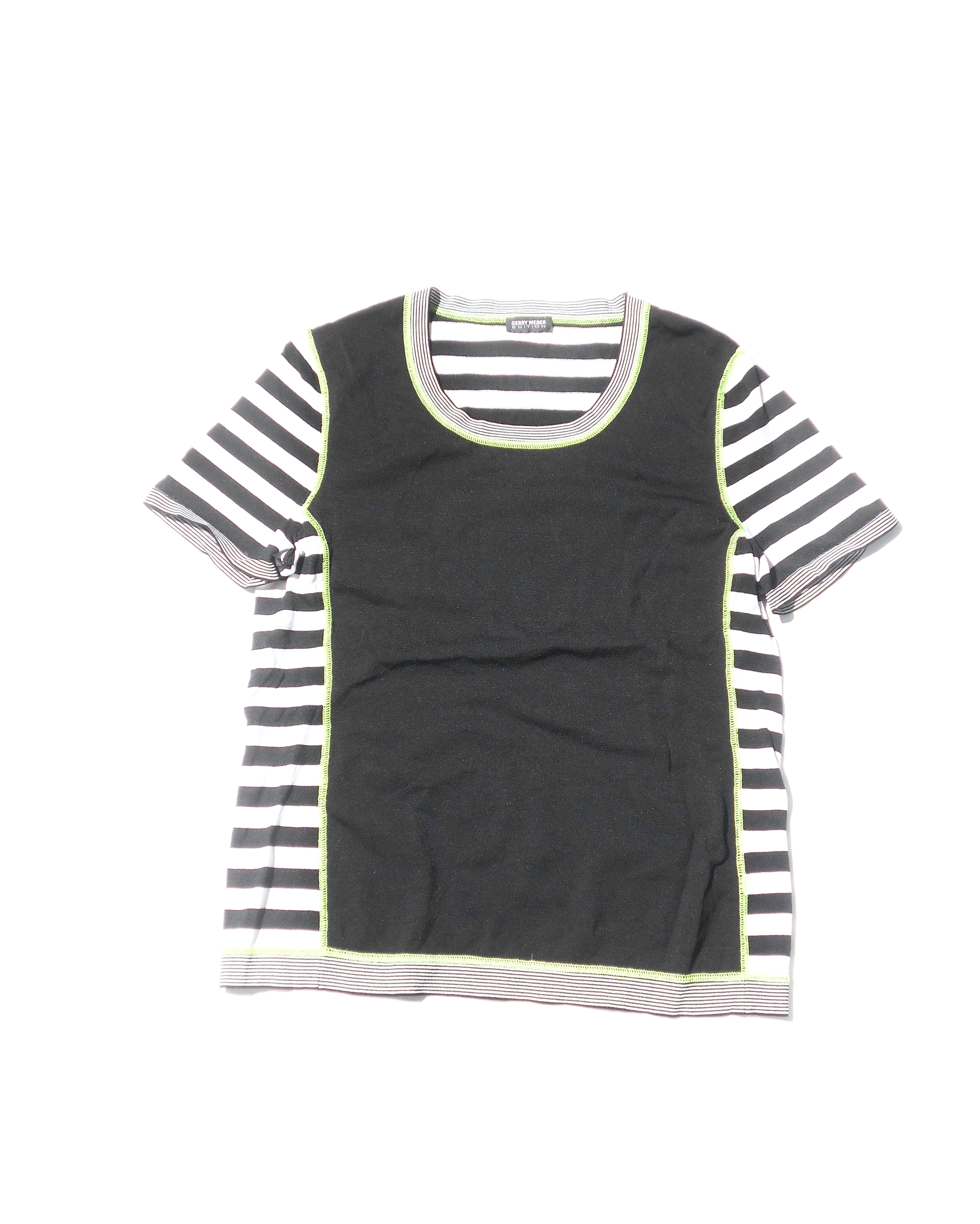 1990s Euro Vintage Paneled Border & Yellow Stitching T Shirt