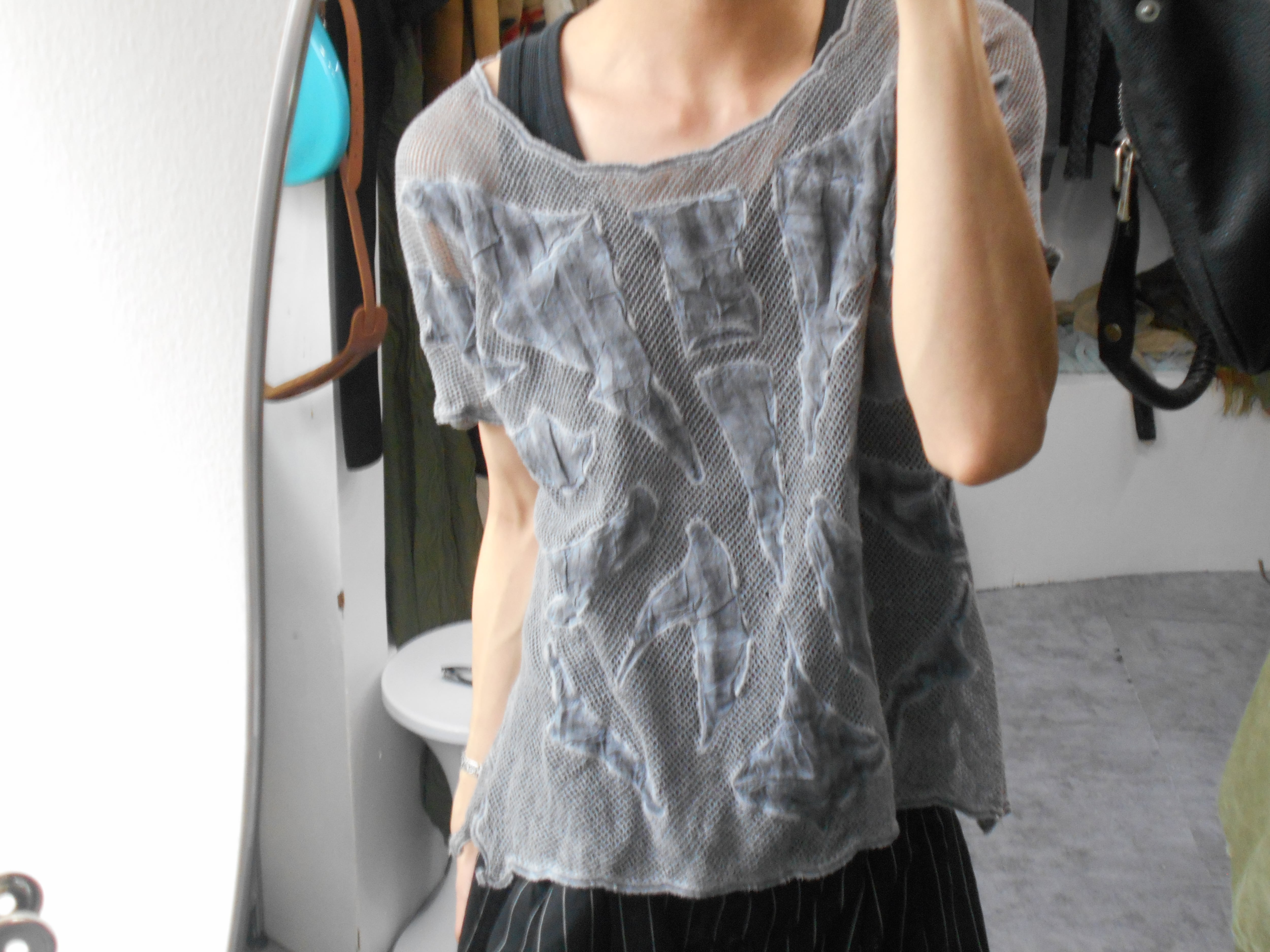 1990s Euro Vintage Front Motifs Gray Mesh T Shirt