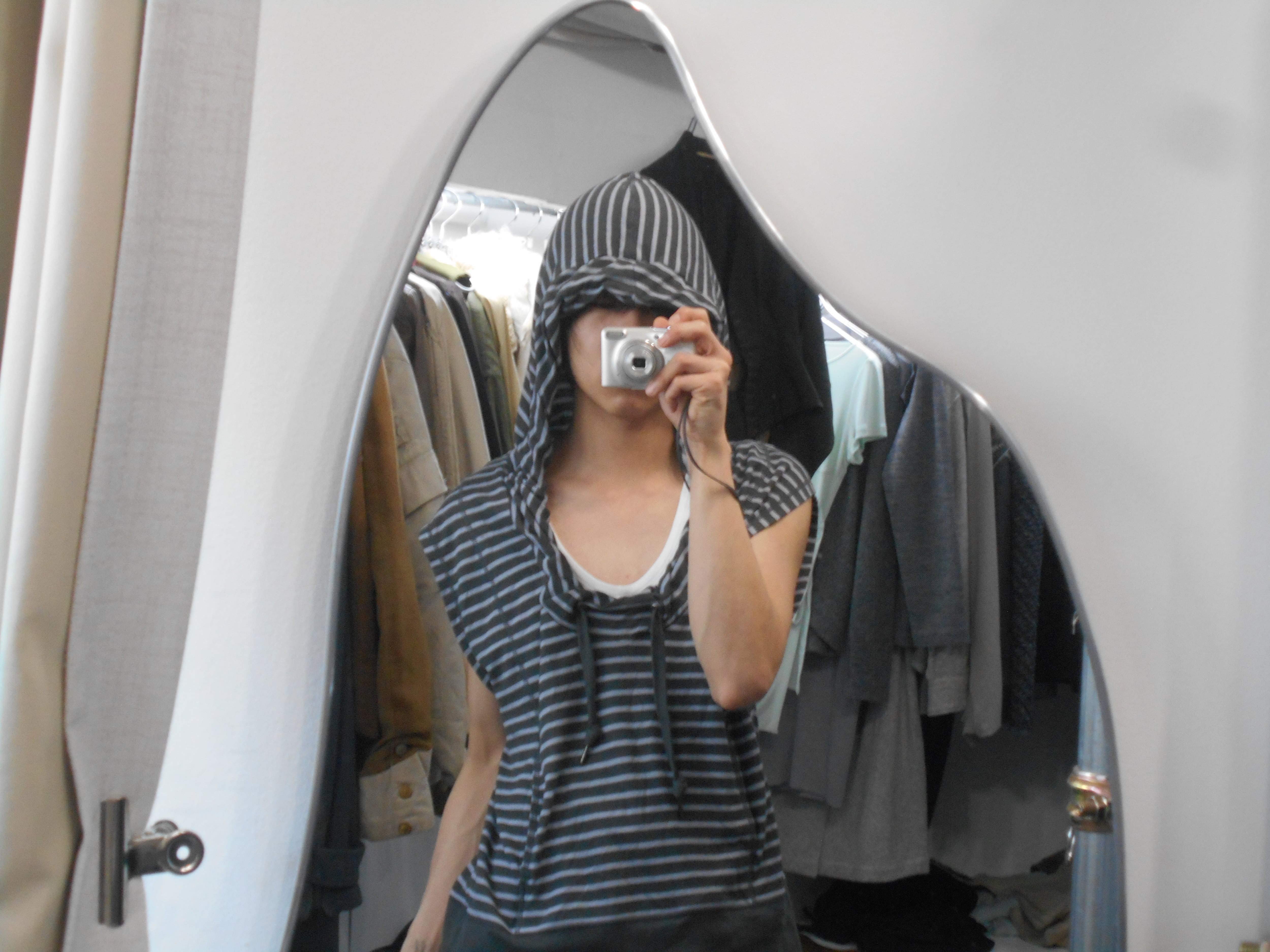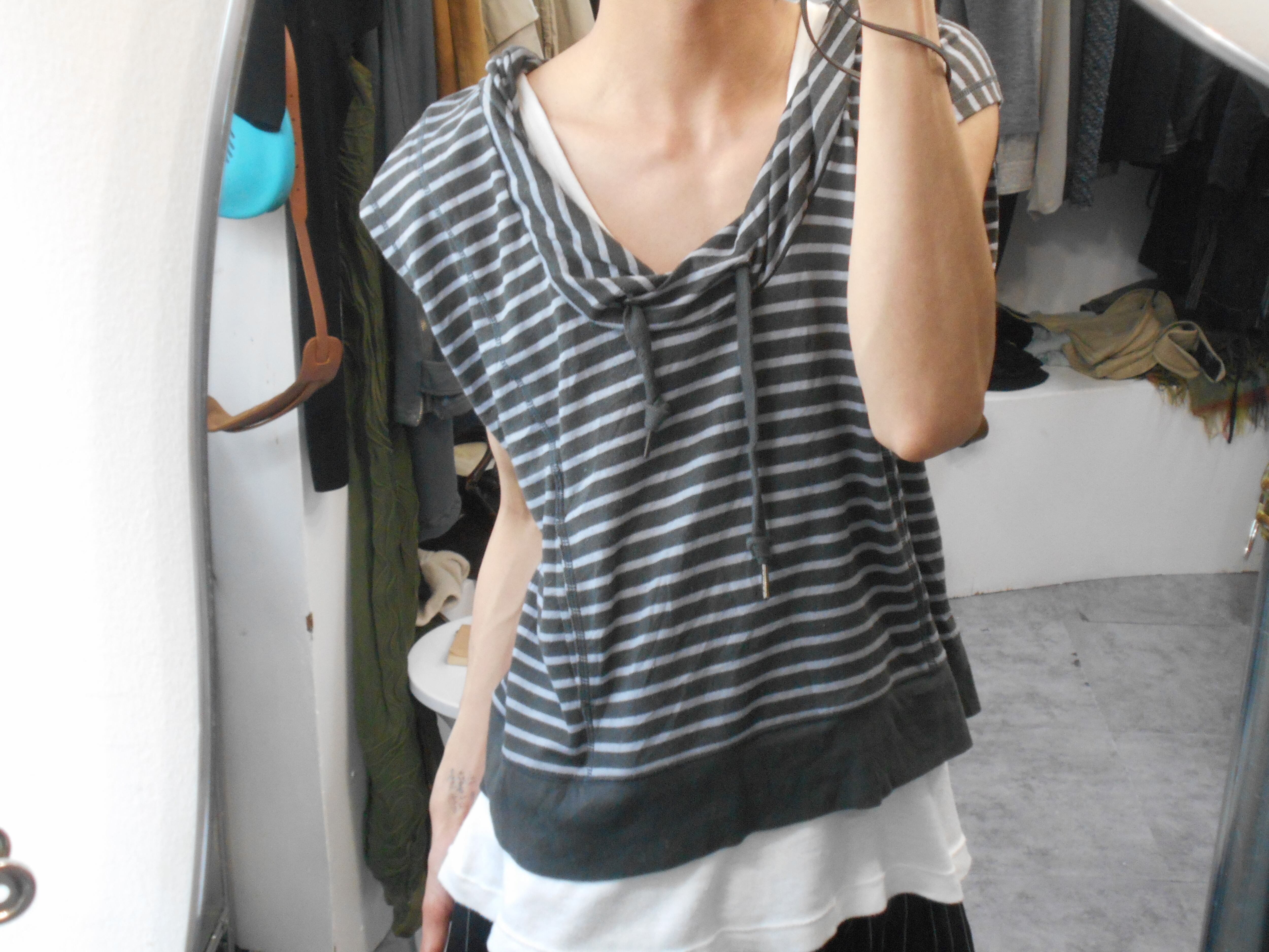 2000s Euro Vintage Gray Horizontal Striped Sleeveless Hoodie