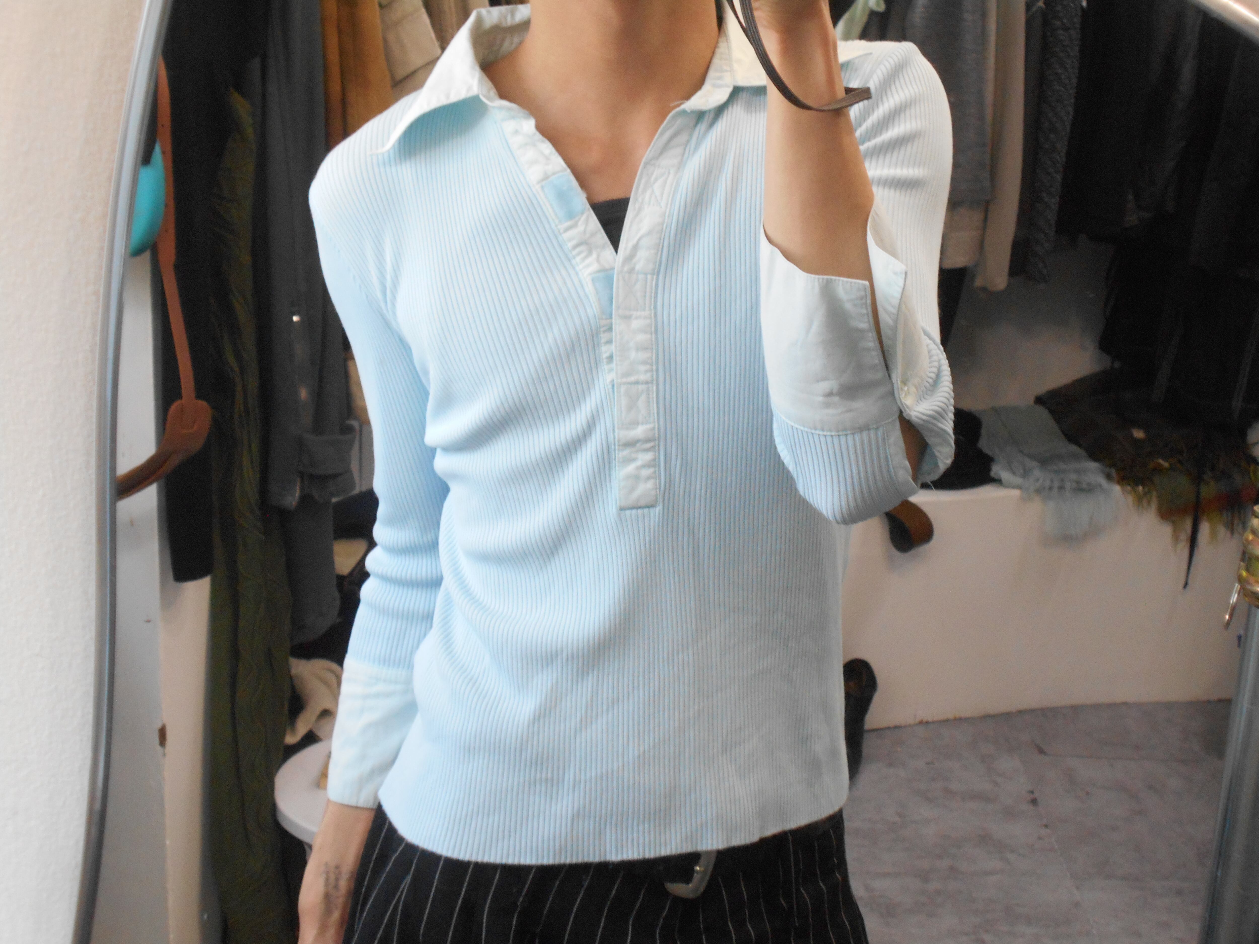 1990s Euro Vintage Light Blue Knitted Polo Shirt