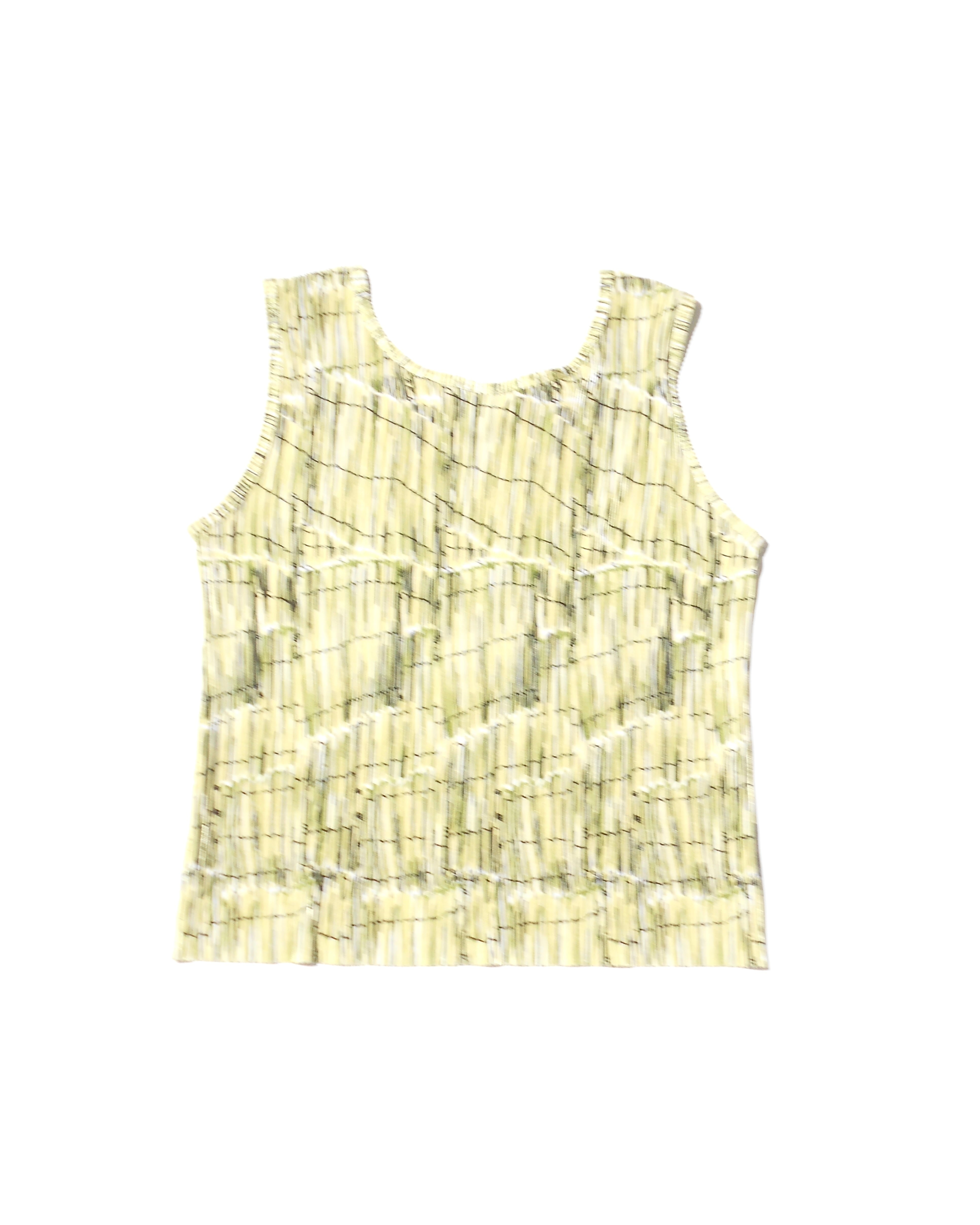 1990s Euro Vintage Lime Green Poly Pleated Tank Top